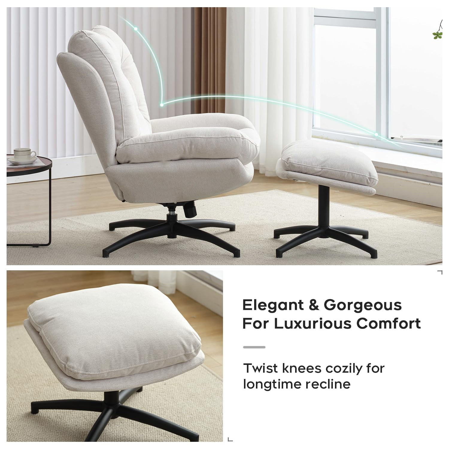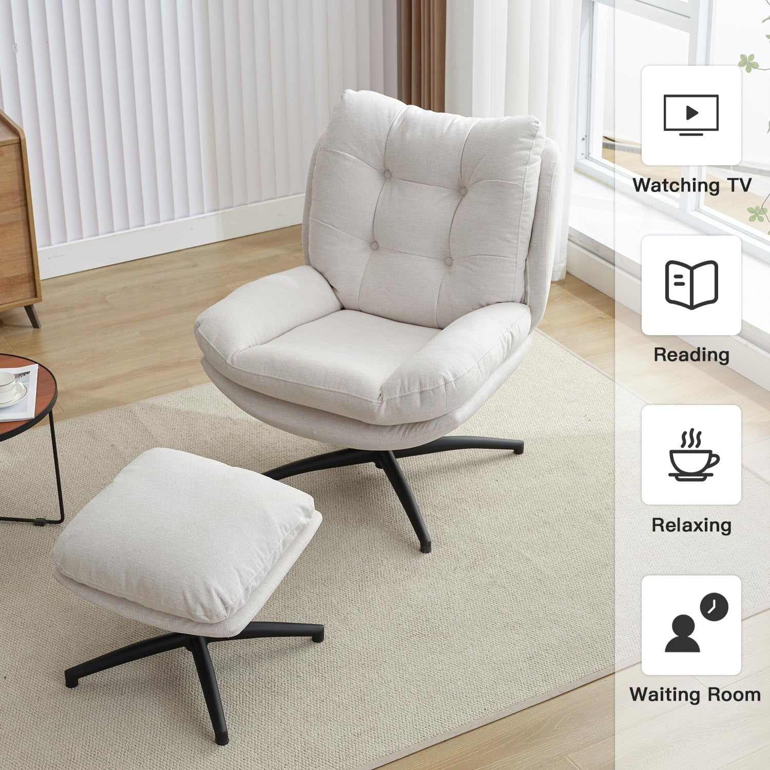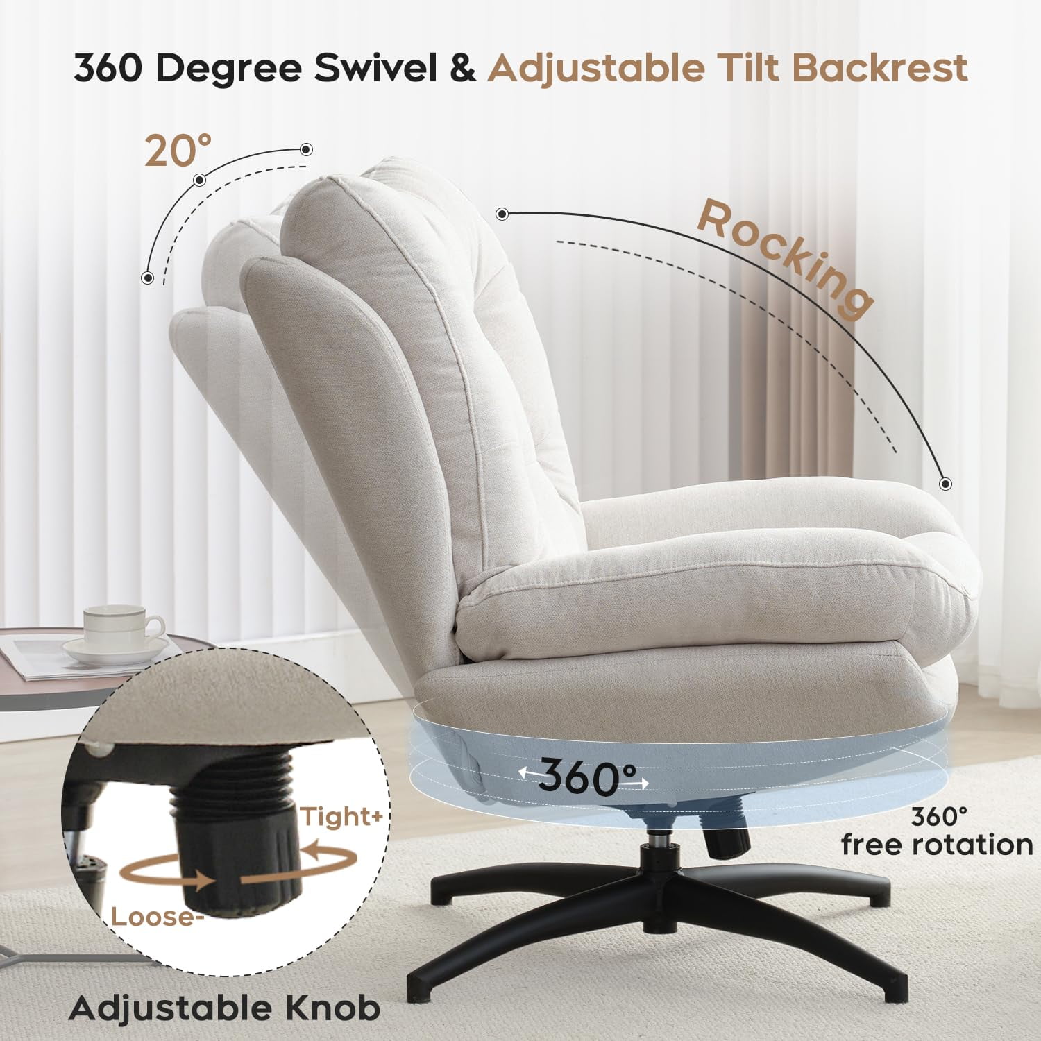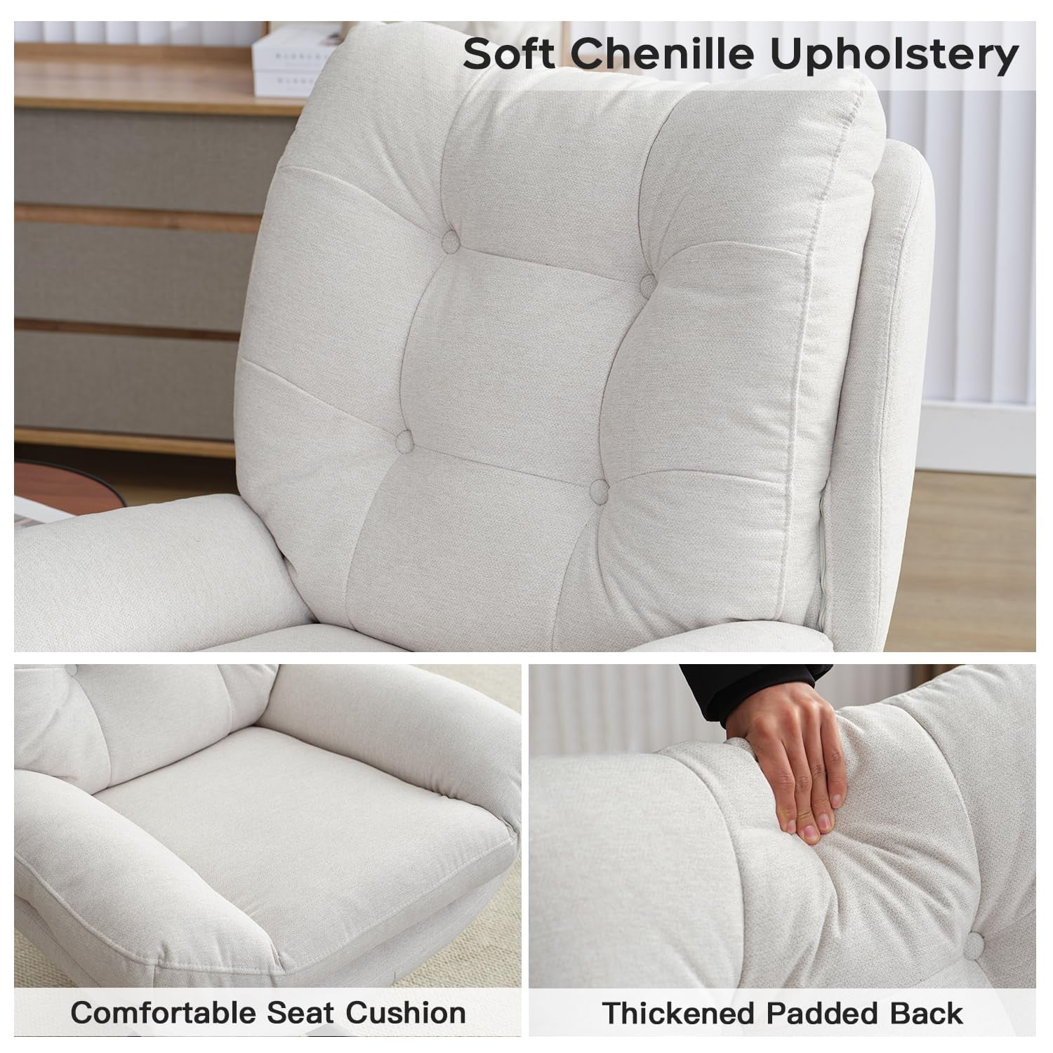 【Comfortable Seating】: The swivel chair provides comfortable seating for individuals seeking a cozy spot to relax and unwind.The cushioned seat and backrest provide support and comfort for your back, while the Chenille fabric feels soft and inviting.The chair’s height and depth are suitable for everyone, allowing you to find the perfect seating position for your needs. 【Luxurious Chenille Material】: Elevate your space with the luxurious combination of tufted fluffy Chenille and colorful finishes. 【Rotational Function】:Our chairs feature a sturdy metal frame that ensures a stable 360° swivel function and a maximum recline of 15°. 【Easy Assembly】: The chair with ottoman is designed for easy assembly and setup. The metal foot and frame are sturdy and stable, ensuring a reliable foundation for the chair. Quick and simple assembly instructions are included for easy installation. 【Easy to Clean and Maintain】: The Chenille swivel chair features easy-to-clean fabric that can be wiped clean with a damp cloth or dryer sheet. The fabric is stain-resistant, making it easy to maintain the appearance of the chair. Additionally, the console table surface is also easy to clean and can withstand daily use. 【Durable Design】: The metal foot and frame of comfy chair ensure durability and longevity.The sturdy frame and construction materials provide reliable support for years to come, ensuring that you can enjoy the chair for many years. 【Multipurpose Use】: The accent chair can serve as a cozy spot to read a book, watch TV, or chat with friends. Additionally, Inot only the rotating feature allows you to easily adjust the chair’s orientation,but also it comes with an ottoman that can be used for cushioning your feet or just sitting, so you can enjoy your time. **Notes**: Manual measurement has been used, there may be some reasonable error. All the pictures are taken by actual samples, slight chromatic aberration may occur due to lighting or display.
