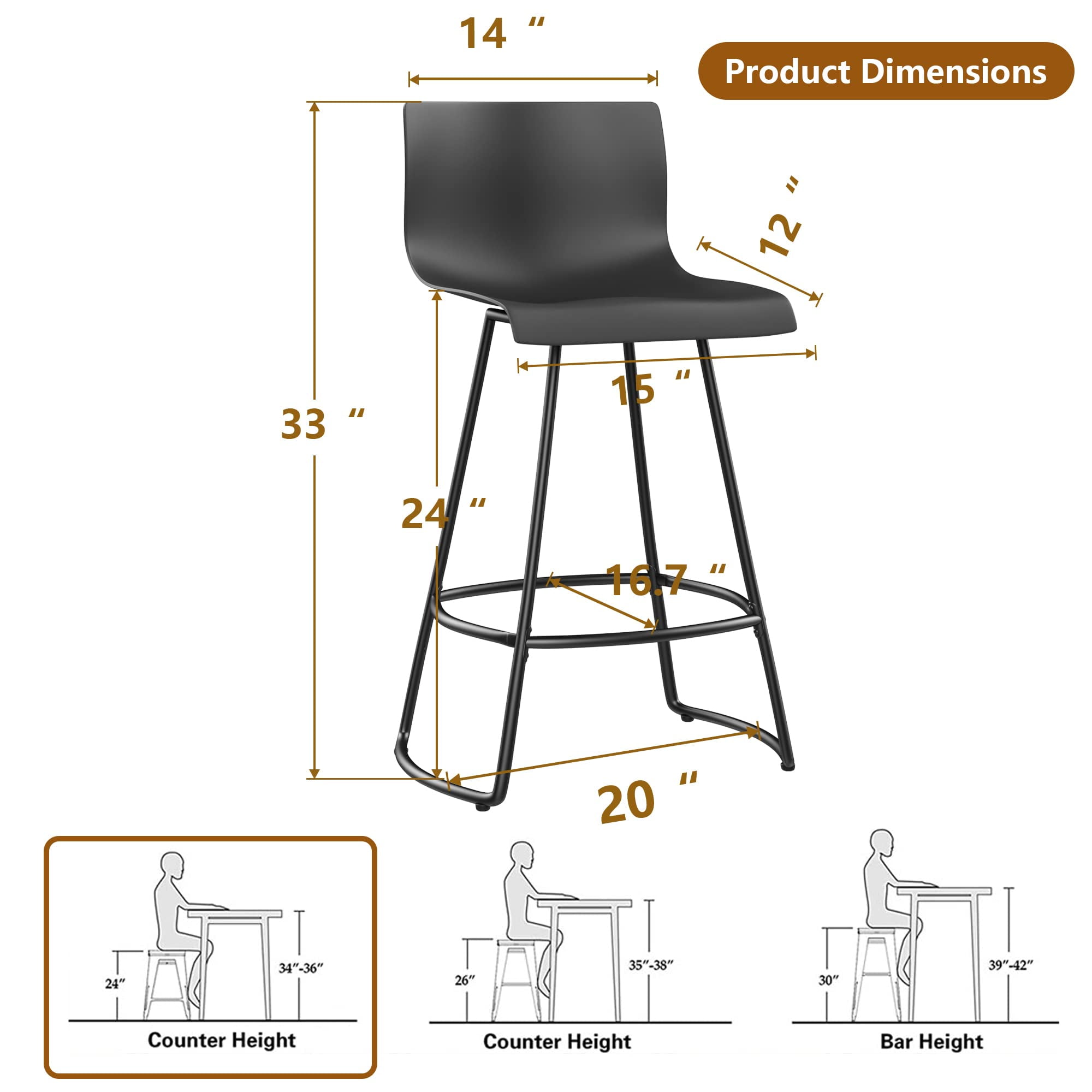 ????【Sturdy Bar Stools】Our Black bar stools are made of high quality plastic and feature excellent sturdiness and durability. There are rubber protective footpads at the end of the legs, which keeps floor/ground from damage and scratches. The edges and corners are well rubbed smoothly to avoid any potential injury.If you favor a farmhouse/industrial/craftsman-inspired theme in your home, you can choose it. ????【 Swivel Bar Stools】 360 degree swivel bar stools, smooth design is comfortable for sitting. The swivel plate under the seat can be removed, so the stools can also be a non-swivel type. Provides ease of use and convenience, each counter height bar stool is equipped with 360 degree flexible swivel,which gives you extra convenience to communicate with others in any direction. ????【Ergonomic Design Bar Stools Set of4】The counter height bar stools are ergonomically designed,You can lean against the back of the stool and put your legs on the footrest for a better sitting position.let you sit for a long time without getting tired. ????【Stability and comfort】 These barstools provide superior stability and comfort for hours of enjoyment. The streamlined backrest and seat design provide a comfortable sitting posture. The L-shape backrest provides you with back support. The high-density sponge cushion will not deform due to your weight. You can also put your feet on the footrest to relax. Maximum load capacity up to 300lbs. ????【Easy to Assemble, Clean & Maintain】The counter height bar stools set of 4 are easy to install, clean, and maintain. They are ideal for home, kitchen island, bars, or countertops. The sturdy construction and timeless style of the barstool will be the perfect addition to any home.