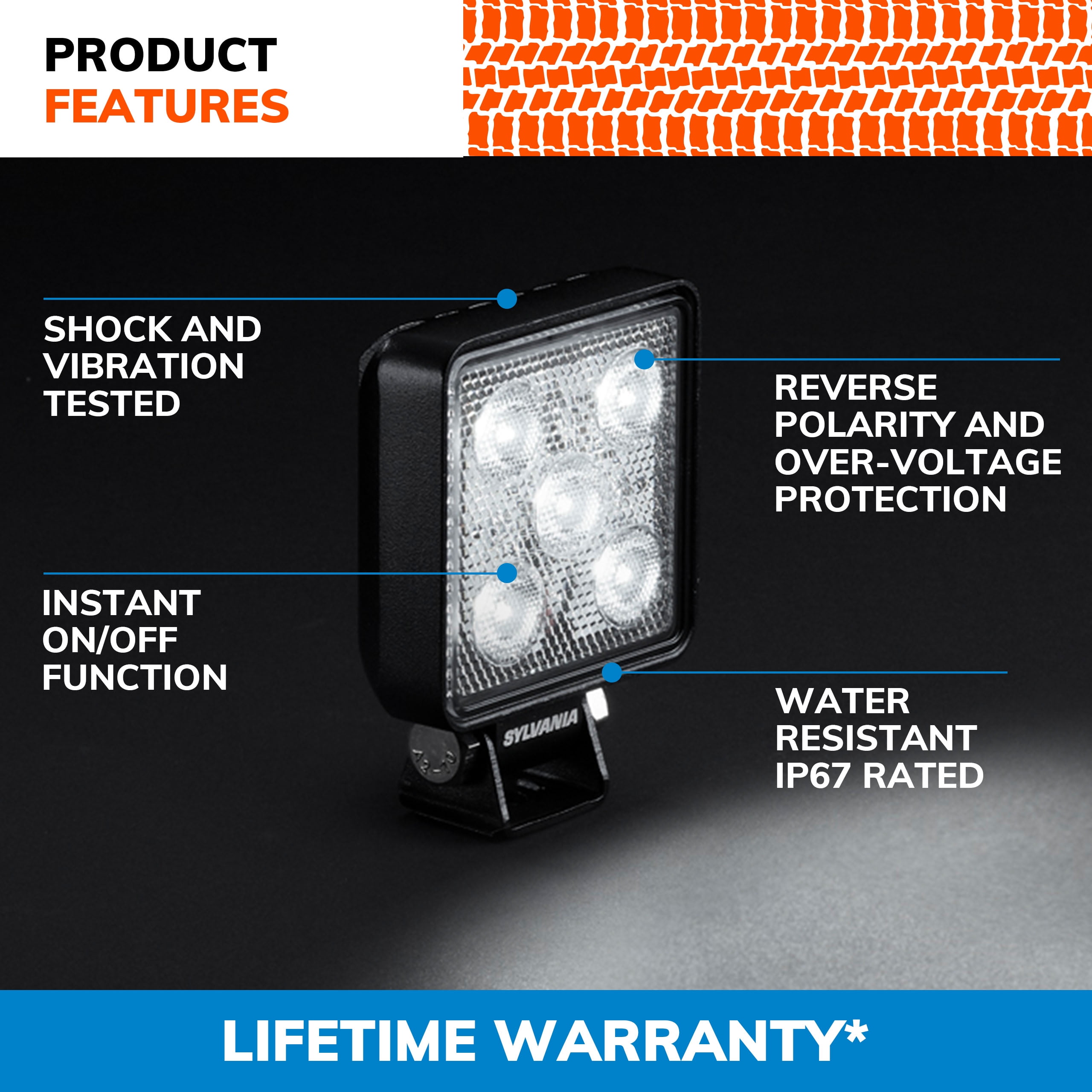 SLIM 3″ LED Pod Cube Lights by Sylvania are designed to be compact for use when fitment is tight. Super Wide Flood Light beam with 5 Osram LEDs and 950 raw lumens. When your vehicle lighting isn’t giving you enough light, the SYLVANIA Slim 3″ Cube LED Off-Road pod light boasts a bright white beam pattern, pushing light onto the trail and woods around you. The bright, super wide flood light uses world-renowned OSRAM high power LEDs to produce an extremely high light output of 750 effective lumens so you can see better.The compact dimensions allow for this LED pod light to be mounted where you want. Shock and vibration proof, the SYLVANIA Slim 3″ Cube LED pod light is perfect for any adventure. Team up with SYLVANIA and think farther down the road. Applications: OFF-ROAD: Jeeps, Trucks, Cars, Boats, SUV, UTV, ATV, Snowmobiles, Motorcycles, Dirt Bikes, 4×4, and other 4WD INDUSTRIAL: Forklifts, Trains, Excavators, Lawn Mowers, Snow Blowers, Tractors, Cranes, and other heavy duty equipment OTHER Suitable Industries: Fire and Rescue, Military, Agricultural, Mining, Logging, Construction, and more.