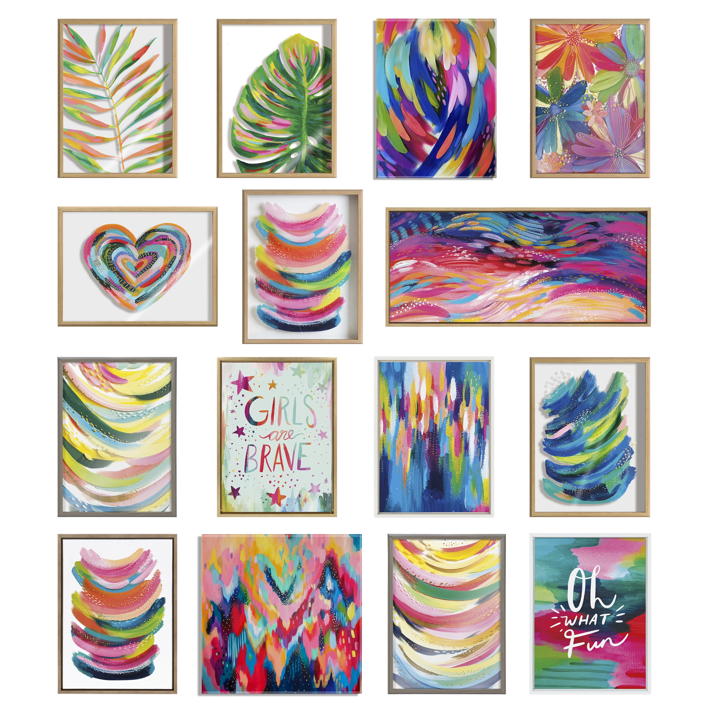 Capture your imagination with this magnificent colorful art set by the beautiful female African American Artist EttaVee. These vibrant abstract pieces brings an entire color spectrum to your home in bold, broad strokes. This is not your average wall art set, dazzle your family, friends, and guests with this eye-catching modern gallery wall. Framed in Waunakee, Wisconsin, this contemporary floating canvas art set will be a pleasure to look at every day in your living room, bedroom, nursery, or any room in the home. This art set also makes an excellent gift for birthdays, holidays, or house-warming parties. The outer dimensions are 33 inches by 23 inches and 16 inches by 20 inches. Print Names: “Brushstroke 100,” “Bright Abstract” and “Bright Abstract 2” About the Artist: Artist, designer, and social media influencer, Jessi Raulet, has become well-known for her hand-painted, colorful, and bold designs. With an ability to craft vibrantly optimistic color palettes, Jessi’s work is packed with good vibes. The American born, Paris-based artist has an engaged social media following of 30k+ and fruitful collaborations with leading brands including Pottery Barn Teen, Sally Hansen, Crayola, Blurb Books, and Fab Fit Fun. Jessi landed EttaVee in 2014, a lifestyle brand that expresses optimism and joy through color.