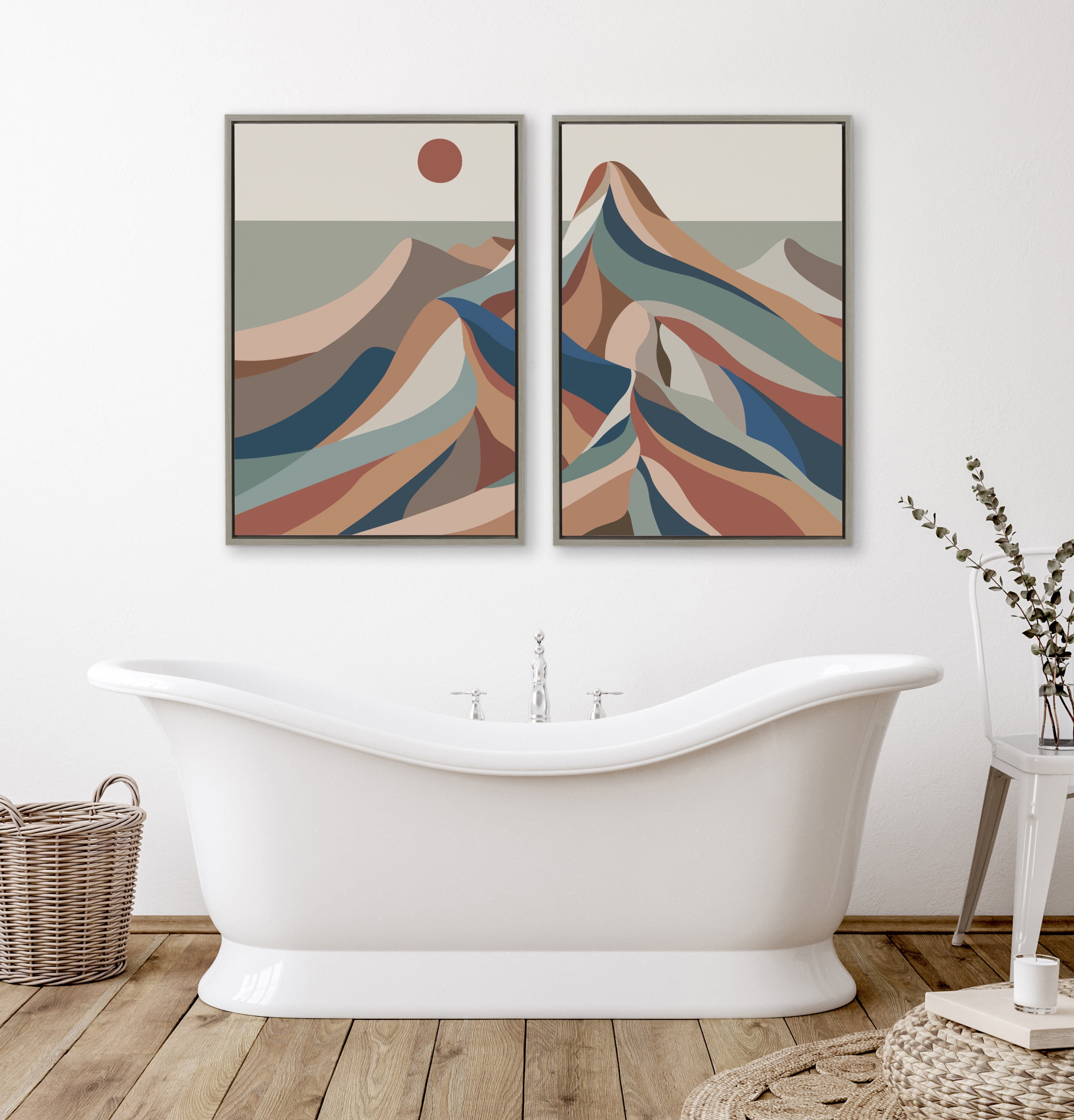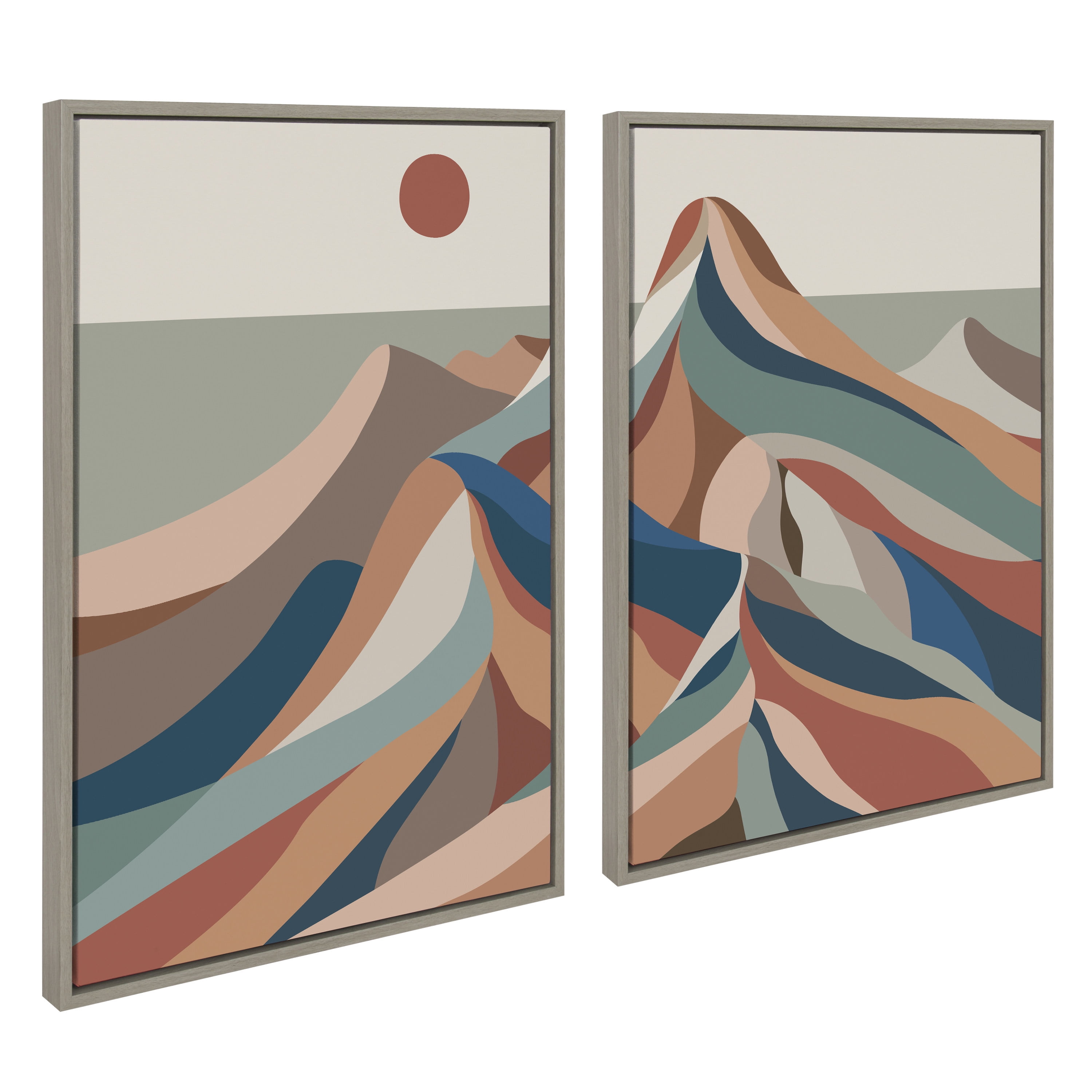 Sylvie Mid Century Modern Mountains 23 in x 33 in Framed Painting Canvas Art Prints, by Kate and Laurel Set of 2