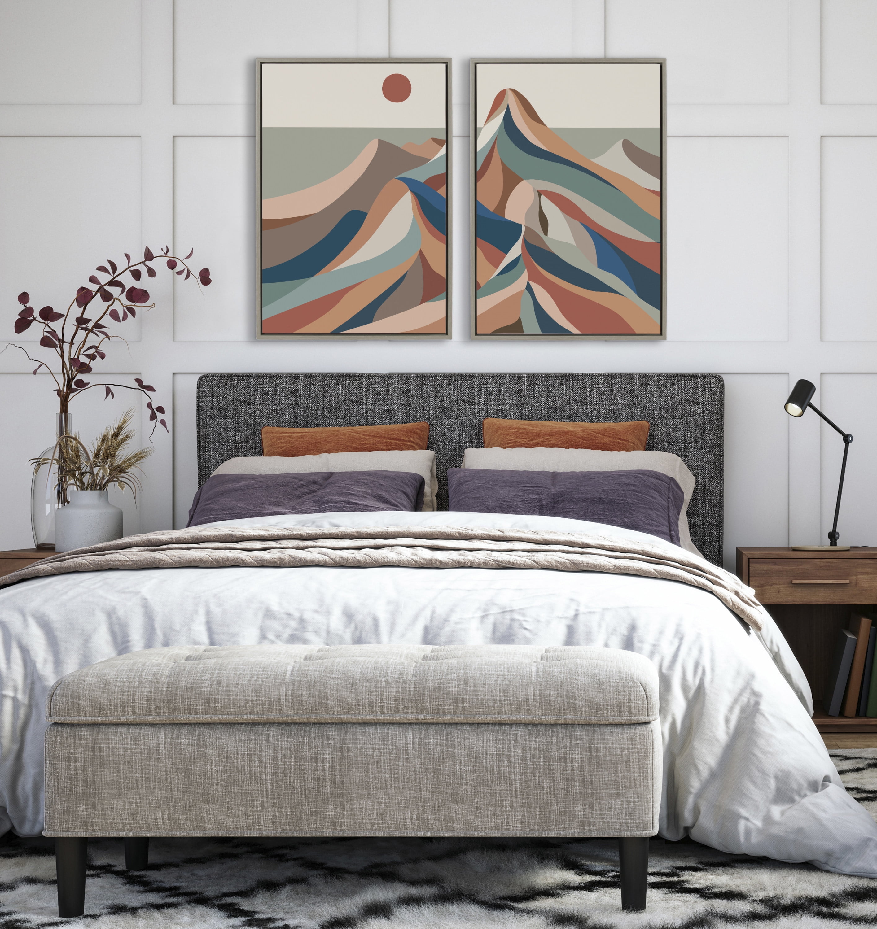 TRANSITIONAL CANVAS WALL ART: Colorful landscape art on framed high-quality gallery-wrapped canvas. Display dimensions are 23 inches by 33 inches QUALITY MATERIALS: Printed with UV-resistant inks to provide increased durability and fade resistance EASY TO HANG: The frames are made with a premium lightweight polystyrene and have metal sawtooth hangers already attached to the back LOCALLY FRAMED: Gallery wrapped canvas is printed and hand framed in Waunakee, Wisconsin, USA of domestic and imported parts ARTIST DESIGNED: Print “Mid Century Modern Mountains Blue” ©2021 Rachel Lee. My Dream Wall