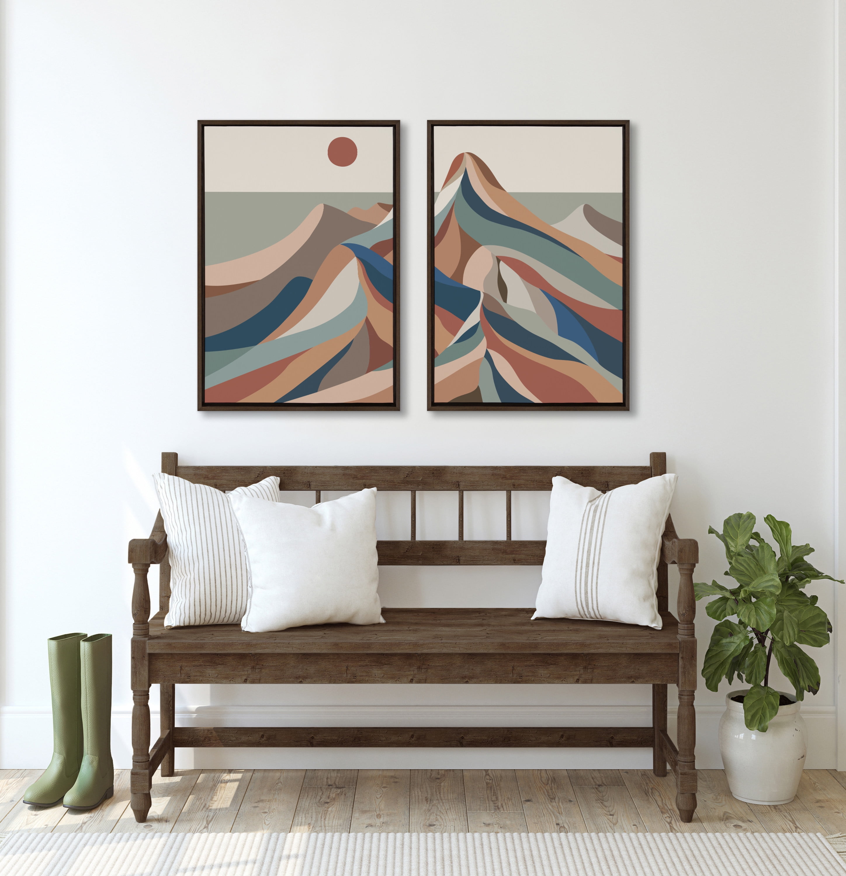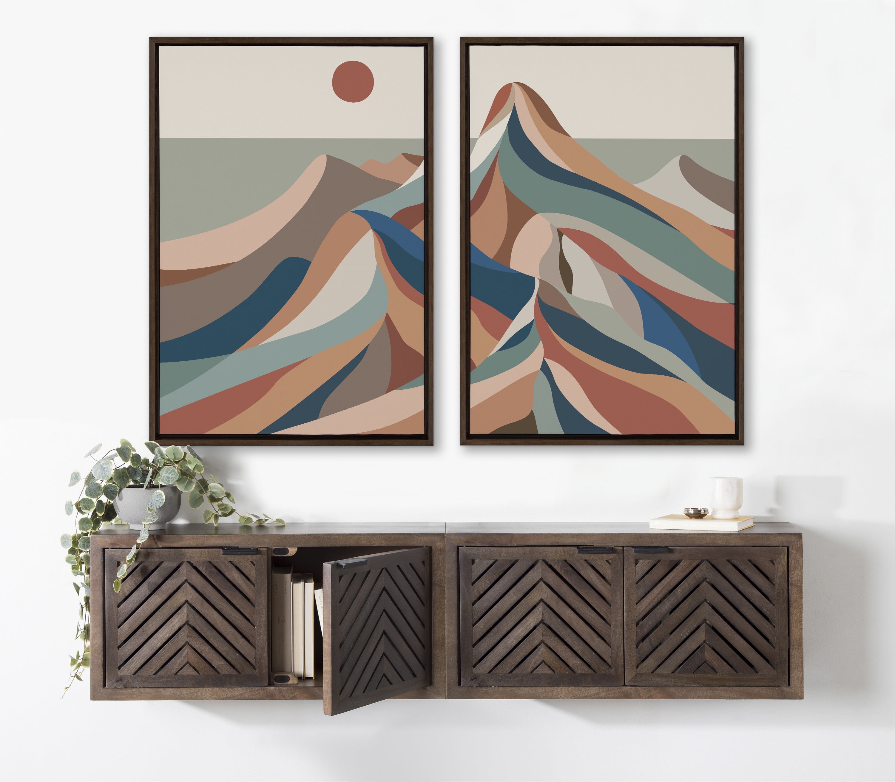Sylvie Mid Century Modern Mountains 23 in x 33 in Framed Painting Canvas Art Prints, by Kate and Laurel Set of 2