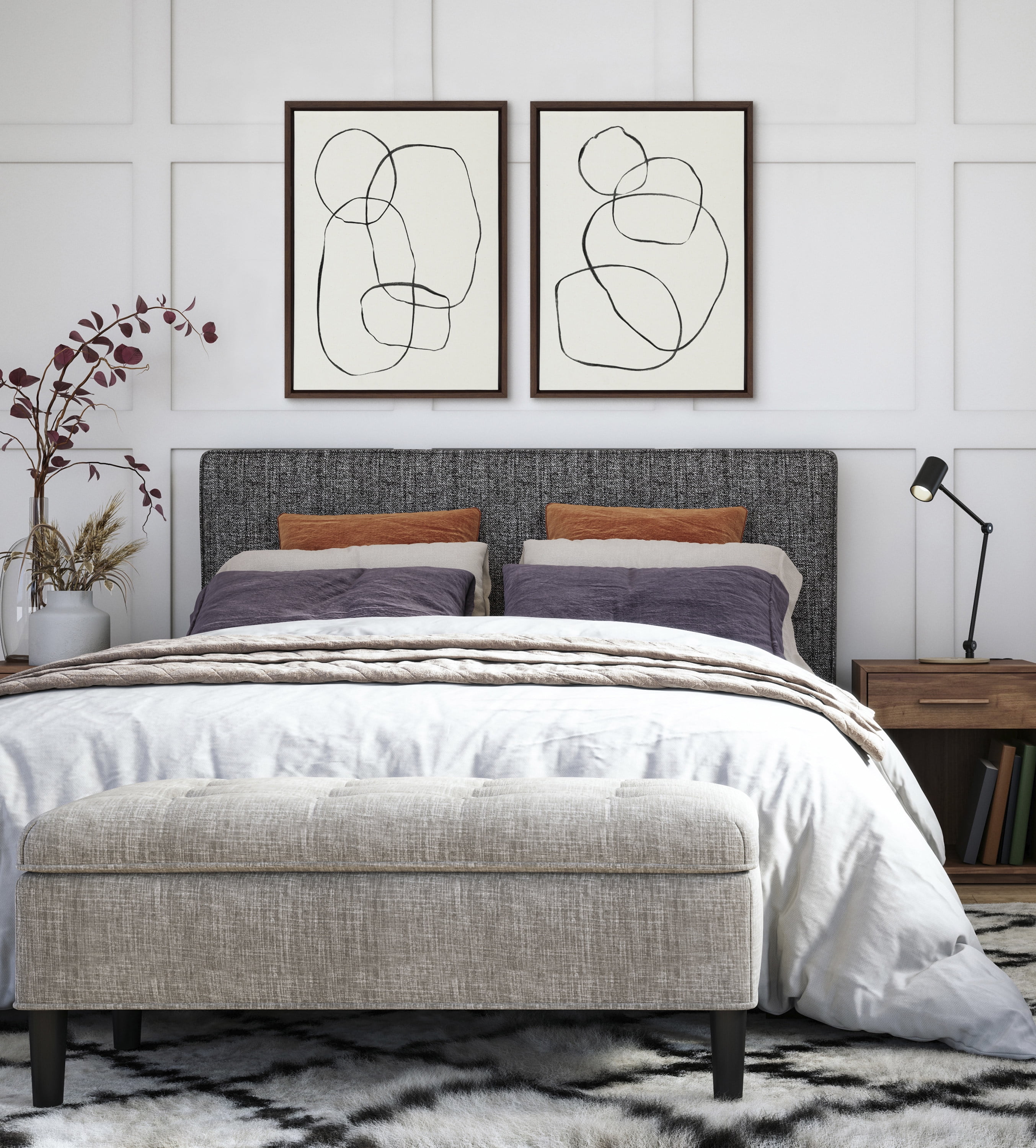 Introduce modern style to your home with this chic abstract print for your wall! Framed in a sleek modern frame, this contemporary design is the perfect art piece to add to your home decor collection. Printed and framed in the USA in Waunakee, Wisconsin, this framed linen textured canvas art set will be a pleasure to look at every day in your living room, bedroom, office, or any room in the home. These art prints also makes an excellent gift for a birthday, holiday, or housewarming party. It has two hangers already attached for easy wall display.