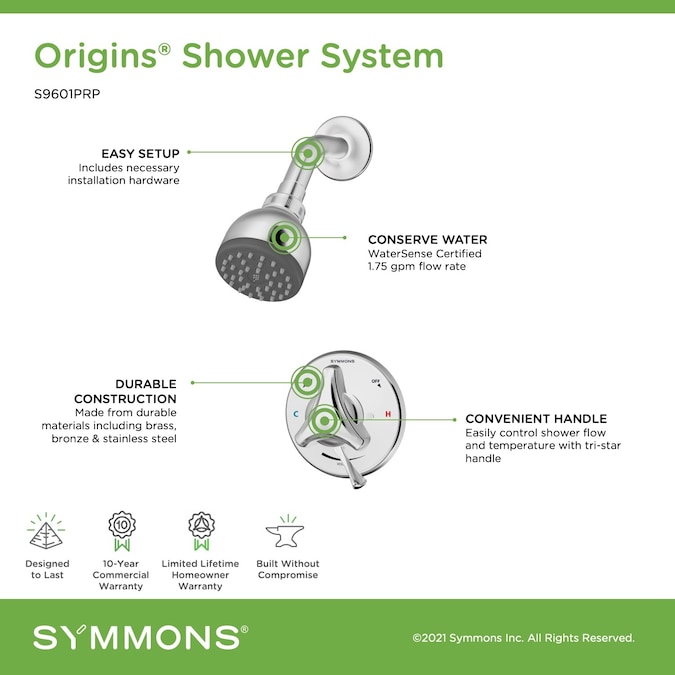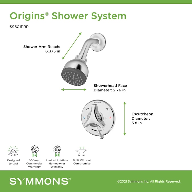 Powered by Temptrol, the Symmons Origins collections is simple to use and has a stylish look. This shower trim kit comes with a Temptrol Pressure Balancing Mixing Valve with the VersaFlex™ Integral Diverter, which allows you to adjust the volume of water coming out of your showerhead. The lever handle on this trim turns in the direction of the hot and cold indicators to adjust the water temperature in your shower. The secondary handle on the cover plate controls the volume of the shower water. This kit comes with everything needed for installation. This shower escutcheon and handle shower trim set is durable and functional, and backed by a limited lifetime warranty and our technical support team.