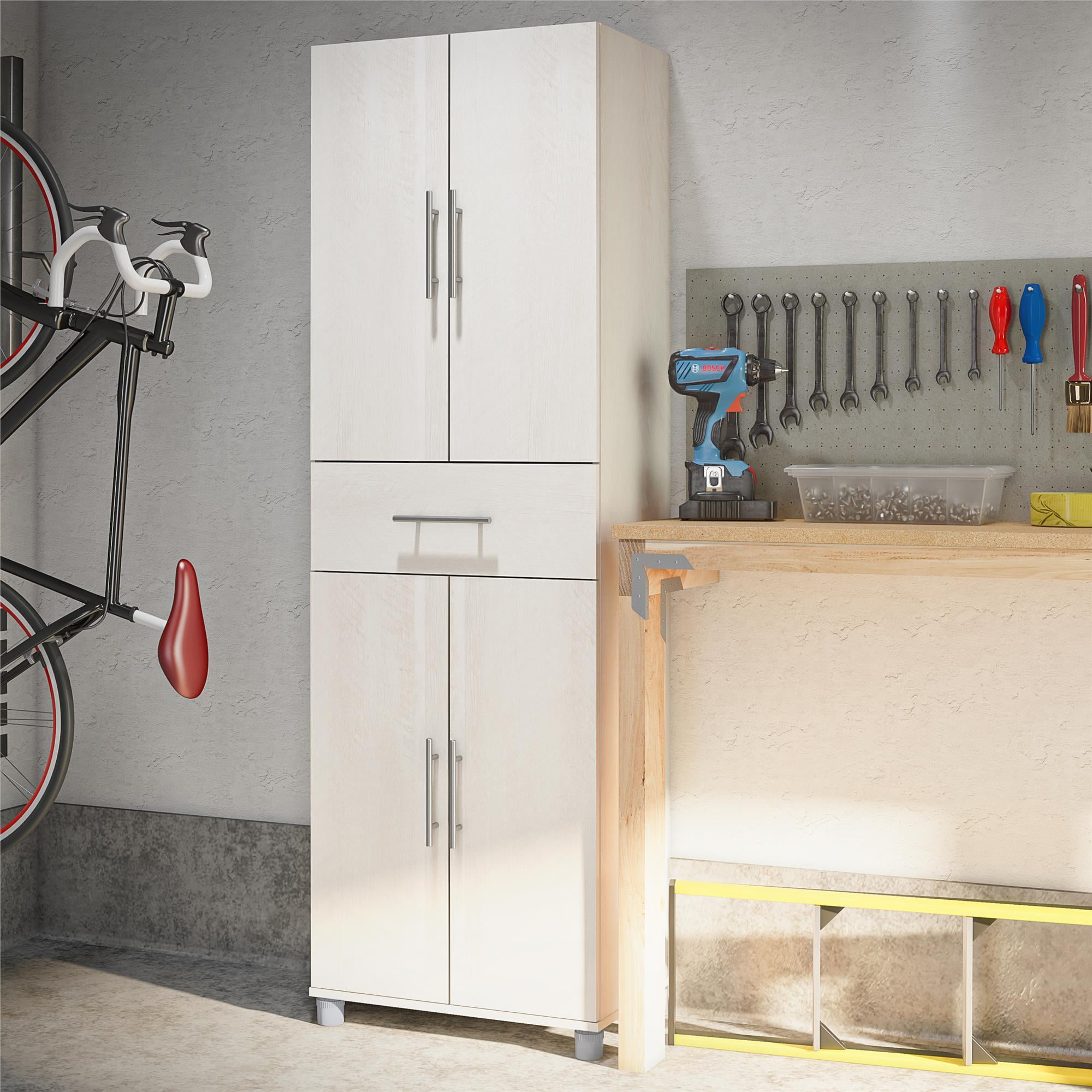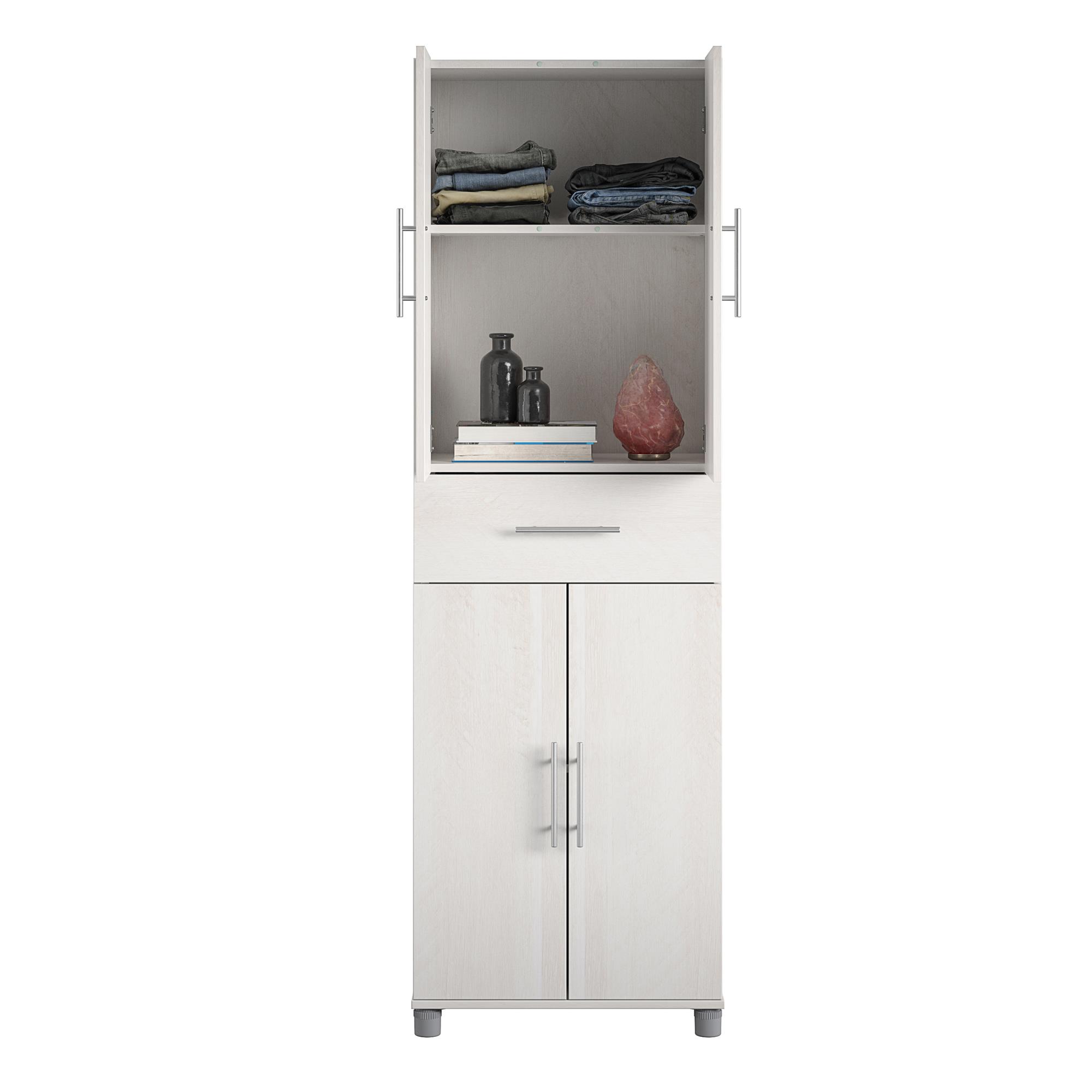 Organize any room in your home with the SystemBuild Evolution Camberly Storage Cabinet with Drawer Made of laminated particleboard, the Ivory Oak finish adds modern look that won’t break the bank Behind each of the 4 doors are 2 shelves, 1 adjustable, that offer plenty of storage for extra throws, glasses, and even kitchen pantry items. The drawer features durable metal slides and can organize smaller household items Adjustable feet keep your Cabinet level on uneven floors The Storage Cabinet ships flat to your door and 2 adults are recommended to assemble. Each shelf can hold up to 35 lbs. while the drawer holds up to 20 lbs. Assembled dimensions: 75.25″H x 23.46″W x 15.4″D Wall anchor kit is included to prevent tipping injuries and keep your family safe Complete your space with other Camberly Storage Cabinets to customize your storage needs (each sold separately) SystemBuild Evolution warrants this product to be free from defects and agrees to remedy any such defect. This warranty covers one year from the date of original purchase With over 30 years’ experience in RTA furniture, Ameriwood Home and SystemBuild Evolution offers a wide range of home furniture products for every room of the house Acquired by Dorel Industries in 1978, Ameriwood Home and SystemBuild Evolution have become a leader of RTA furniture growing in Bedroom, Home Office, Entertainment, Storage and Youth products