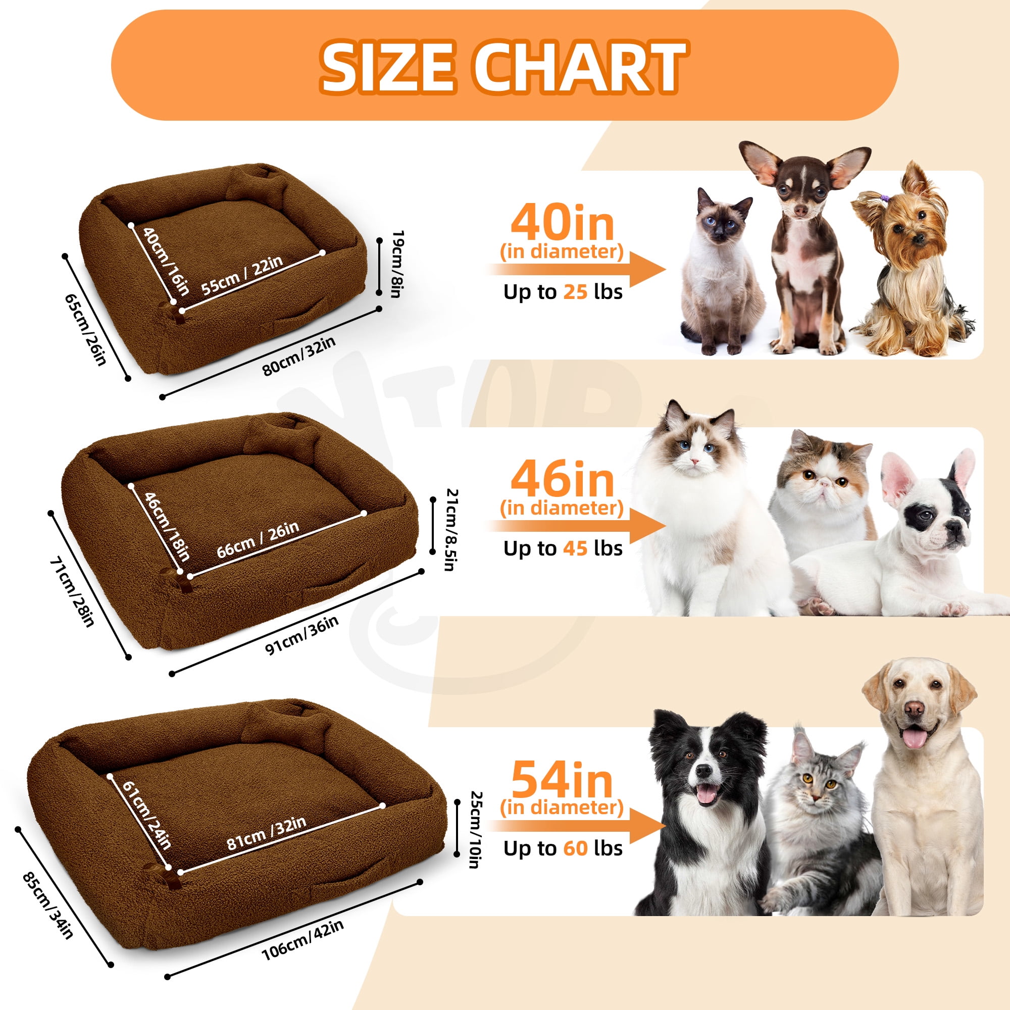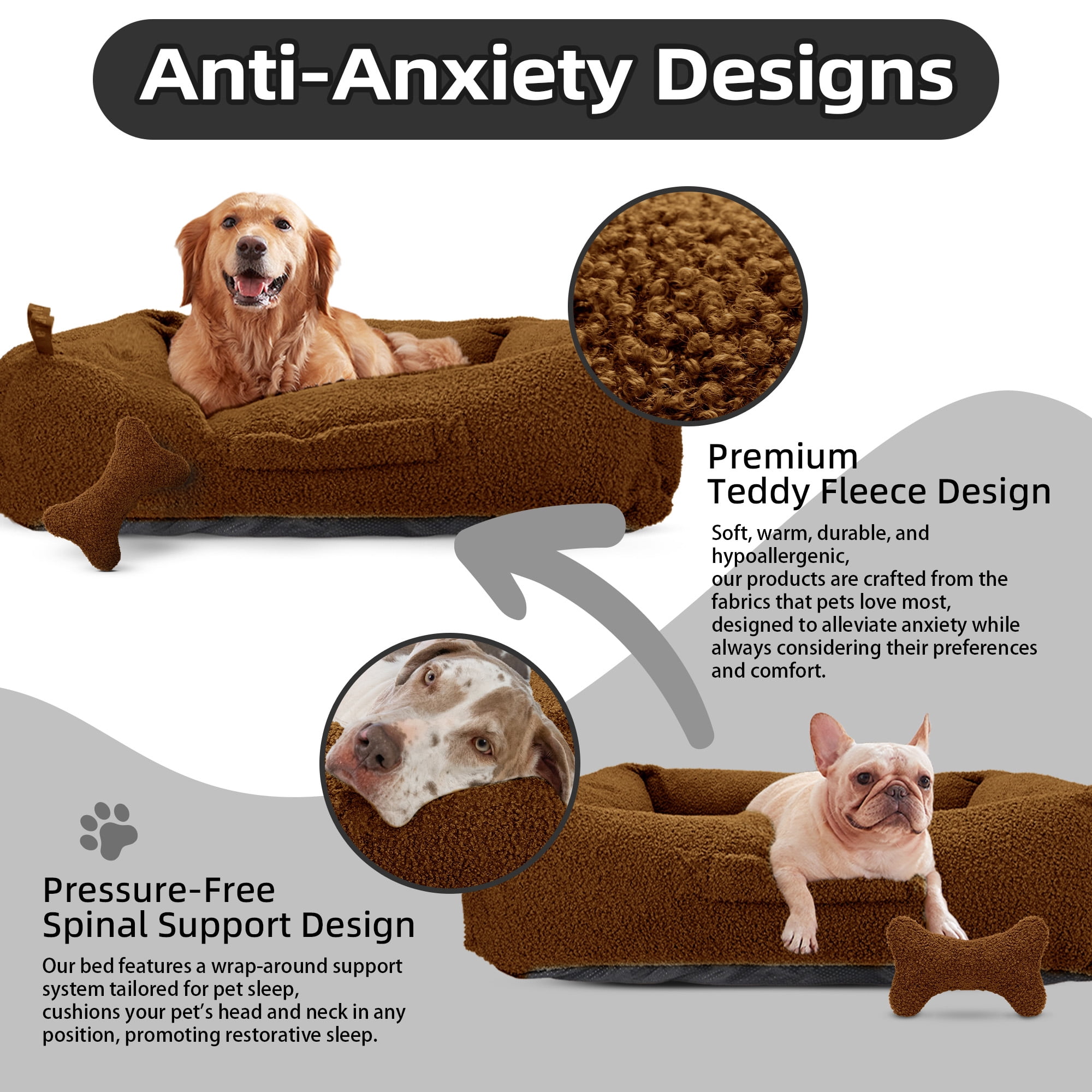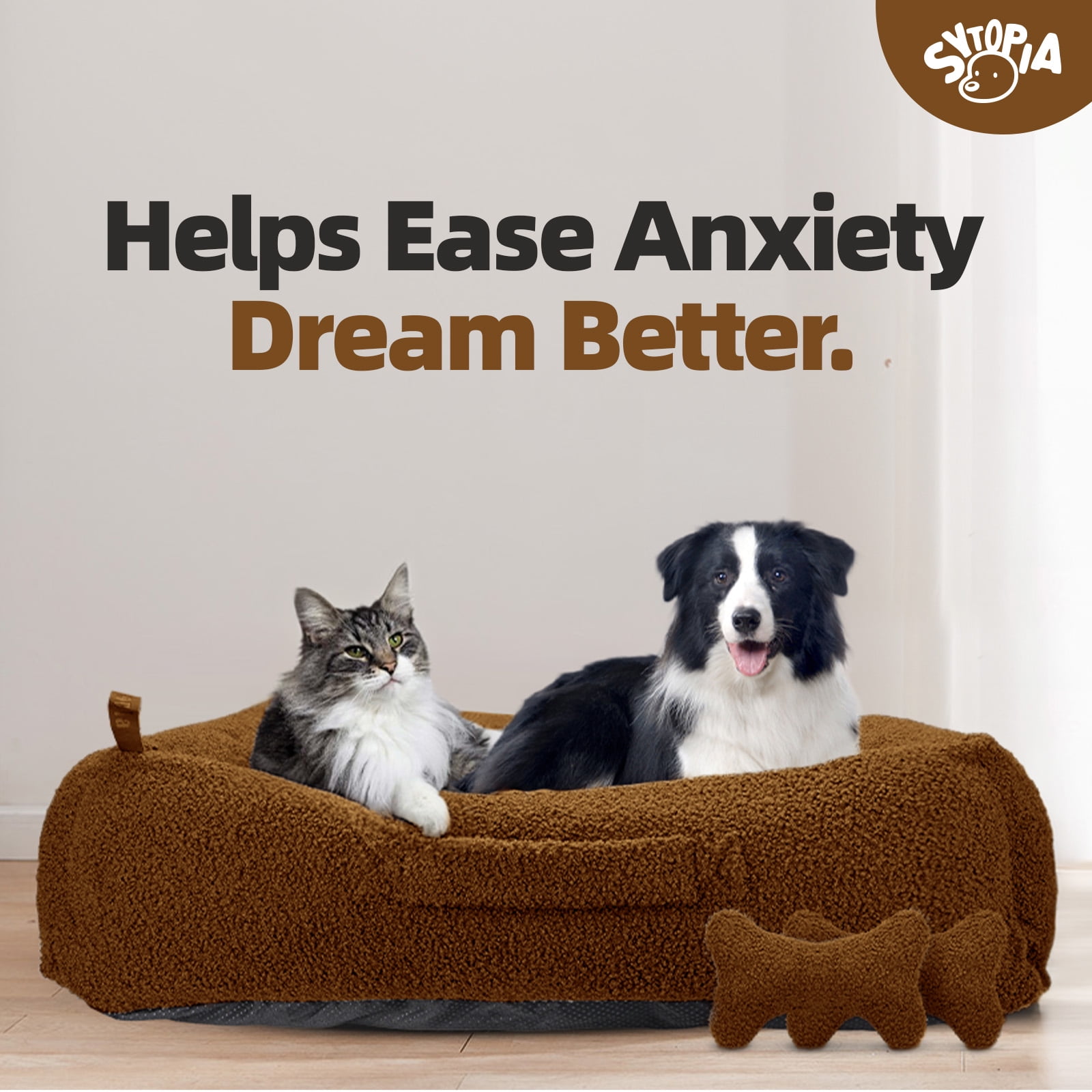 Sytopia 42″ Extra Large Dog Anxiety Beds, Washable Teddy Fleece Cozy Soft Beds For Dogs Up To 100 Lbs, Large Cat Beds For Indoor Cats Up To 60 Lbs, Xlarge (42″x34″x10″) – Brown