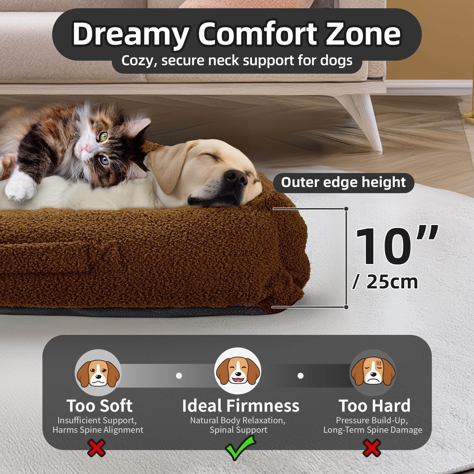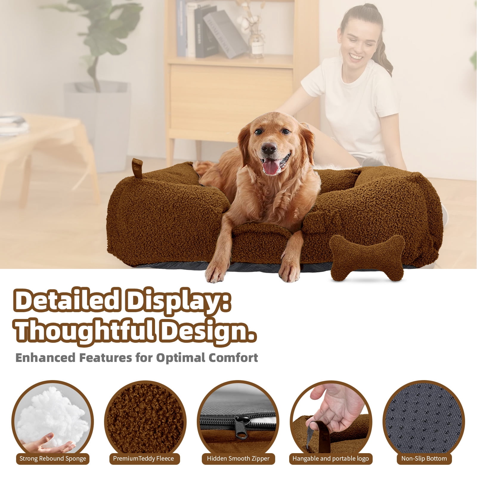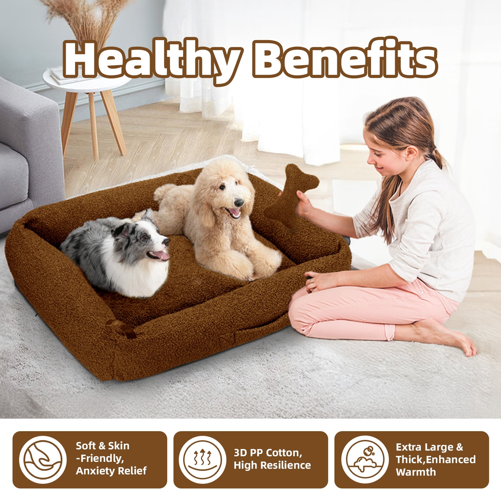 ???? Comfortable Teddy Fleece XLarge Camling Dog Bed: Our premium 290g teddy fabric is not just soft and warm, but also durable and hypoallergenic, offering excellent insulation perfect for cold weather. It’s filled with 3D PP cotton ensuring consistent support and effective joint pressure relief, reducing anxiety—ideal for older dogs or those with joint issues. ???? Bolstered Care & Stress-Free Spine Support for Your Pet: The soft teddy fabric and ample filling provide a secure feeling and substantial support, especially beneficial for spinal protection and accommodating various sleeping positions. The wrap-around design enhances security and comfort, cushioning your pet’s head and neck in any resting position. ???? Waterproof & Washable, Non-slip Bottom: With a waterproof and anti-slip bottom, our dog bed handles spills and slick surfaces with ease. The stability added by the anti-slip design ensures your pet’s safety. The teddy fabric is machine washable, resists stains and odors, and meets CertiPUR-US and laundering standards for safe and convenient use. ???? Convenient Handle Design for Multi-scenario Use: The front of the bed is equipped with a handle for easy carrying, making it suitable for both indoor and outdoor use. Whether at home, in the office, or out for a picnic or camping, you can easily transport the bed, ensuring your pet’s comfort and safety in various environments. It’s also ideal for travel or visiting friends, helping your pet feel secure in new surroundings. ???? A Dream Gift Designed Specifically for Dogs: Experience the plush luxury of Sytopia’s large grey teddy fabric dog bed, measuring XL: 42″x34″x10″, ideal for dogs up to 100 pounds. The ultra-soft teddy fabric offers warmth and comfort, effectively soothing your pet’s anxiety. As a special bonus, each bed includes a complimentary dog bone toy to add enjoyment and strengthen the connection between you and your pet.