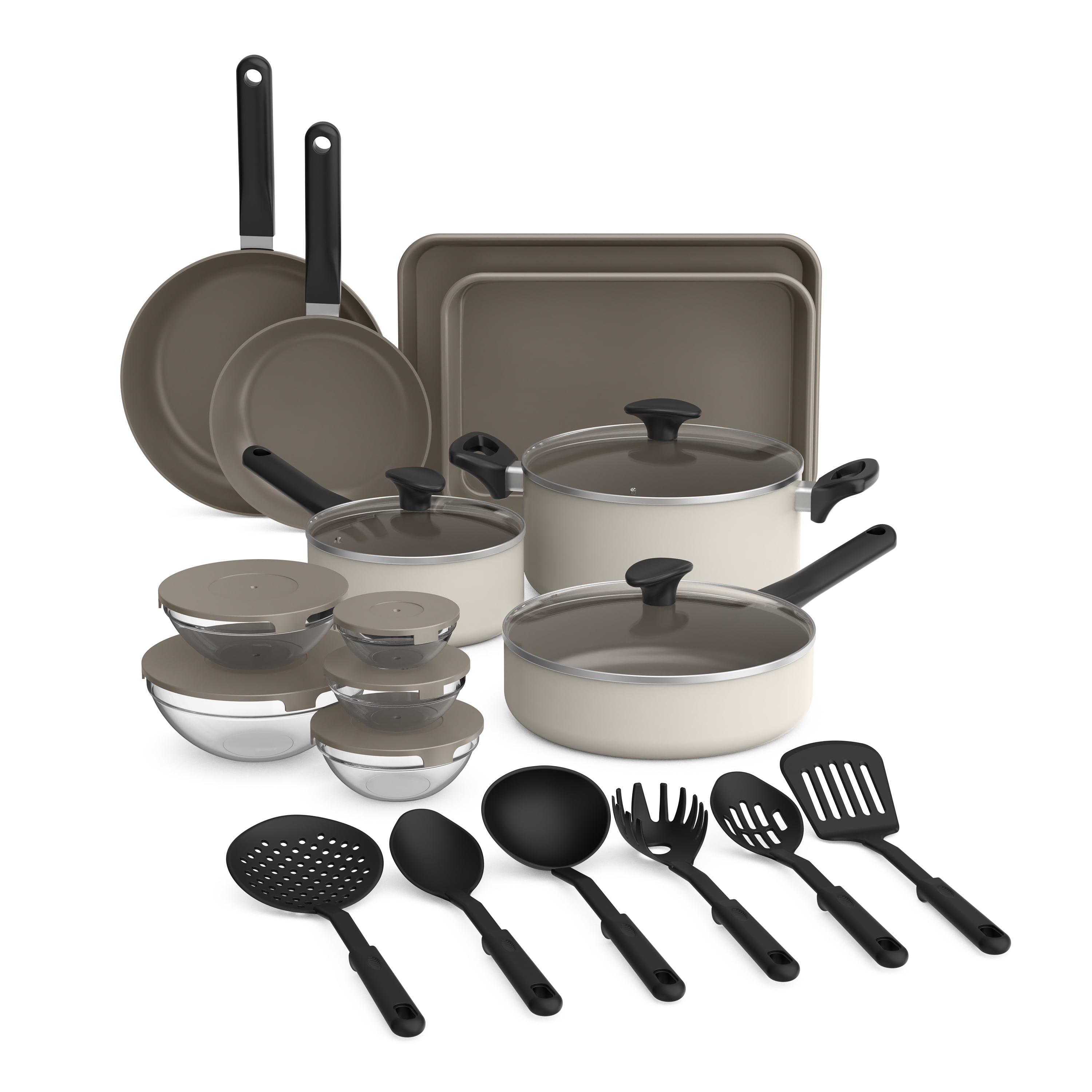 T-fal Ceramic HybridMesh Stainless Steel cookware combines innovation and performance. The heavy-duty tri-ply construction ensures long-lasting durability and even heat distribution across all cooktops, including induction. The cast riveted handles provide a secure, comfortable grip. The cooking surface features a unique stainless steel pattern that’s perfect for searing and is metal utensil safe, so you can cook with confidence and convenience. Oven safe up to 500°F and handwash is recommended. Elevate your kitchen with our 3 quart sauté pan with lid.