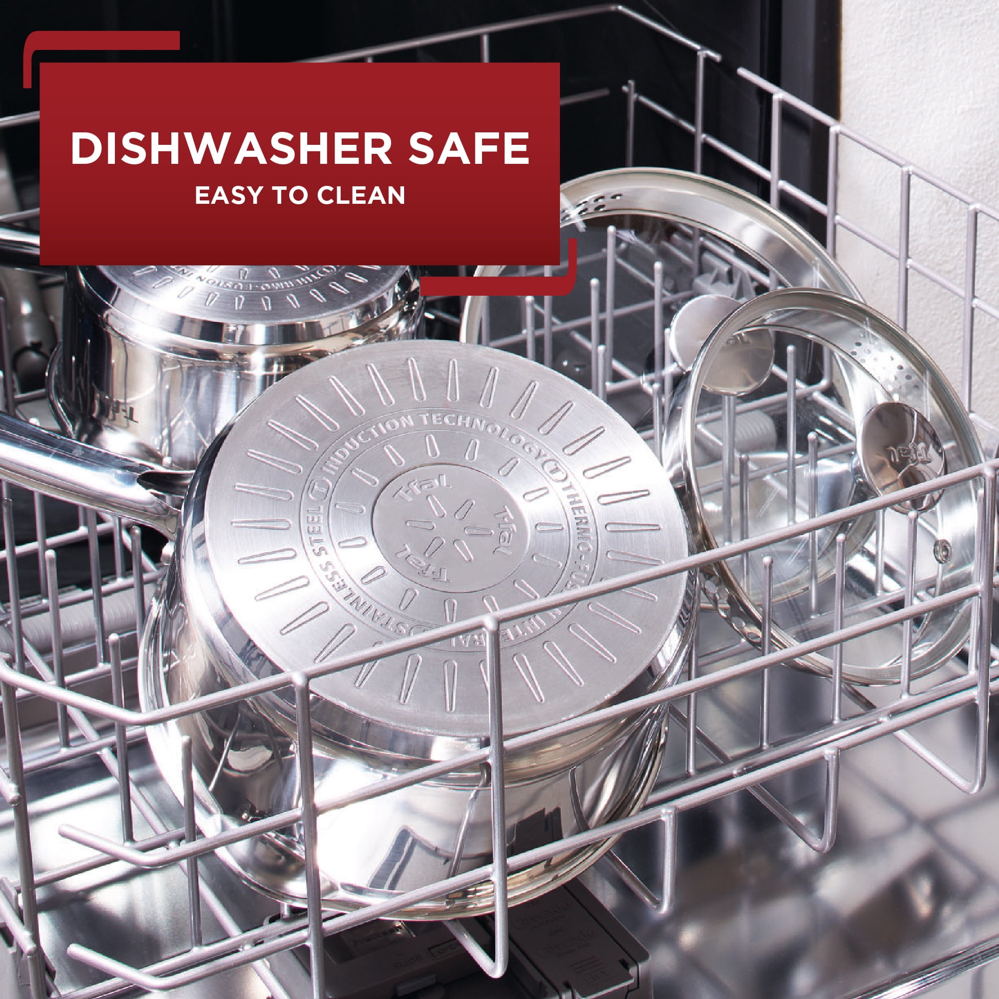 Tfal 14 Piece Pour Spouts Stainless Steel Cookware Se Stainless Steel Interior: Maintains purity of flavor for delicious meals Even Heat Induction Base: Eliminates hot spots for reliable cooking results Straining Lid & Pour Spouts: Designed for mess-free draining Includes essential cookware: 8” frypan, 10.5” frypan, 1qt covered saucepan, 2.4qt covered saucepan, 5qt covered Dutch oven, 4 Nylon tools, measuring spoons, and 2qt steamer insert Durable construction: Stainless steel ensures long-lasting performance