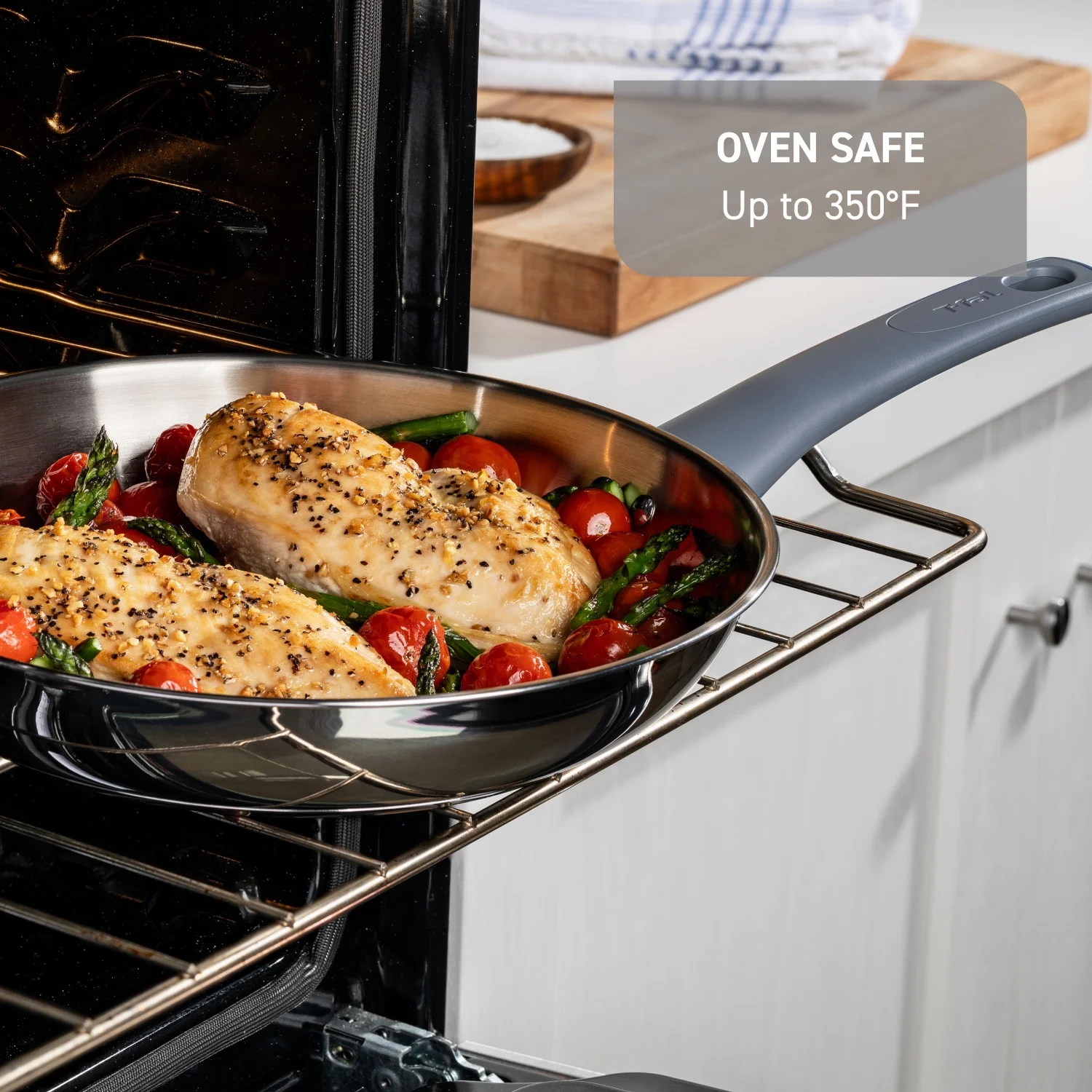 T-fal Daily Cook Stainless Steel Cookware Collection, 8 Inch and 10.5 Inch Frypan Set, Ocean Blue Handle