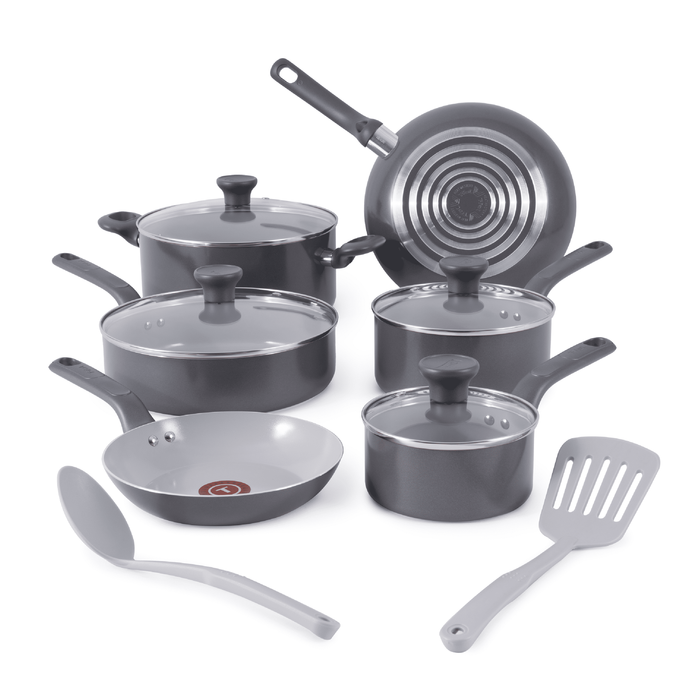 T-fal Easy Care Ceramic Non-Stick, 12 Piece Pots and Pans Cookware Set, Stone Grey