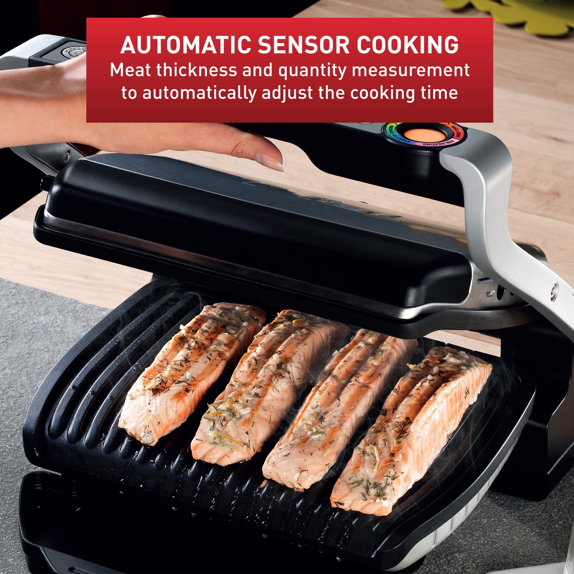 Perfect grilling results from rare to well-done: OptiGrill’s unique patented technology automatically measures the thickness of the meat to the millimeter, and the meat quantity to adjust the cooking time for guaranteed perfect doneness from rare to well-done, every time. Plus, the double-sided grill sears both sides of your meat flawlessly, eliminating the need to flip! No monitoring needed: Enjoy hassle-free grilling, the intuitive color indicator and audible beep guide you through each stage of cooking, from rare to well-done. You can enjoy flawless grilling results tailored to everyone’s preference – without constant monitoring! Versatility: Choose among the 6 automatic programs – Burger, Poultry, Sandwich, Sausage, Red Meat and Fish – or use the manual mode with its 4-temperature settings to grill a variety of ingredients, including frozen ones, all with a simple touch of a button Healthy meals for up to 4: Grill delicious & healthy meals for a family of four with ease. Our non-stick plates enable low or no-oil cooking, and the inclined plates guide excess fat away from your food Cleaning made easy: Don’t let the aftermath of a delightful meal spoil your mood. Our grill features removable, dishwasher-safe die-cast non-stick plates and juice tray for effortless cleanup.