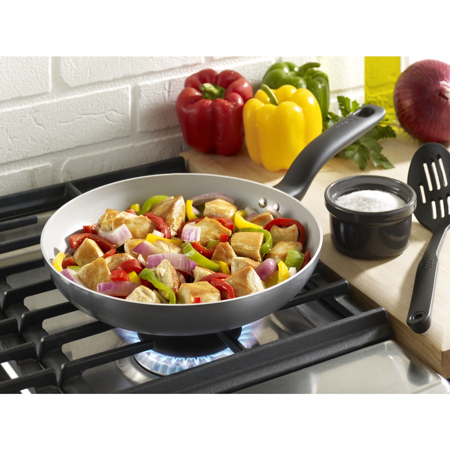 T-fal Initiatives Ceramic cookware has a new, beautiful grey cooking surface and still makes it easier than ever to cook healthier, nutritious and delicious meals at home. The cookware’s heavy-gauge aluminum construction and even heat base offer durable strength, efficient cooking and even heat distribution for reliably consistent results. The cookware’s innovative grey ceramic nonstick interior provides easy food release with just a little oil and can handle high cooking-surface temperatures up to 570°F—perfect for searing meat, fish, poultry, and more to delicious perfection. Ergonomically designed heat resistant handles provide a comfortable and secure grip and are oven safe to 350°F (use an oven mitt), while vented, tempered-glass lids offer at-a-glance monitoring. With its high gloss exterior and beautiful grey interior, T-fal Initiatives Ceramic cookware makes a great gift idea for newlyweds, new homeowners, or anyone looking for a durable and stylish collection.