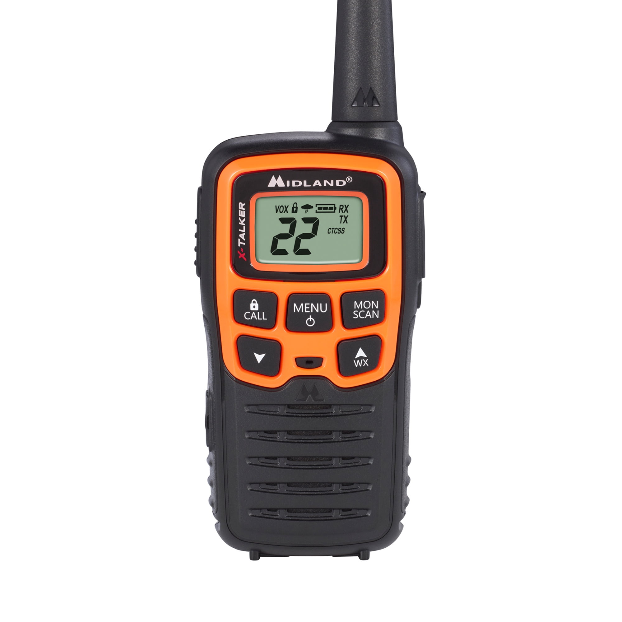 The X-Talker T51VP3 two-way radio offers you the ability to communicate license free with up to a 28 mile range and features 22 Channels, 38 Privacy Codes, Channel Scan, and our legendary Weather Alert technology – NOAA Weather Alert will sound an alarm indicating that there is a risk of severe weather in your area. With clear reception, clear transmission, and clear sound quality you will have confidence that your communication needs will be supported. FCC Certified• 22 Channels • 38 Privacy Codes • License Free • Water Resistant • Clear, crisp communication with easy button access • Xtreme Range* – Up to 28 miles • Weather Alert Radio • Silent Operation • eVOX – Hands-Free Operation (3 levels) • Power Options – Rechargeable battery packs included or 3 “AAA” batteries each (not included) • Headphone Jack • 3-Year Warranty
