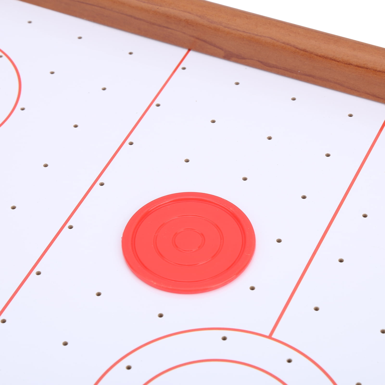 Features 1. AIR-POWERED: Small motors generate air to expel through hundreds of holes and hover-pads, ensuring quick puck movement. 2. EASY ASSEMBLY: Simple game assembly with illustrated instructions for easy set-up on small tables. 3. PORTABLE: Compact size and battery-powered for easy portability wherever the fun takes you. 4. INCLUDED ACCESSORIES: Comes with 2 pucks and 2 buttons powered by 3 AA batteries (not included) for an enjoyable game experience. 5. PARENT-CHILD INTERACTION: Enhances parent-child affection and builds friendships, making it an ideal game for children. Specification Item Type: Air Hockey Game Material: Wood Applicable age: 3 + Characteristics: Enhance parent-child affection, enhance friendship, etc Battery: 3pcs AA battery (not included) Size: Approx. 51 x 31 x 10.5cm / 20.1 x 12.2 x 4.1in Package List 1 x Hockey Table 2 x Goal 6 x Accessories 1 x Manual