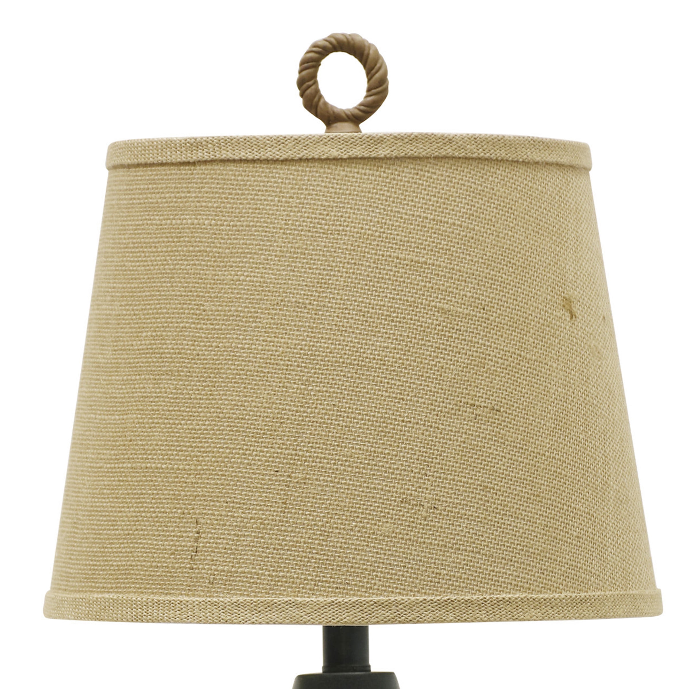 Due to the production process, each piece is unique and no two are exactly alike. Silver hardware Clear cord Made from poly and hardback canvas Requires one maximum 100-watt E26 medium base bulb (sold separately) 5-foot of cord Voltage: 120V Hardback canvas shade in cream Shade is 13″ wide x 10″ high Portable base: 5.25″