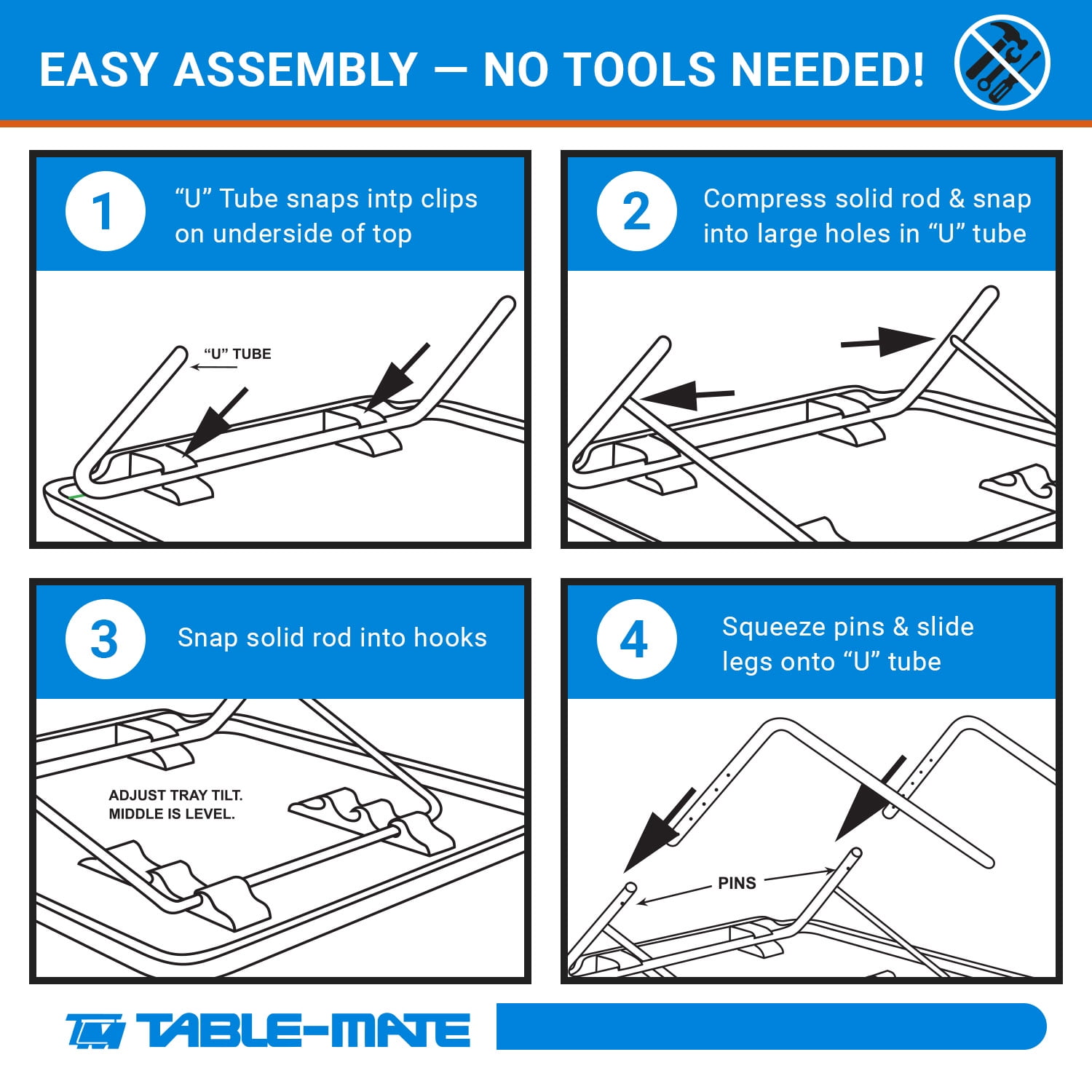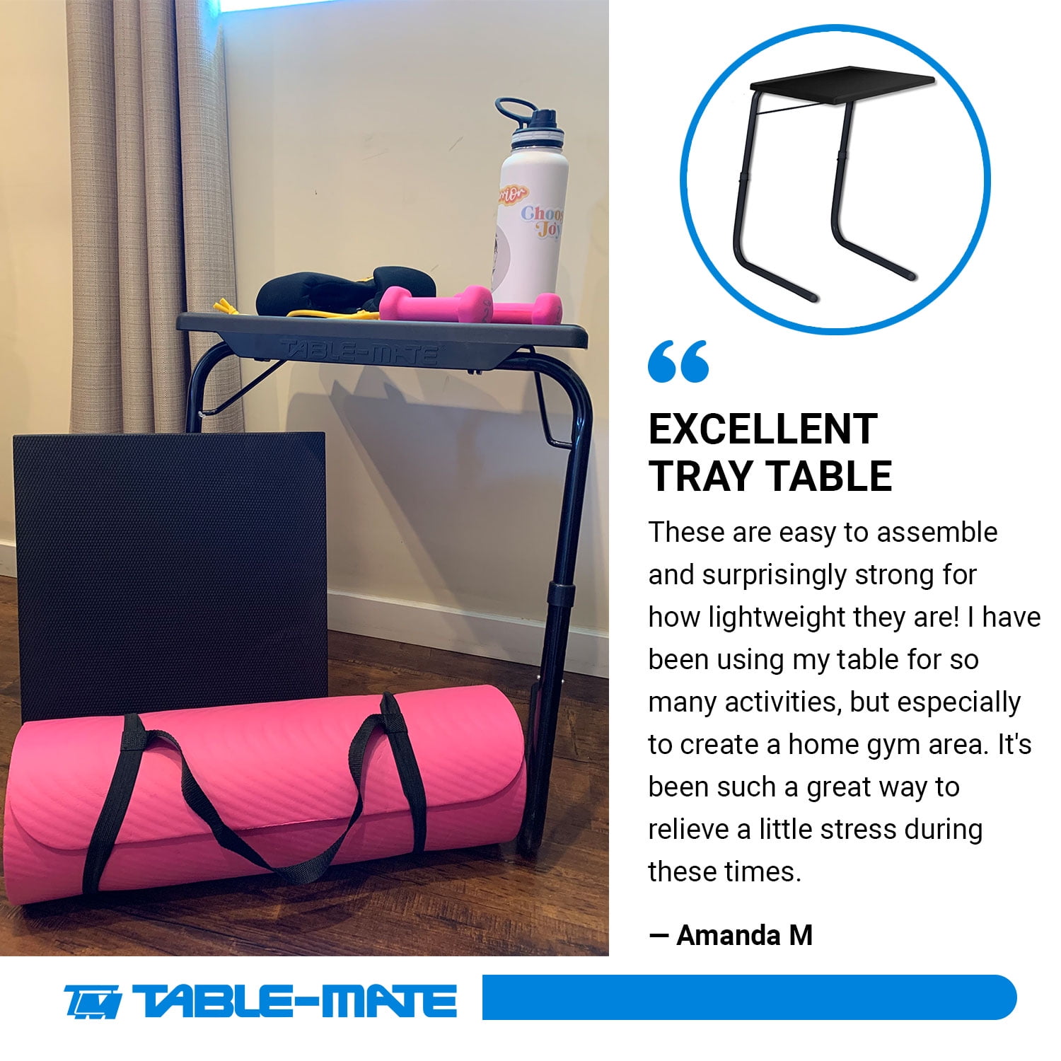 Table Mate XL TV Tray Extra Large Folding Table (Slate Grey): From the original tv tray experts – Our intentionally lightweight sturdy tv tray is designed to flex slightly when heavily loaded (up to 40-pound capacity) and built with powder-coated steel legs and a food-rated polypropylene top A great value – Features you won’t find anywhere else; a bigger surface area with an extra 5″ depth and width easily replaces heavy, cumbersome desks and furniture 24 tables in one – Fully and easily adjustable to 6 heights and 4 angles for any reading, eating, or working needs to keep you comfortable; no need to strain and bend to accommodate an uncomfortable table Close comfort – Effortlessly pull the table towards you as legs slide easily under and around couches and chairs; unique, sturdy design means there is no extra cross-bar to get in your way, get caught on floors, or cause bumps to the table Easy to assemble and store – Absolutely no tools needed to assemble and when not in use simply fold to its compact size and store next to a couch or in a closet