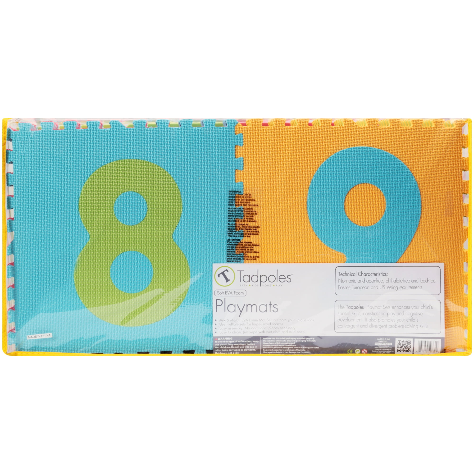 Tadpoles Soft EVA Foam Playmats 60 pc Bag Set USE: ABC playmat provides protective layer on hard floors DIMENSIONS: Each piece measures 12″ x 12″ x 3/8″ MATERIAL: Non-toxic, odor-free, and lead-free EVA Foam CARE: Wipe clean with a wet cloth and mild soap