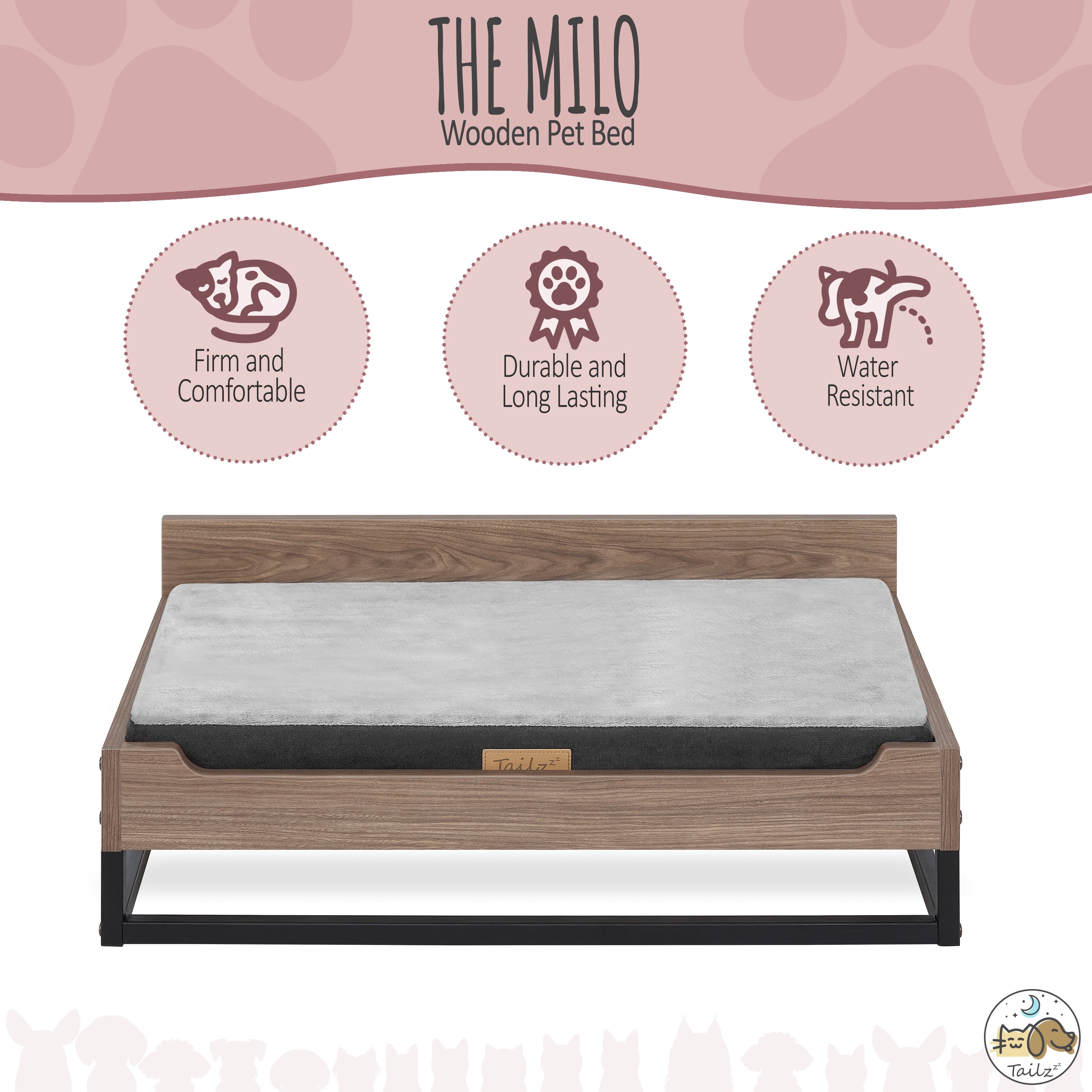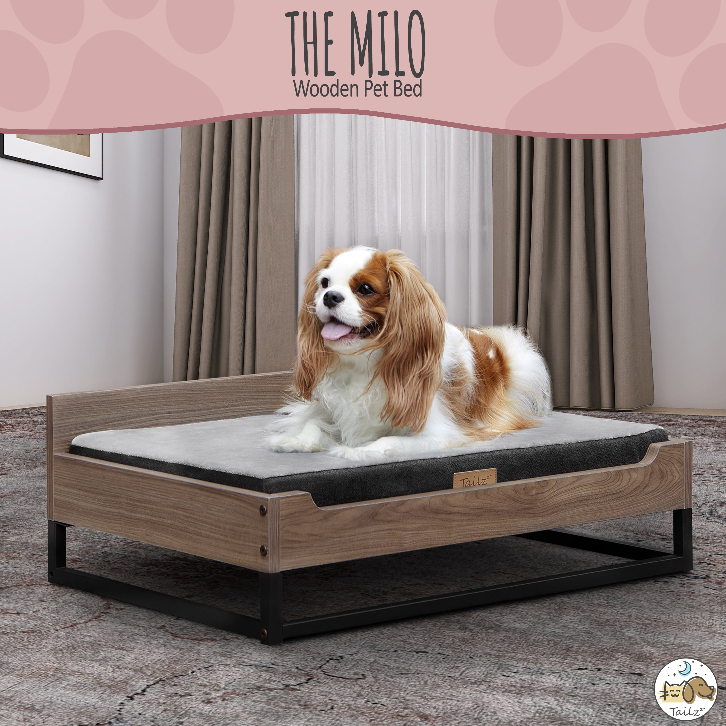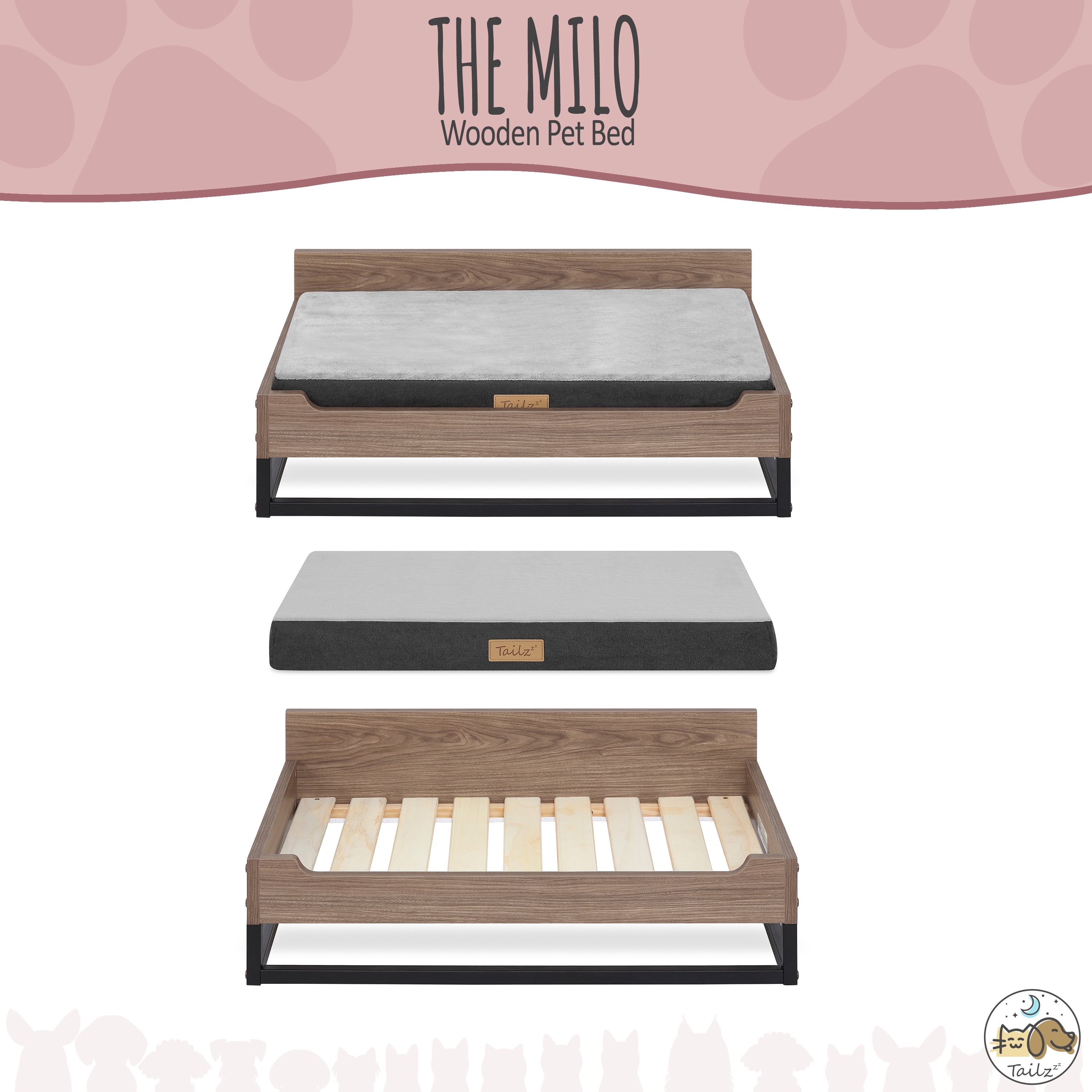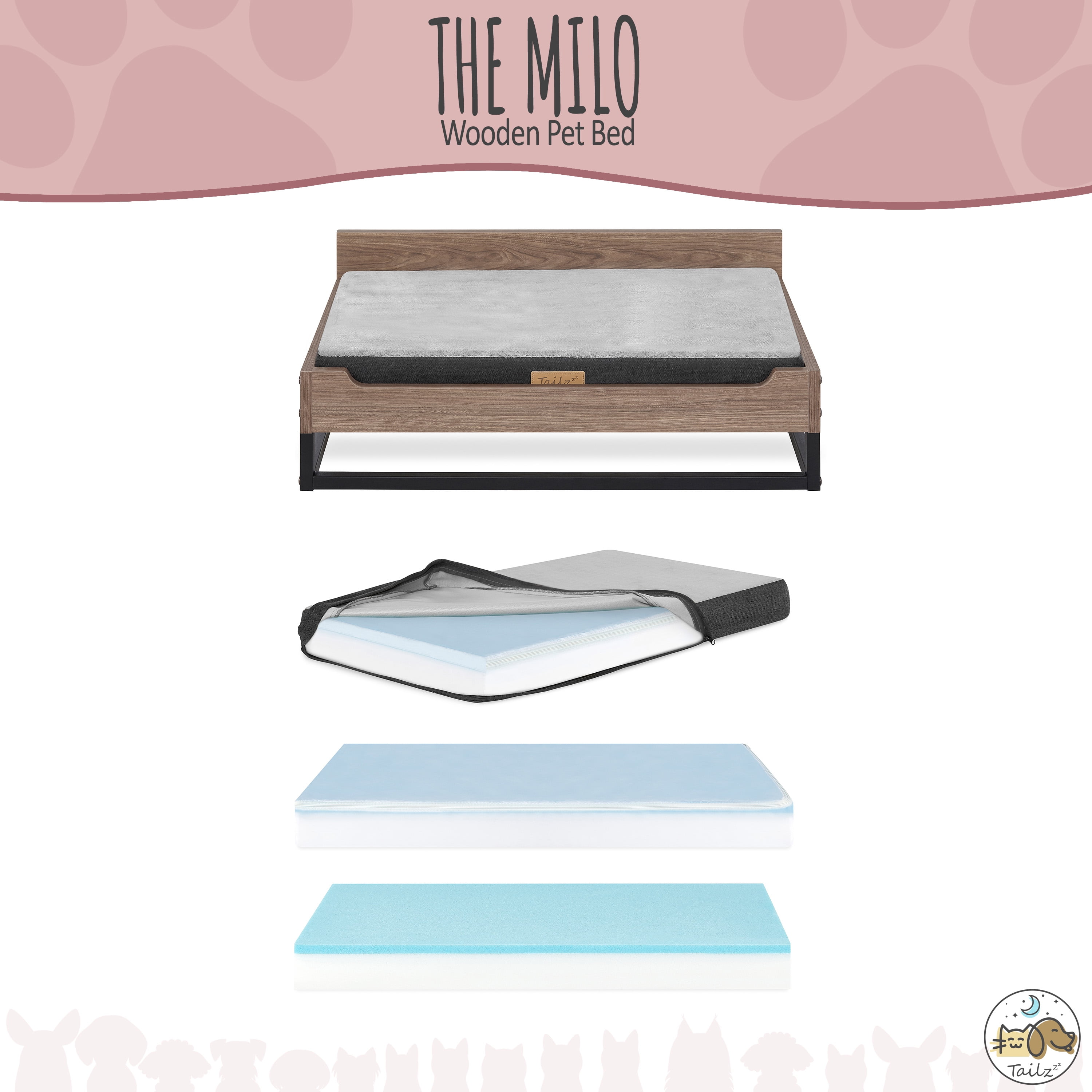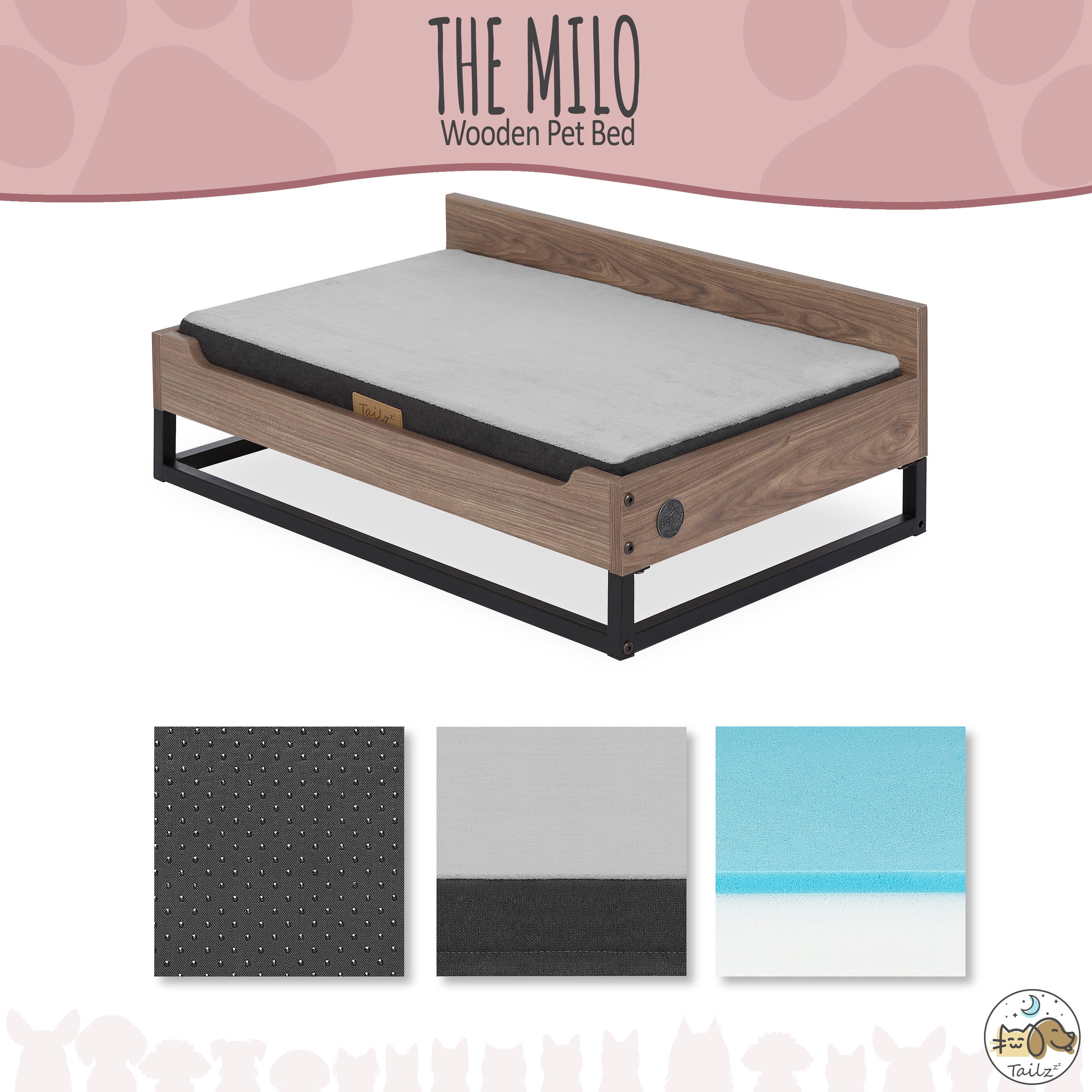 After a day of play, mischief and *boops*, it’s time for your furbaby to rest on ultra-comfort. Introducing the TailZzz Milo Wooden Pet Bed with Mattress that’s build with a solid wood frame, elevated design and sturdy metal feet to give your pet the much-needed comfort. What’s more, TailZzz Wooden Pet Beds are the only pet beds to be Greenguard Gold Certified with non-toxic pet-proof paint… making your furry little one’s health our priority. The TailZzz Milo Wooden Pet Bed’s water-resistant mattress is convenient for you with an outer cover that’s easy to machine-wash. And comfortable for your furbaby as it comes with a top layer of cool gel for ultimate comfort all year ‘round! What’s more, available in a subtle & minimal finish, it fits right in to your home’s aesthetic. The TailZzz Milo Wooden Pet Bed is ideal for small to medium sized pets with bed dimensions of 30.43” L x 19.4” W x 10” H, mattress dimensions of 29” L x 18” W x 3” H and weight of 18.5 Lbs. Weight capacity: 120 Lbs.