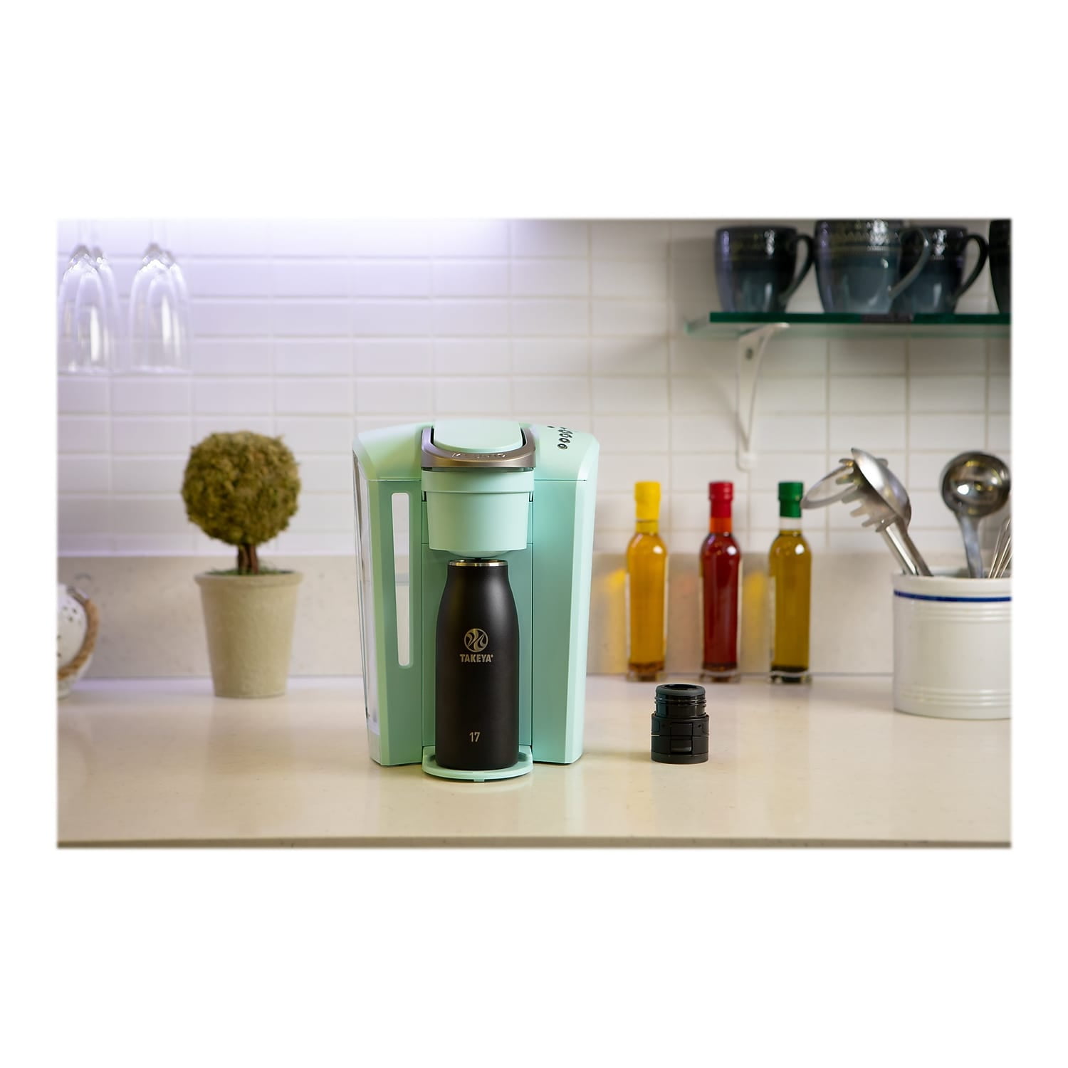 Key Features and Benefits: Leakproof lid The Traveler features a one touch open and close for easy one-handed drinking while on the go. The secure slide lock ensures a leakproof seal during any commute. Stays hot Double-wall vacuum insulated stainless steel to keep your beverages piping hot for 12 hours, or cold drinks cold for 24 hours. Single serve compatible The Traveler is perfect for your home brew. It is just the right height to fit under most Single Serve Brewers for easy filling. The ultimate travel mug The loop handle is for easy carrying on your commute. Built-in silicone coaster The 18/8 food grade stainless steel is durable and won’t transfer taste.