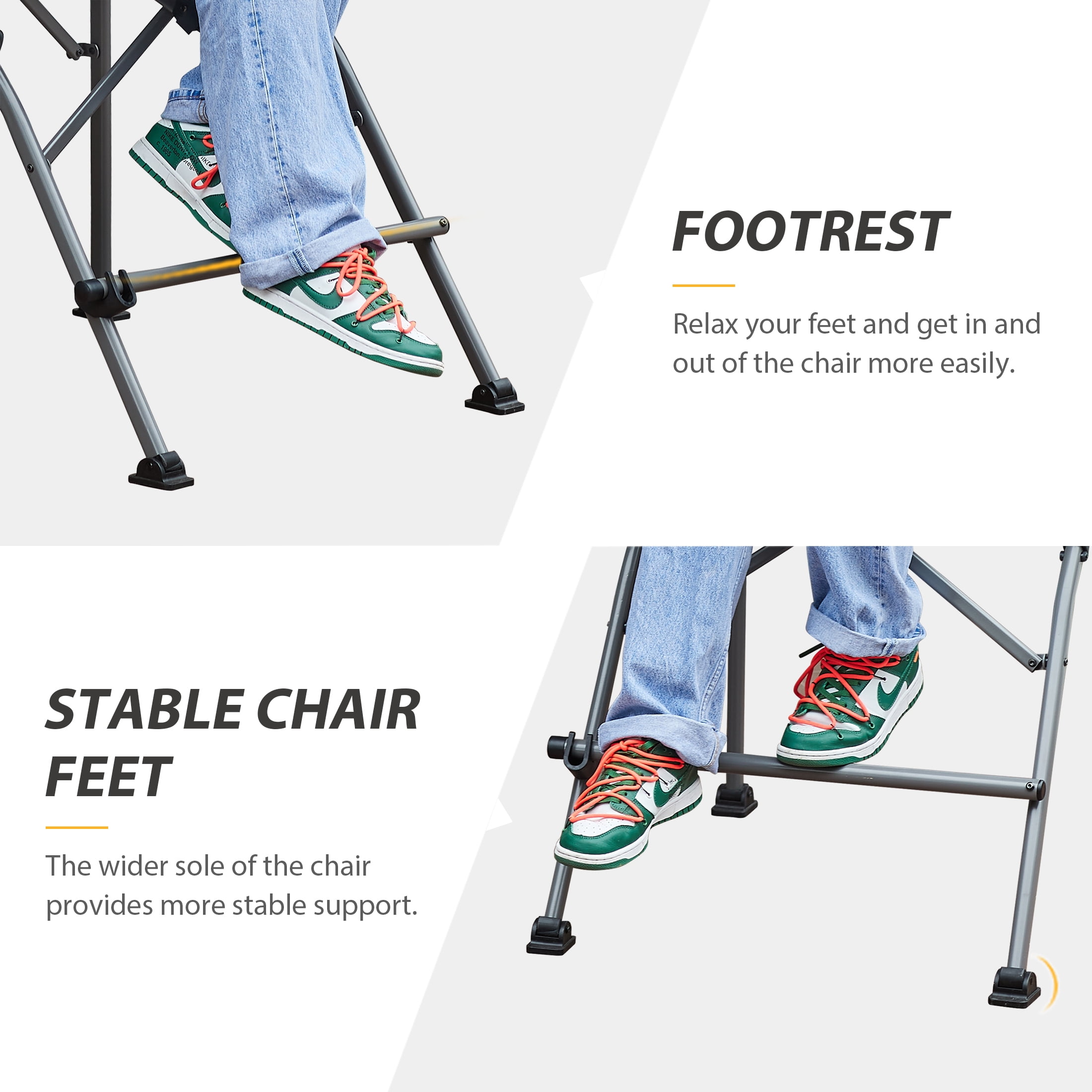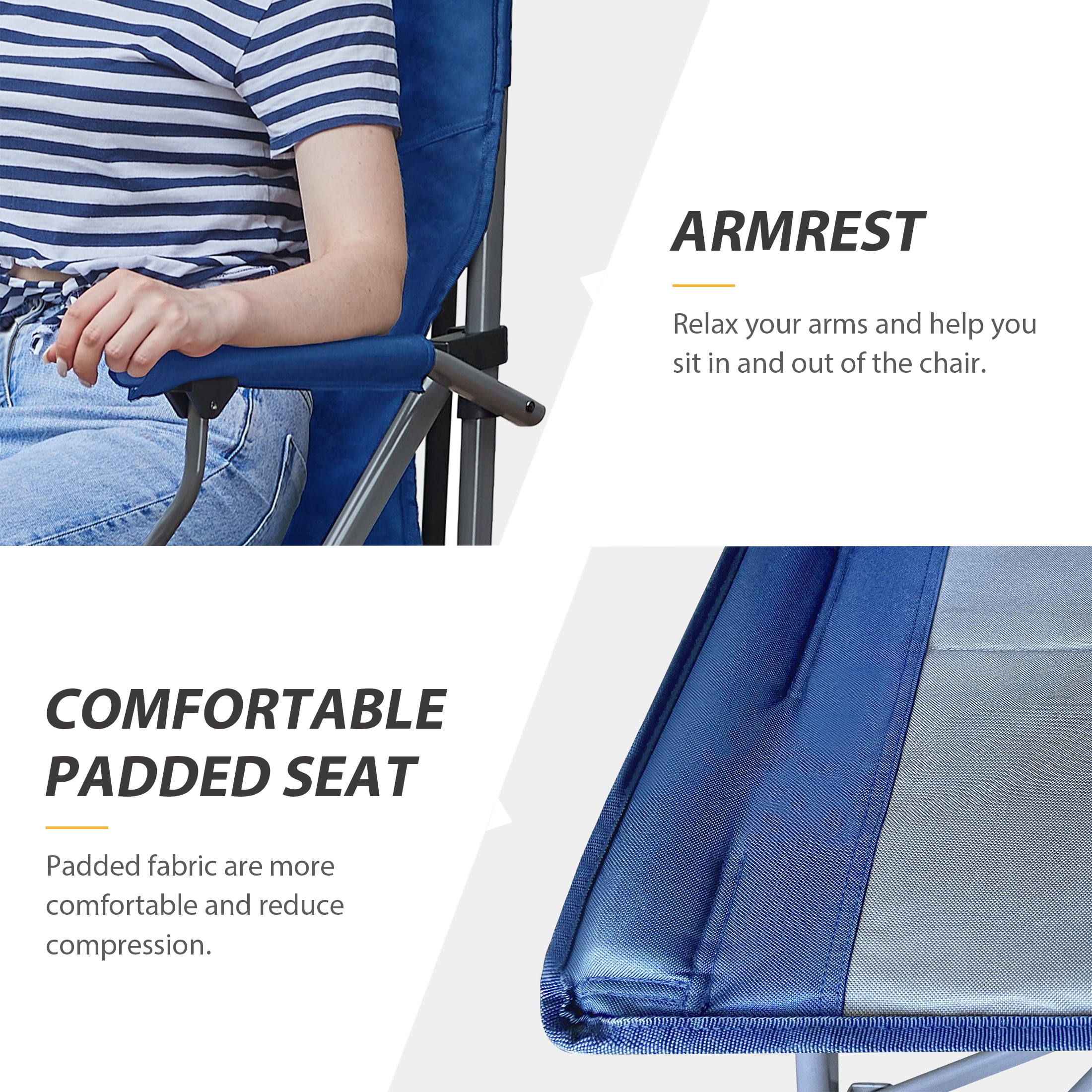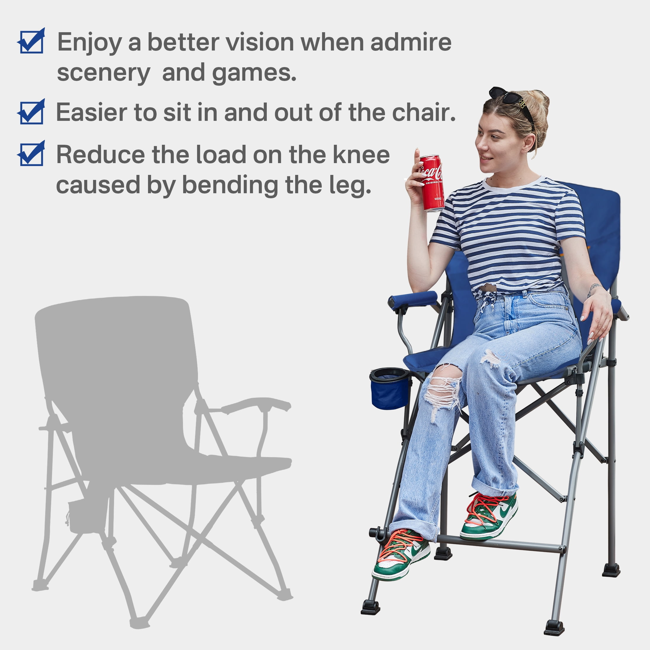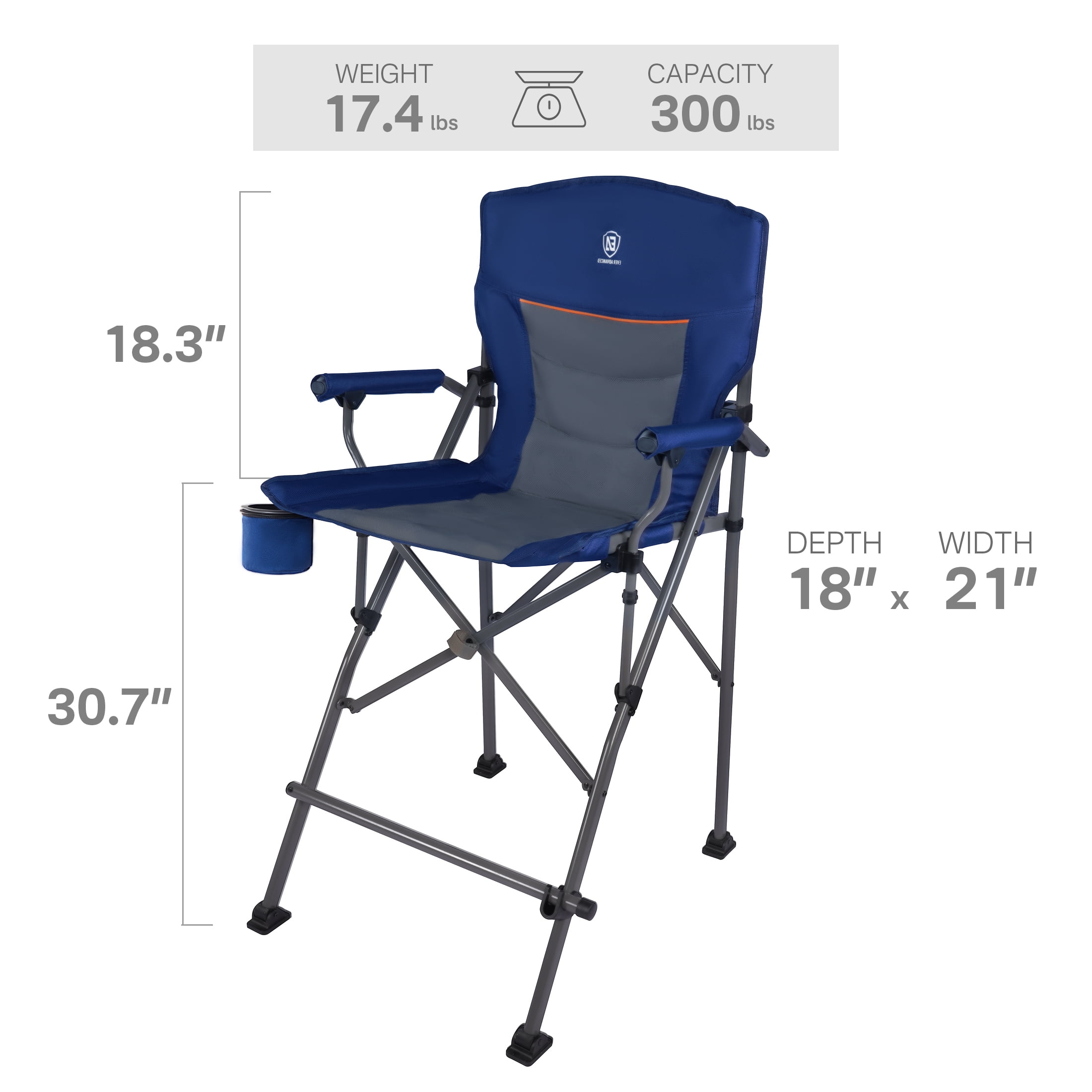 BETTER VIEW: Enjoy a better with 31″ high seats. It’s great to use in craft shows, camping or watch children’s games and training! CONVENIENT: The enlarged cup holder can hold 20 OZ cup. Hidden pockets at the back and under the seat can hold bags and phones. COMFORTABLE: Easy to sit out and in with hard arm-rest and foot-rest, which also support and relax your arms and feet.Padded fabric is more comfortable and ventilated. PORTABLE: Our tall folding chair comes with a carry bag. It can be put into the trunk of most cars. It can be easily taken to camping, courtyards, and playgrounds. STRONG & STABLE SUPPORT: the thickened frame can provide strong support. The wide and adjustable chair feet allow it to remain stable on different floors. 12 MONTH WARRANTY: All EVER ADVANCED products come with 1 year manufacturer’s warranty against defects.