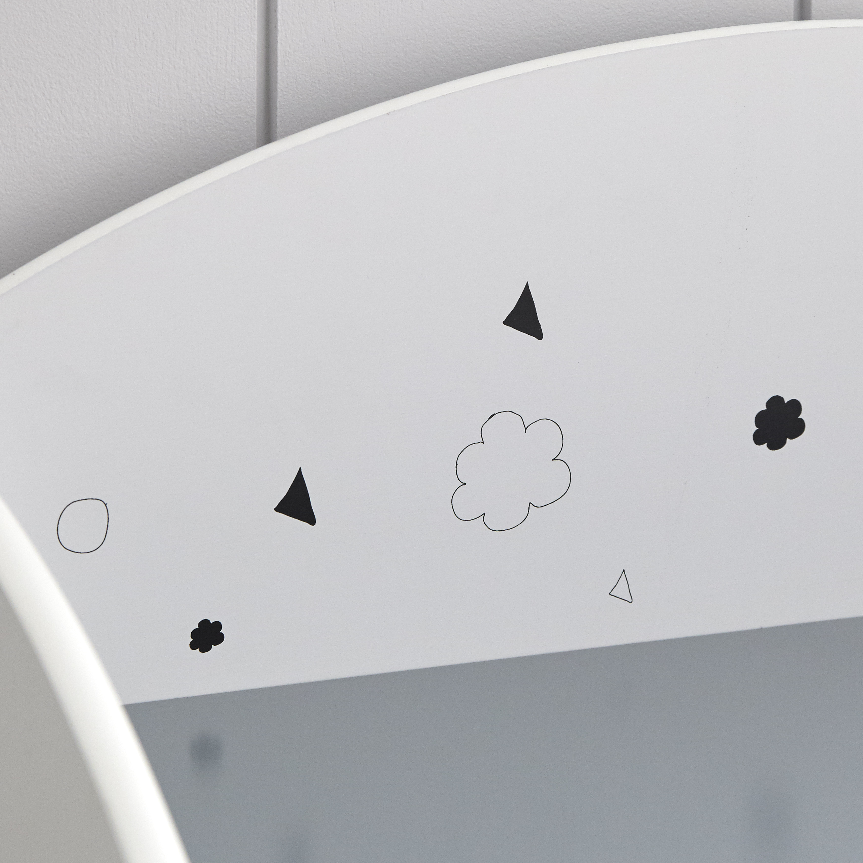 The Talori Bookshelf gives a modern look to any playroom or kid’s bedroom. The bookshelf features four shelves with the bottom shelf featuring a lip to keep toys in their place and is constructed of MDF in a two-tone, Grey and White finish,printed with clouds, triangles and other playful shapes. Designed with sturdy MDF Shapes printed on the collection Bookshelf with open back Shelf dimensions – 9.25”H x 22.5”W x 11D