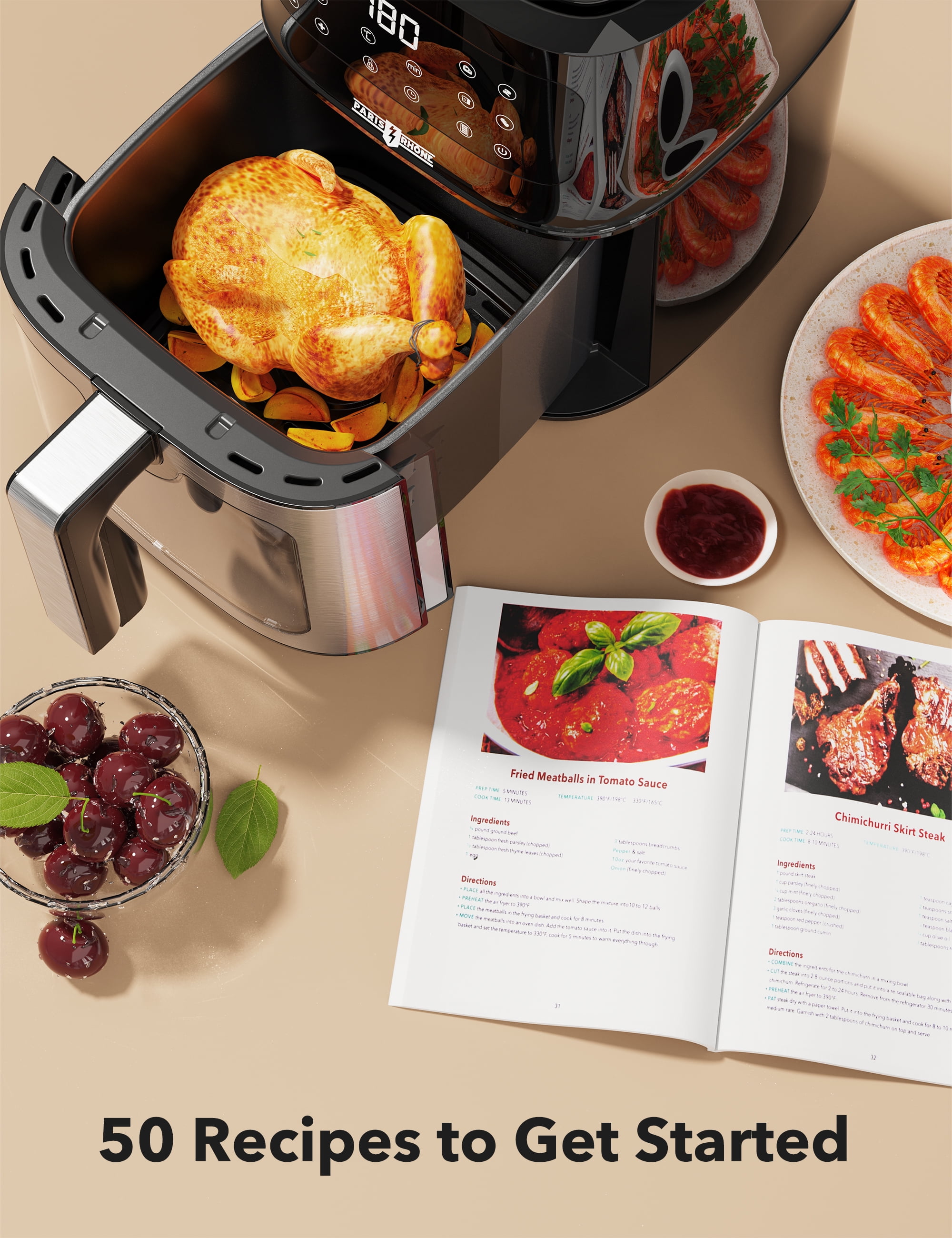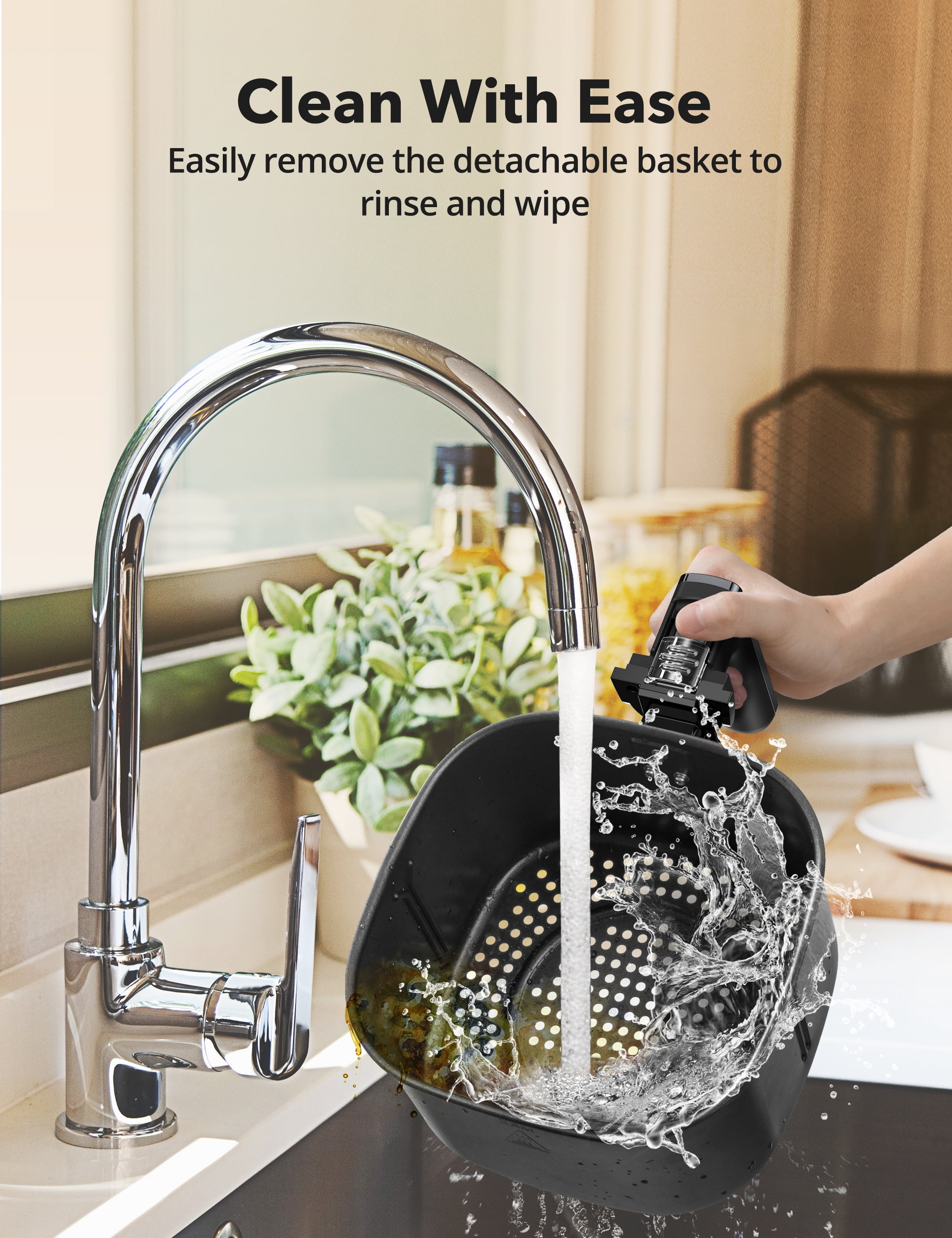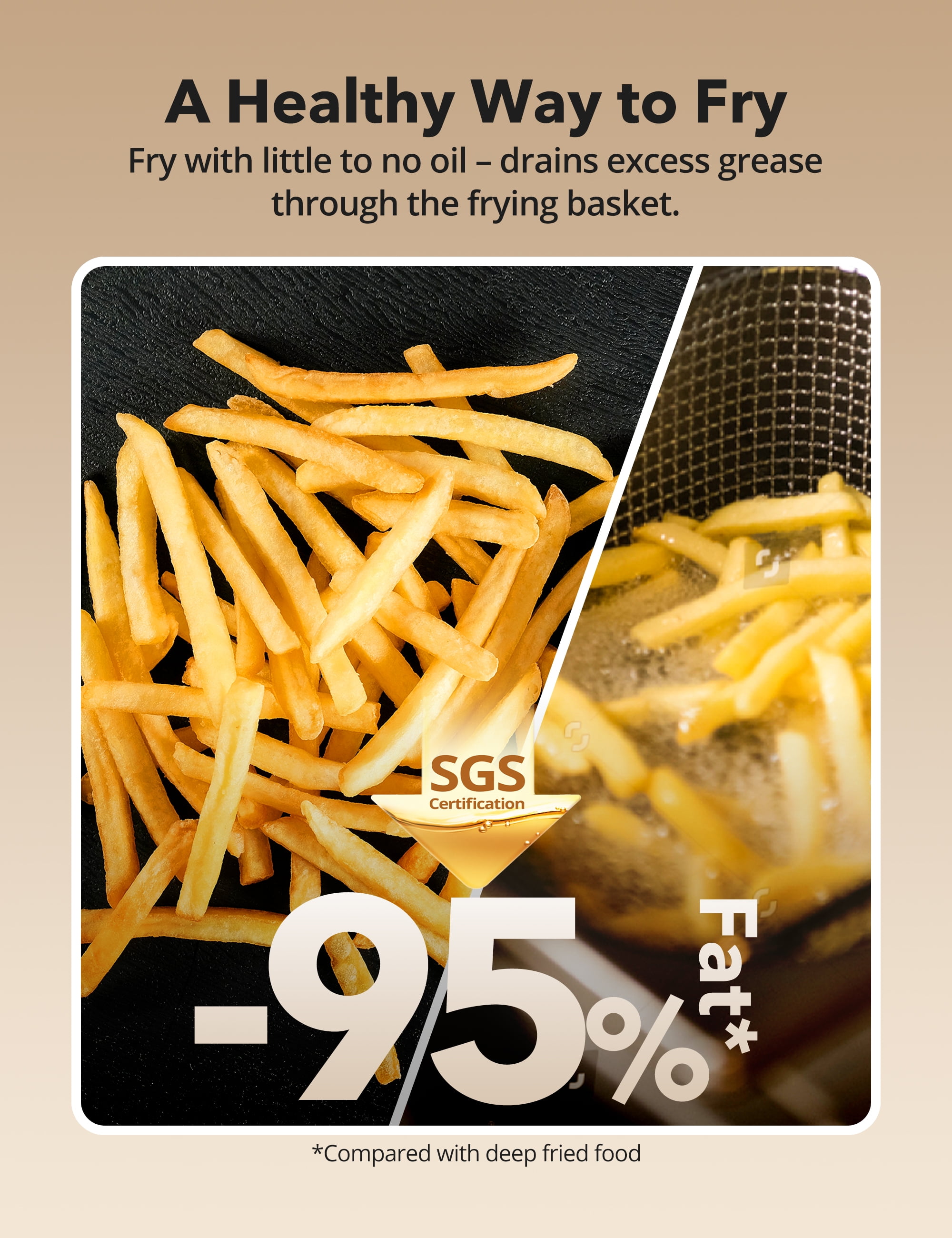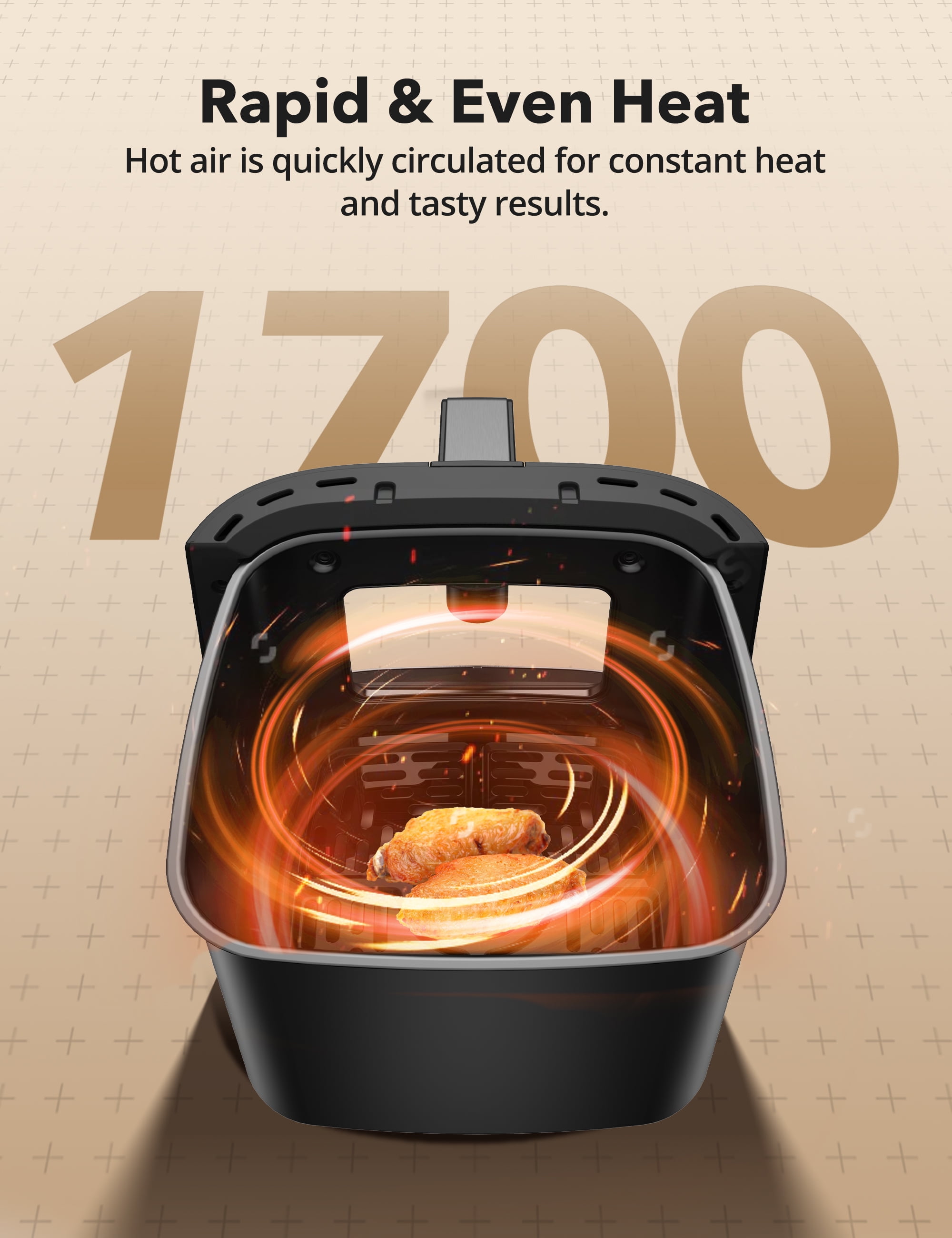 The spacious 5.3-quart non-stick air fryer features an eight-in-one function menu, including options for French fries, fish, steak, cake, pizza, baked shrimp, chicken wings, and ham, catering to all your cooking needs Our air fryer oven features top heating tubes with a 360° hot air circulation system, minimizing temperature differences between the top and bottom of your food for superior and uniform cooking results. With a wide temperature range of 180° to 400°F, it meets a variety of baking needs Just a minimal amount of oil or even none at all is needed for frying, preserving the crispy texture of deep-fried food without enduring the high heat and oil smoke of traditional cooking. Reduce fat in your food by up to 90%, enjoying delicious meals without worrying about health issues With 1700 watts of power and adjustable temperature control up to a maximum of 400°F, it allows you to precisely control the cooking process to achieve the desired crispiness and browning level. Equipped with a visible window, you can monitor the status of your food at any time The non-stick cooking basket and detachable components make cleaning a breeze. Spend less time scrubbing and more time enjoying delicious meals