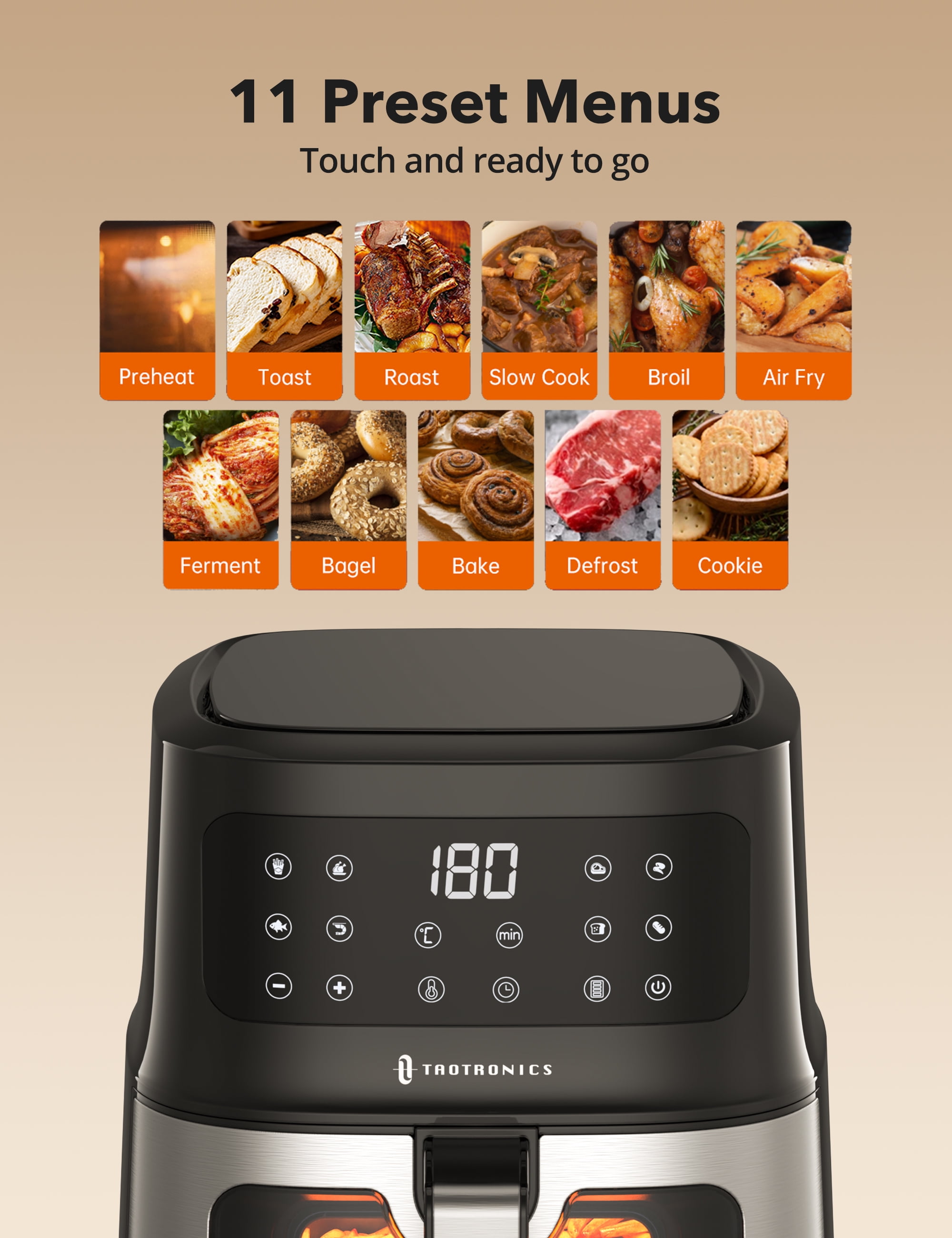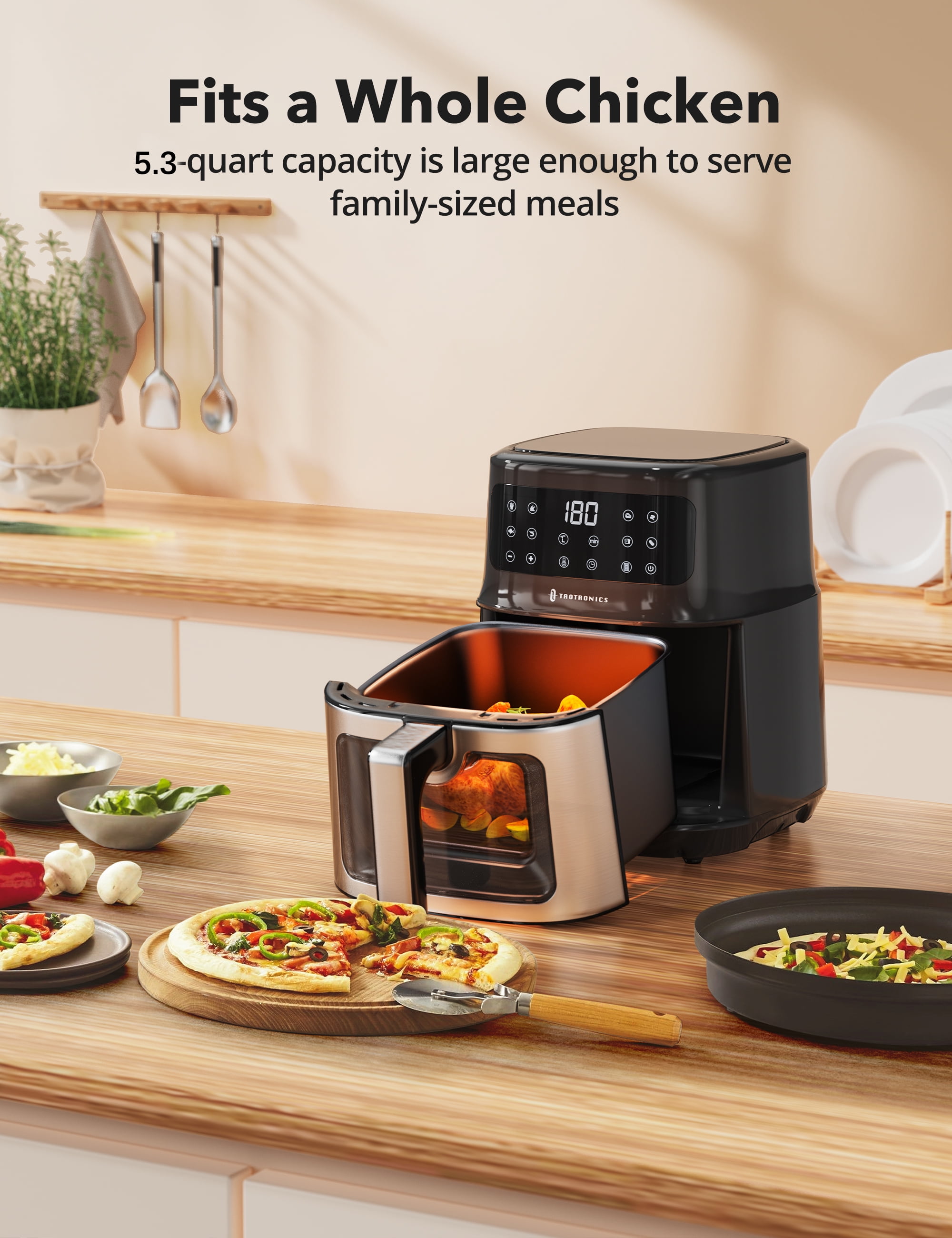 TaoTronics Air Fryer, 5.3 Qt 8-in-1 Airfryer with Viewing Window Smart Touch, Non-Stick, 1700W