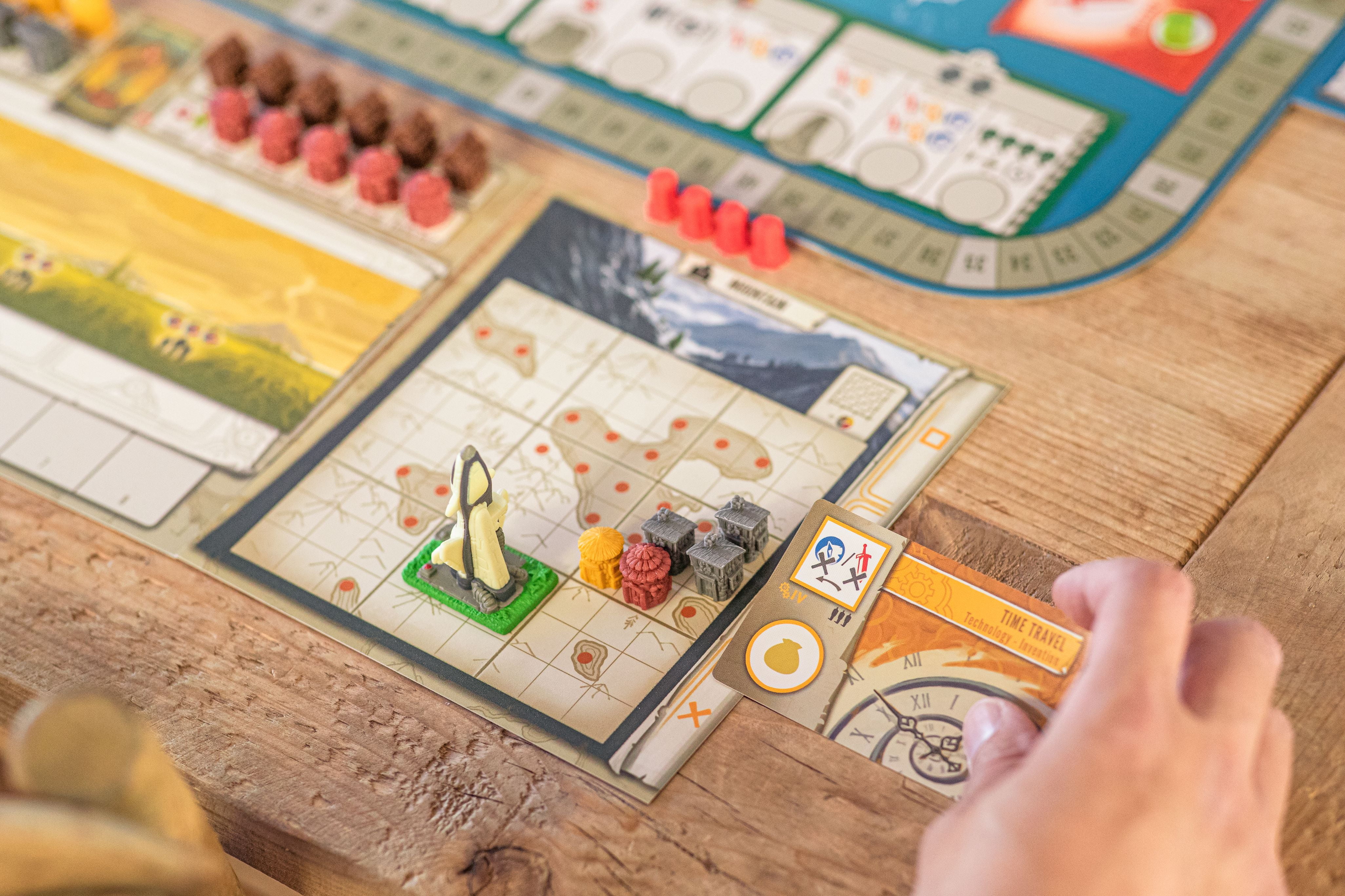 Create the civilization with the most storied history, starting at the beginning of humankind and reaching into the future. The paths you choose will vary greatly from real-world events or people—your civilization is unique! In Tapestry, you start from nothing and advance on any of the 4 advancement tracks (science, technology, exploration, and military) to earn progressively better benefits. You can focus on a specific track or take a more balanced approach. You will also improve your income, build your capital city, leverage your asymmetric abilities, earn victory points, and gain tapestry cards that will tell the story of your civilization. If you like A Feast for Odin, Mombasa, and Russian Railroads, we think you will enjoy creating your own unique civilization in Tapestry. Please join us in the Tapestry Facebook group to discuss the game! Ages 14+, 90-120 min play time, 1-5 Players Designed by Jamey Stegmaier Illustrated by Andrew Bosley and Rom Brown
