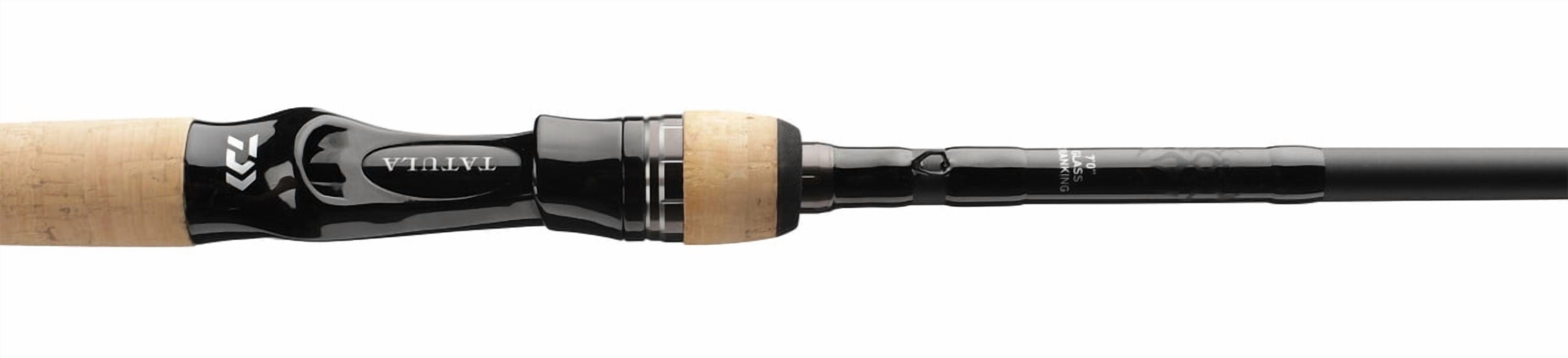 Daiwa’s TATULA line of bass rods are Finely Crafted with State of the Art Components. With Seven Categories of Rods and 21 different Bends the TATULA collection is a most complete professional collection of bass rods. There are 7 spinning designs, 6 casting models, 2 flipping rods, 2 shallow crank/jerkbait rods, 3 glass cranking and spinnerbait rods and a frogging rod. The beautifuly Crafted Natural Cork Handles provide timeless functionality combined with a sure grip. A slick Tatula Spider Graphic adorns the classic formed handles. The lighter X-45 concept blanks are rolled with Braiding-X Fiber Braiding Technology. The reduced weight blank resists ovalization alowing greater hoopstrength loads for a more precision load-up. The tangle free Fuji FazLite guides allow long accurate casts. If you are looking for a professional grade bass rod designed with a specific purpose in mind then take a look at the TATULA line of bass rods where Daiwa has built one just for the task. Features: – A most complete professional collection of bass rods – Finely Crafted with State of the Art Components – Seven Categories of Rods in 21 different Bends – Preminum Natural Cork Handle – Lazer Etched Tatula Spider Graphic – X-45 Concept Blanks with Braiding-X Fiber Braiding Technology – Fuji FazLite guides Specifications: – Water Type: Freshwater – Technique: Glass Cranking – Length: 7’0″ – Number of Pieces: 1 – Power: Medium – Action: Regular – Line Rating: 8 – 17 lbs. – Lure Rating: 1/4 – 3/4 oz. – Guide Type: Fuji FazLite – Blank Material: X-45 Concept Blanks with Braiding-X Fiber Braiding Technology – Handle Material: Preminum Natural Cork – Number of Guides: 9