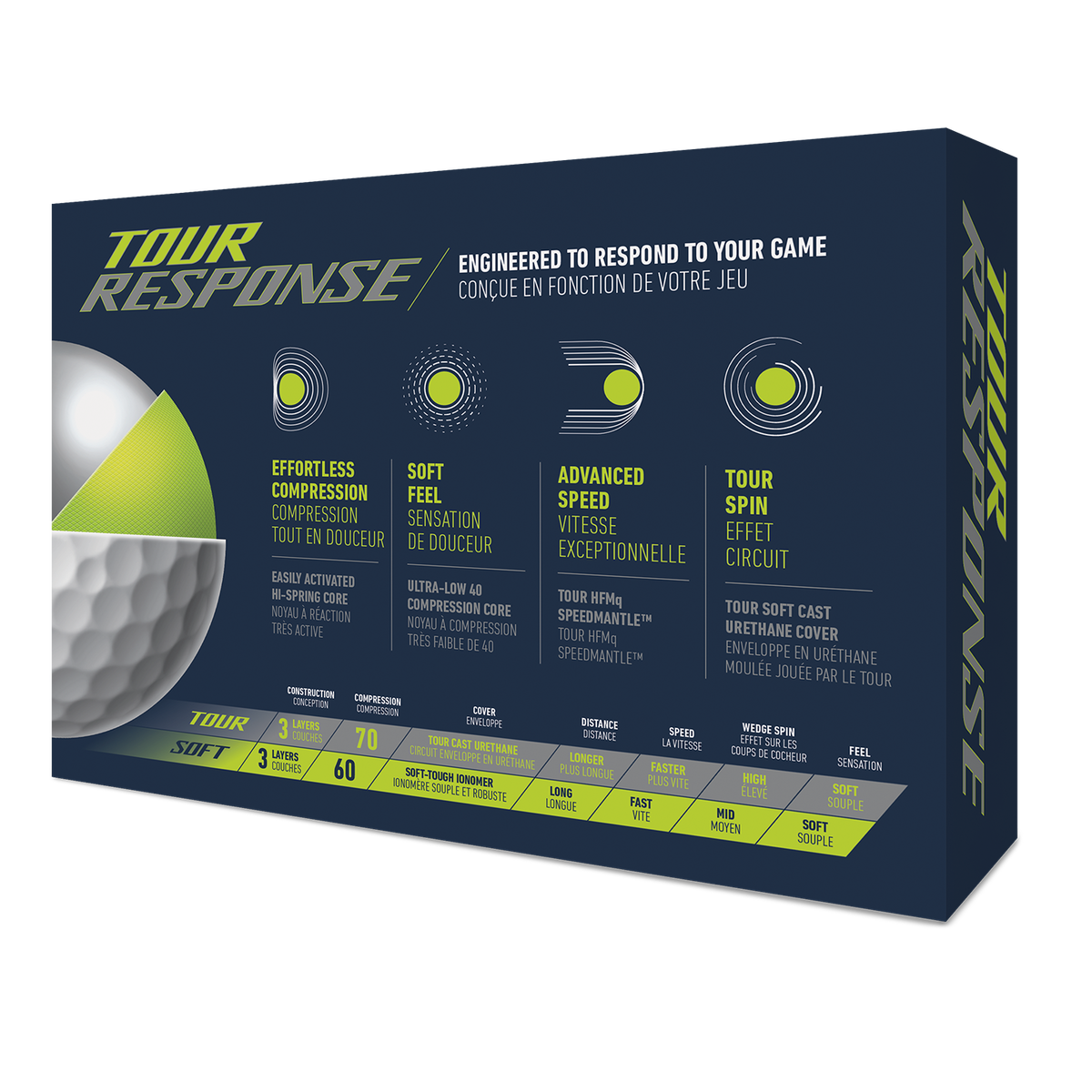 Every golf ball used on Tour has a urethane cover, made for a premium feel and increased spin around the greens. Now we’re making those same performance standards available at a price that appeals to all golfers. Engineered to Respond to Your Game An ultra-low 40 compression core gives you a softer feel while maximizing energy transfer and rebounding at impact, resulting in greater distance. Advanced Speed Easy To Play, Easier to Afford A Tour-quality golf ball with a 100% cast urethane cover, designed for high performance at a lower price.