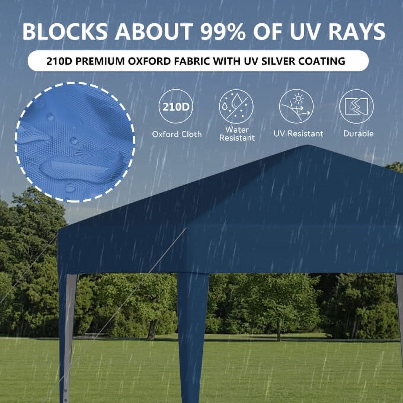 This pop up tent by TBKLEY is perfect for spring weddings or farmers market sellers to shield themselves from the hot sun! With a pop-up frame for easy transportation and a canopy that provides UV protection and insulation, our party tent is perfect for a variety of events including camping, family gatherings and picnics. With a powder coated steel frame, our tents are sturdy and built to last for a variety of events in the future. Features Total Length: 10’X10′(3m*3m)Outdoor canopy tent with four walls can accommodate up to 12 people.3 heights adjustable. From the ground to the top of the tent: 7.9 ft/8.2 ft/8.5 ft Quality Material: High quality 210D waterproof tent fabric blocks 90% of sunlight and provides UV protection. Suitable for outdoor use in both sunny and rainy days. Comes with waterproof carry bag, ropes and stakes for various activities. Easy Installation:1 person can install or remove it in minutes. Secure the canopy with the frame, then open the collapsible frame to adjust the height. Powder coated steel frame is easy to open and fold. Widely Used: This party tent is perfect for commercial or recreational use, such as parties, weddings, graduations, flea markets, small businesses, outdoor events, patio retreats, backyards, camping, picnics, sporting events, trade shows, bazaars, flea markets, yard sales, reunions, and more. Attention: This canopy tent is for temporary use. We recommend using the party tent in weather without heavy rain or strong wind.