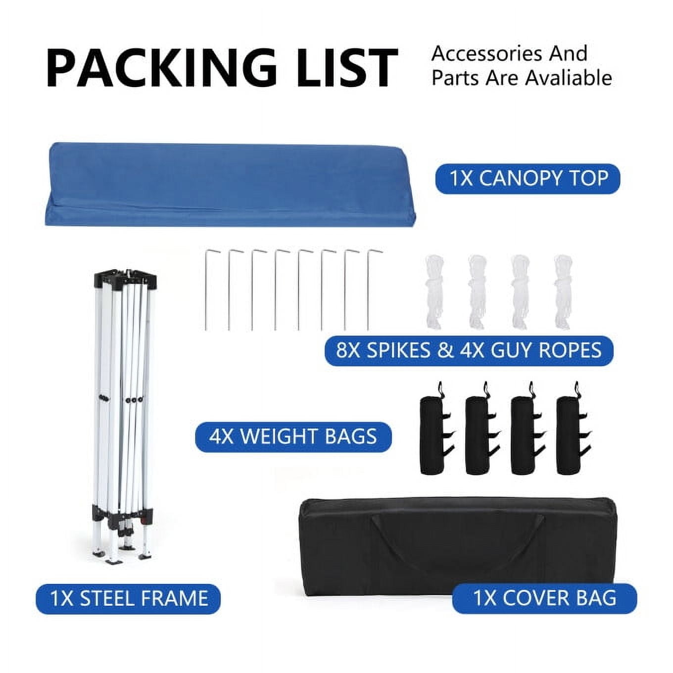 Instant setup and take down, portable outdoor canopy, sturdy and durable heavy duty canopy with steel frame and white powder coat finish. 3 height adjustment to fit most occasions. Tent cover Water-resistant and against Sun Harmful Rays,which can for long time use. 10*10 feet canopy tent include portable carry bag more easy for outdoor activities, and teh size fit for teh most cars’ trunk. Waterproof 210D Oxford tough fabric PVC, which can blocks 99% of UV rays.