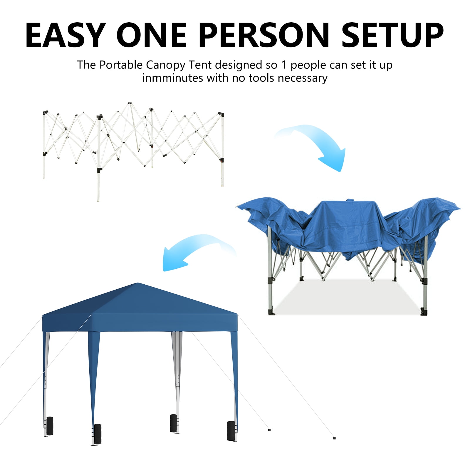 TBKLEY 10x10ft Pop up Canopy Tent with Carry Bag for Backyard Home Party Outdoor Events, Blue