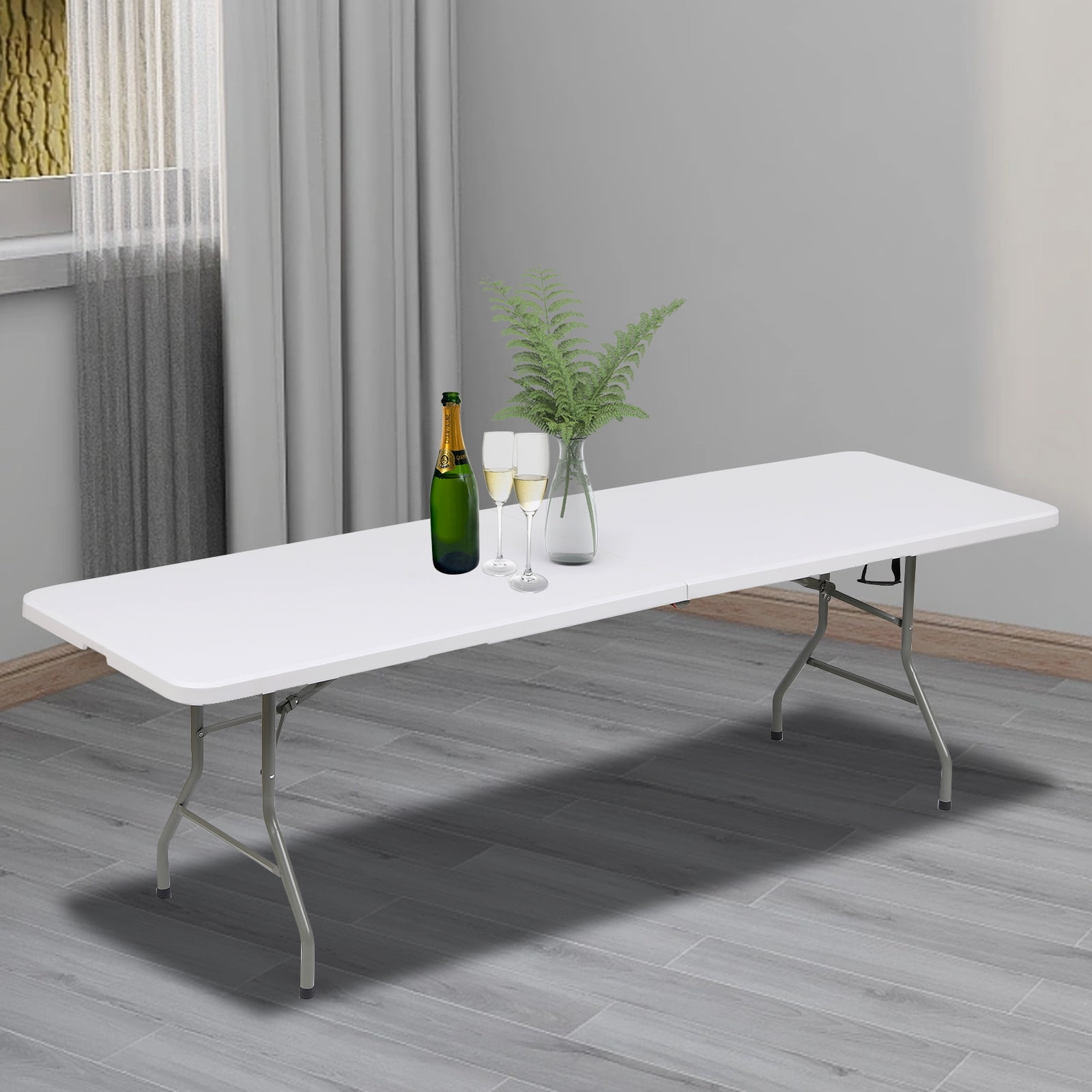TBKLEY 8ft Portable Plastic Folding Tables for Home Garden Office Indoor Outdoor, White