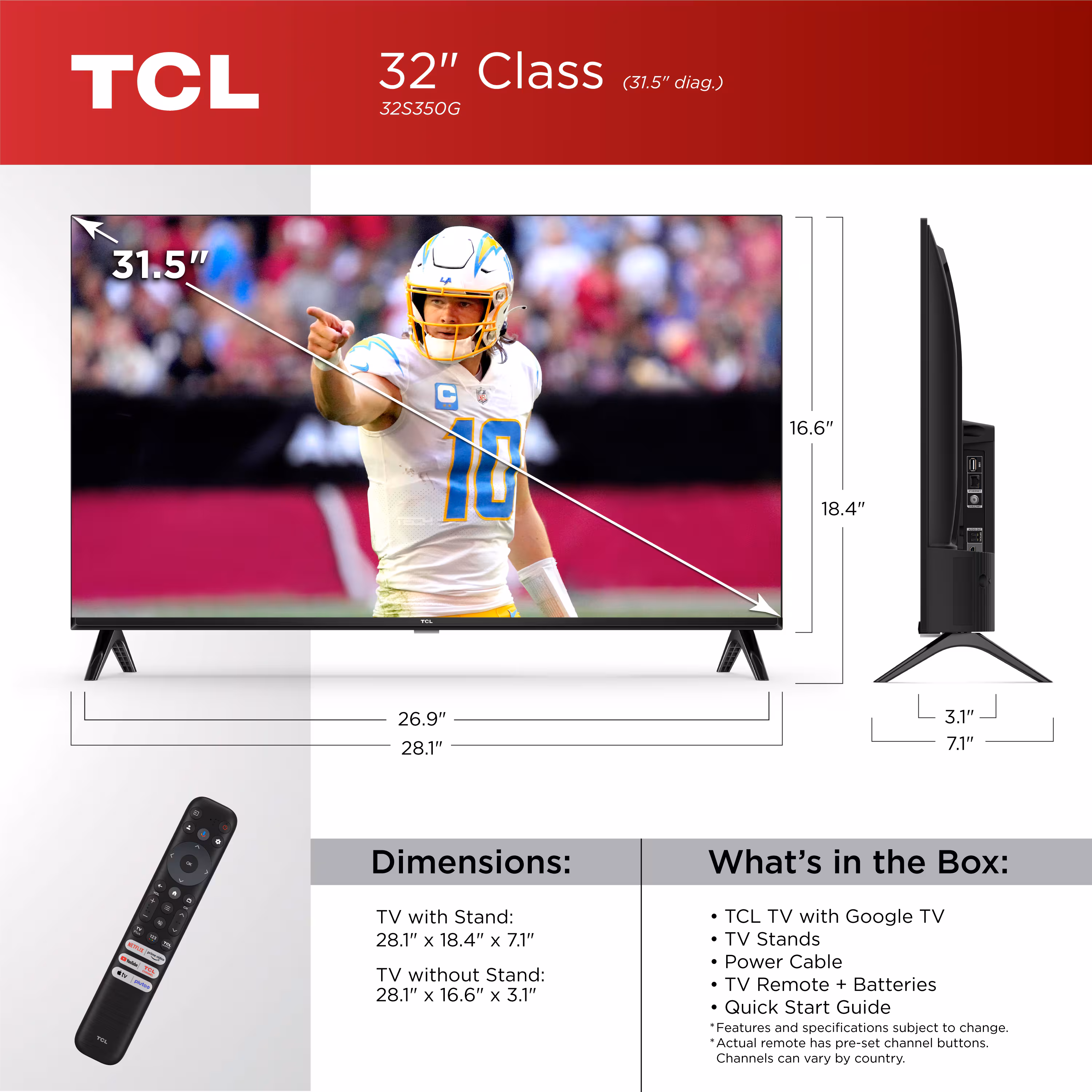 - Screen Size Class: 32 inches