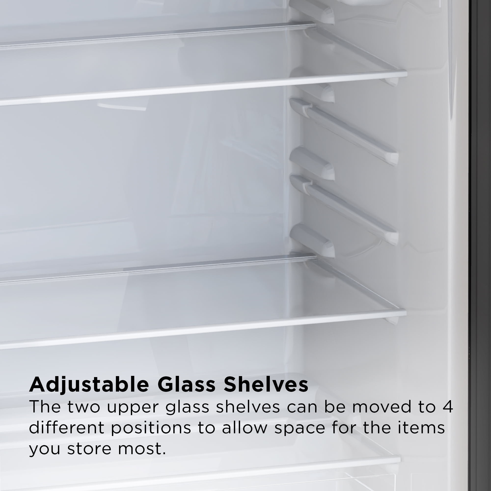 TCL’s spacious 4.5 cubic foot capacity 2 door refrigerator model has separate compartments for fresh and frozen food items. With room for 2-liter bottles on the door, adjustable glass shelves, crisper drawer and freezer with wire shelf, there is space for plenty of food. Its compact size and reversible doors help this fridge fit into your space nicely. Whether at school, home or office, TCL compact refrigerators provide storage convenience and keep your foods cold and fresh