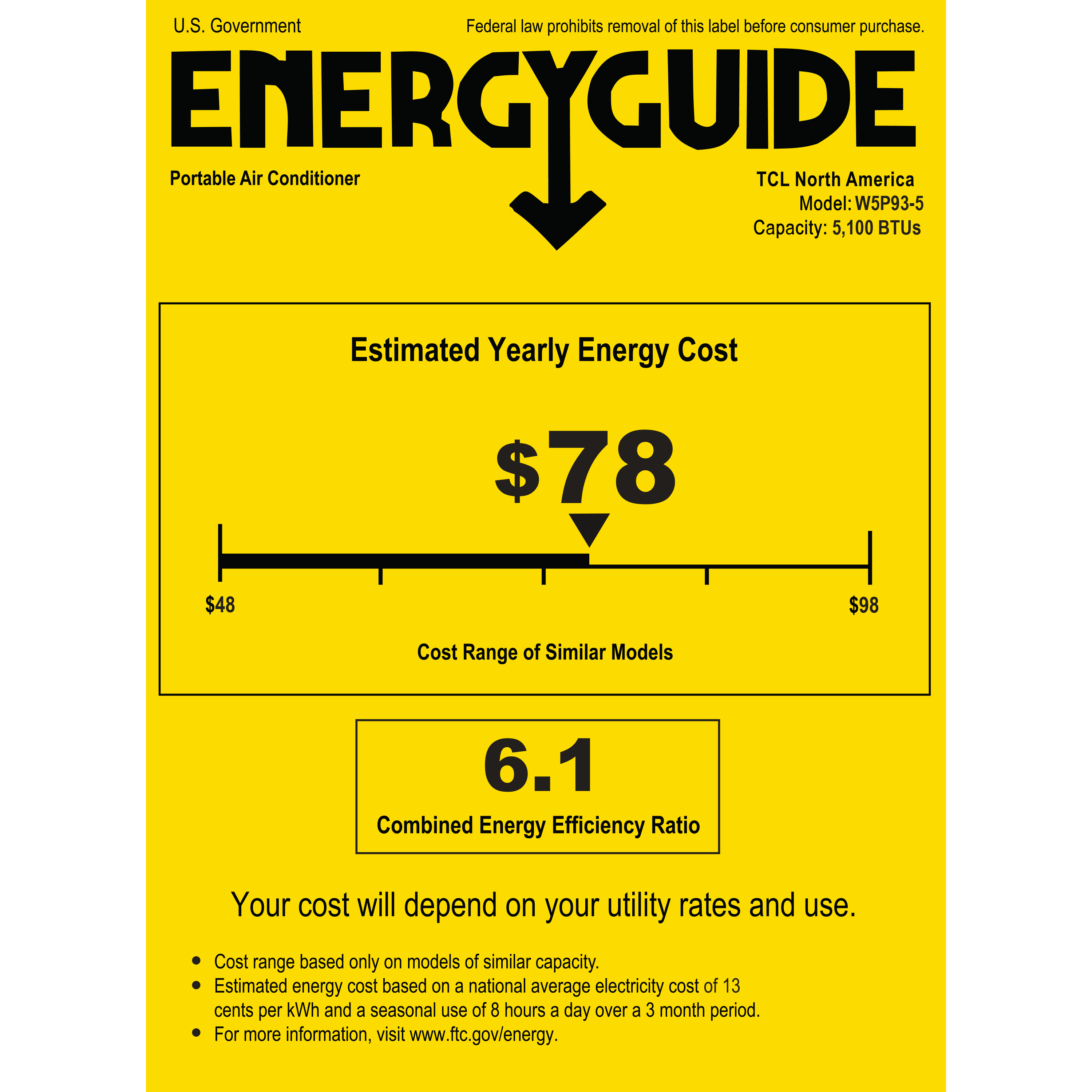 Stay cool the smart way with the powerful cooling capacity of the new TCL 5,000 BTU Smart Portable Air Conditioner featuring AC, Fan, and Dehumidifier modes. The fan circulates air while the AC helps you easily adjust and manage temperatures in rooms up to 150 sq. ft. Additionally, the dehumidifier function helps to reduce moisture in your home. The user-friendly TCL Home App lets you control your unit from anywhere, change the temperature, set schedules, and more. You can use simple voice commands to control your portable AC when paired with Alexa or Google Assistant-enabled devices. The washable and reusable filter helps protect your portable AC’s life while reducing large airborne particles like dust and pet hair. Setup is made easy with the included installation kit and guided in-app instructions that will have your unit up and running in minutes. The two handles and four wheels make this portable air conditioner easy to glide from room to room, keeping you cool in any room with a vertical or horizontal sliding window.