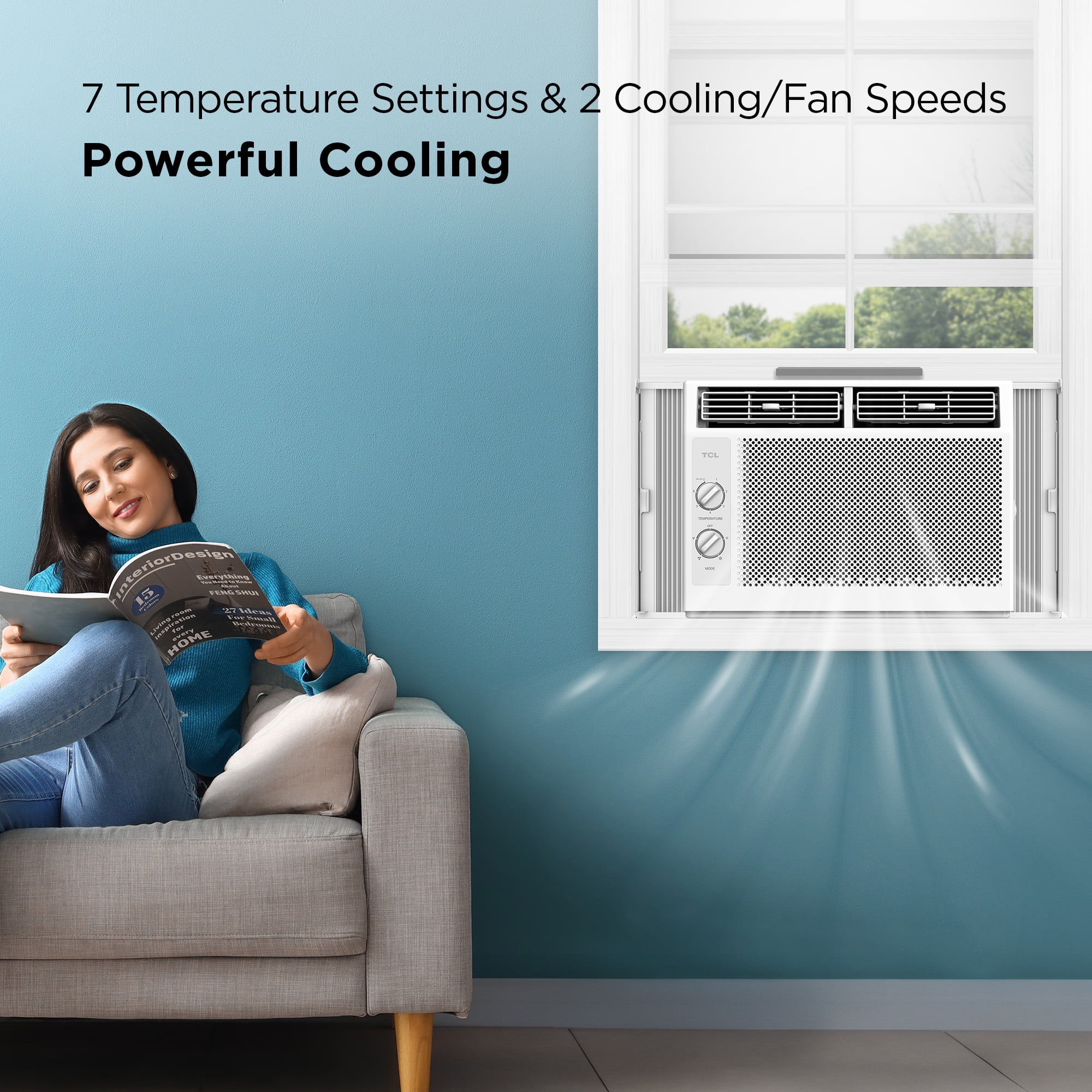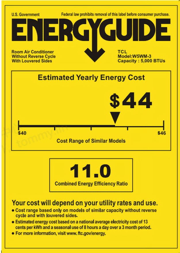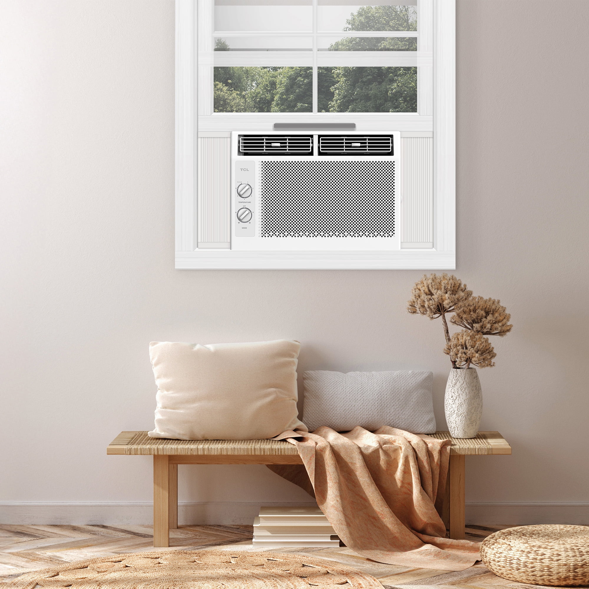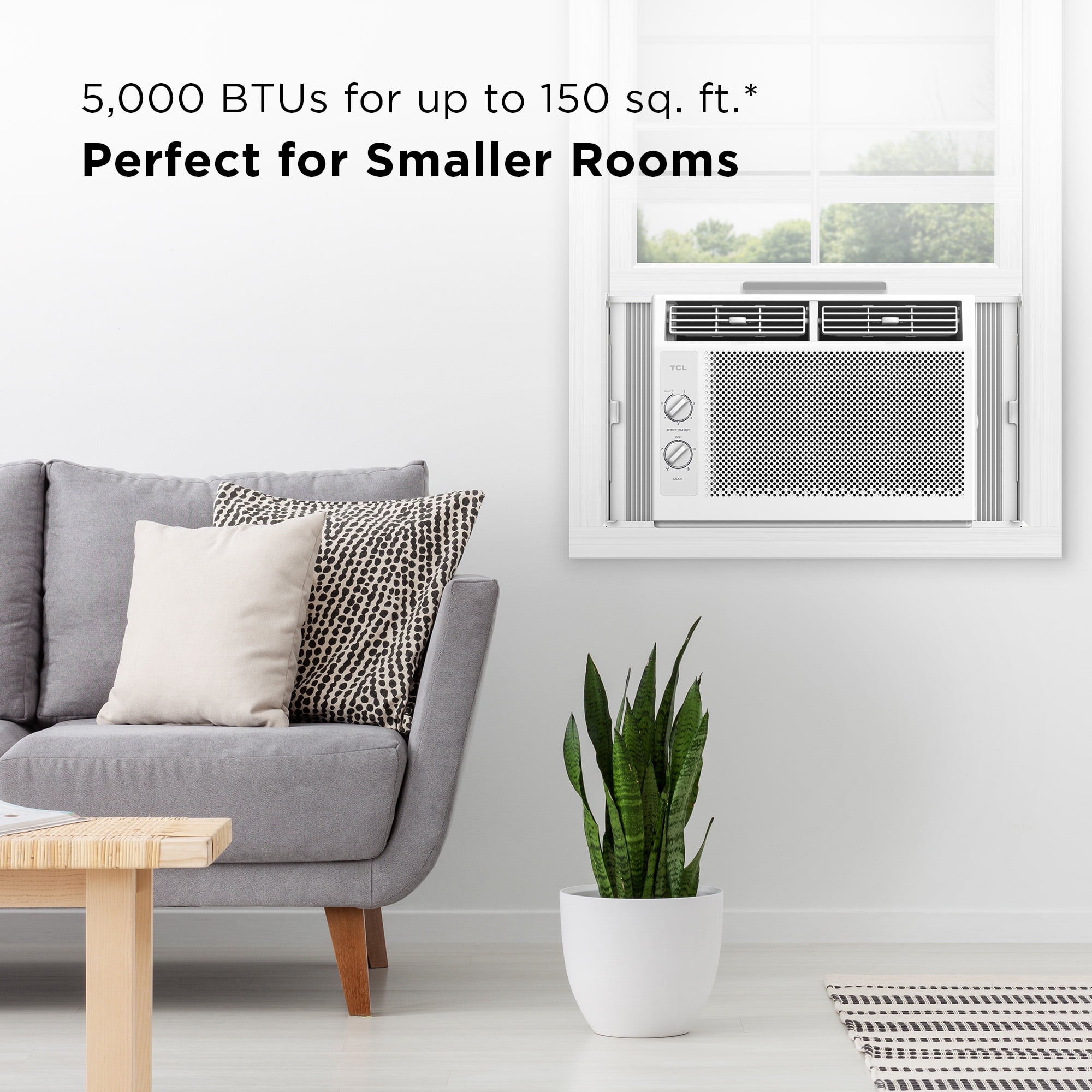 PERFECT FOR SMALL ROOMS: The 5,000 BTU window air conditioner is powerful enough to cool rooms up to 150 sq. ft. and features multiple fan speeds that allow you to choose your level of comfort. ENERGY EFFICIENT: TCL effective 5,000 BTU window AC helps to save on energy costs with a Combined Energy Efficiency Rate (CEER) of 11.0, so you can experience comfort throughout the year. COOLING EVERYWHERE YOU NEED IT: Customize the direction of airflow to where you need it most with the 4-way directional vent. EASY AND CONVENIENT CONTROL: Easy-to-use mechanical dials featuring multiple temperature, cooling, and fan settings. WASHABLE & REUSABLE FILTER: The washable and reusable filter helps protect the life of your AC by preventing large airborne particles like dust and pet hair from ruining the machine. SETUP MADE EASY: You don’t have to be an expert technician to set up your new window AC unit with the simple and easy installation kit. Screw driver required for setup but not included. Some window frames may require pre-drilled pilot holes (Window Size Requirement: 23-34 inch width, 14.5 inch opening height) WARRANTY: Genuine TCL manufactured products come with a 1 Part & Labor Warranty so you can rest easy knowing you’ve made a good investment. TCL recognized as the brand with the largest dollar share increase in the US Home Comfort category in 2023.* *Source: Circana, Retail Tracking Service, U.S. dollar share change, 12 months ending December 2023 * Actual coverage may vary based on room size and configuration (ceiling height, number of windows, and other varying conditions) and environment factors such as number of occupants, home insulation, etc.
