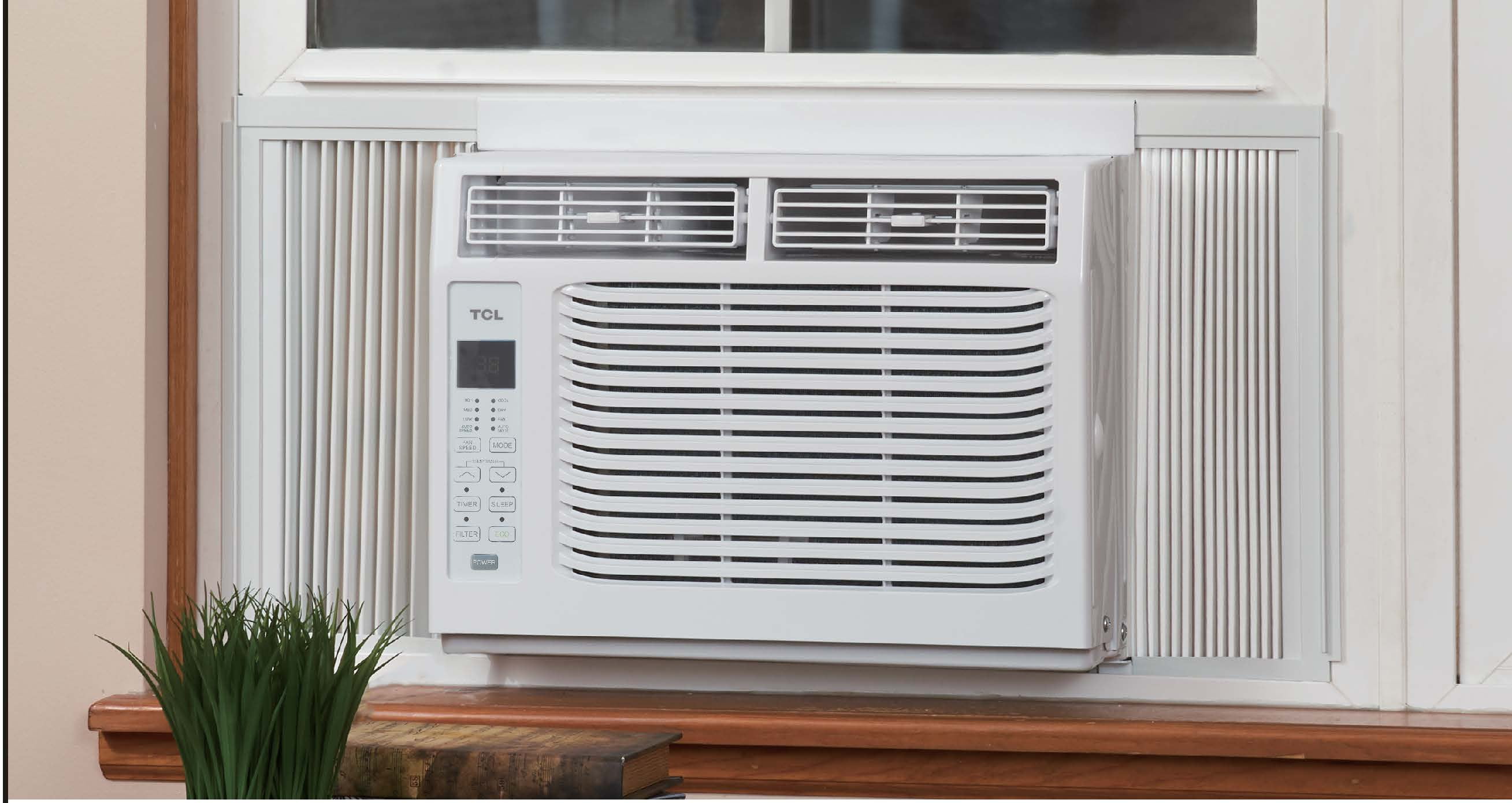 Keep your space cool with the TCL 5,000 BTU Window Air Conditioner with Remote. It’s designed for rooms up to 150 sq ft in size. This white window air conditioner has a digital display and push buttons for easy operation. The Eco Mode conserves energy by turning off the compressor. This TCL window air conditioner also has adjustable vents on the top to change the direction of the airflow.