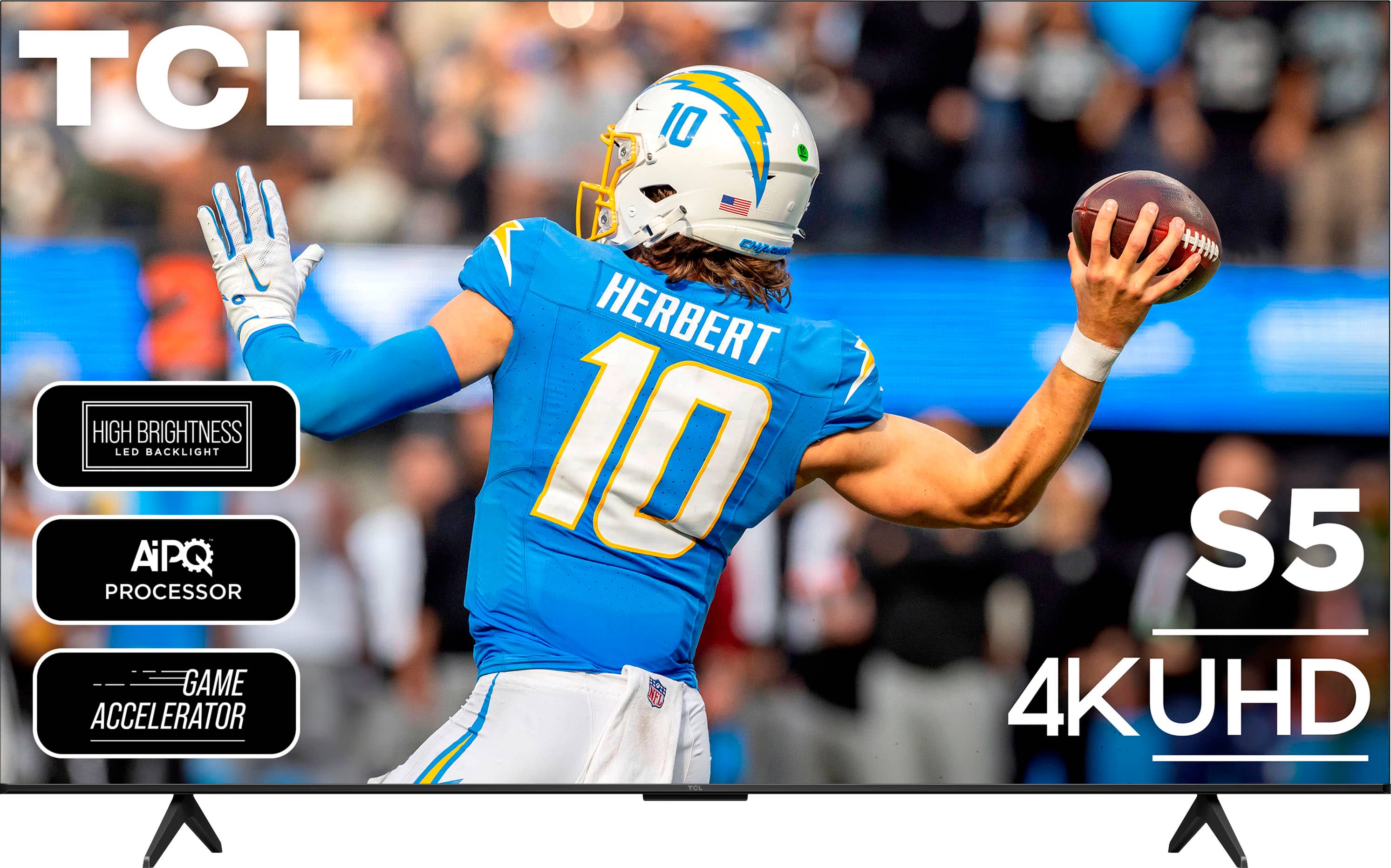 TCL S5 S-Class Smart TVs offer stunning 4K HDR picture quality with four times the resolution of Full HD for enhanced clarity and detail, all wrapped together in an elegant edge-to-edge FullView 360 metal bezel-less design blending seamlessly into any home. The new High Brightness LED backlight produces a brilliant image in any home. Now featuring the TCL AIPQ Processor that optimizes each scene for an unrivaled cinematic experience. HDR PRO+ delivers bright and accurate colors for a lifelike viewing experience with support for Dolby Vision, HDR10+, HDR10, and HLG. In addition, with Motion Rate 240 with MEMC frame insertion, your favorite shows, movies, and sporting events are enhanced for exceptional motion clarity. Game Accelerator 120* VRR provides fast, fluid gameplay without lag. Additionally, Dolby Atmos and DTS Virtual:X are supported, enhancing your audio experience, and enabling virtualized 3D sound using only your TV speakers. An all-new Enhanced Dialogue mode provides better audio clarity for your TV Shows, movies, and video games. TCL S Class TVs are more than just a Smart TV, but a Smart Choice.