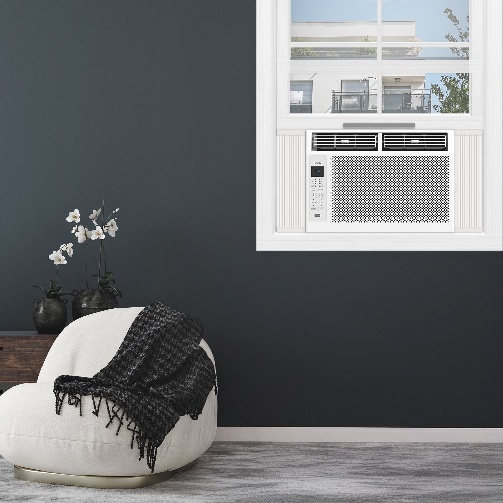 POWERFUL PERFORMANCE: The 6,000 BTU window air conditioner is powerful enough to cool rooms up to 250 sq. ft. and features multiple fan speeds that allow you to choose your level of comfort. 3-IN-1 COMFORT: Chill out, cool down, and stay dry with TCL’s 3-in-1 AC, Fan, and Dehumidifier to suit a wide array of needs. ENERGY EFFICIENT: Save energy like a pro with Sleep and Eco modes to help you save money throughout the year. EASY AND CONVENIENT CONTROL: The LED display makes controlling your window air conditioner simple, while the included remote lets you effortlessly control the unit without ever leaving the couch. RESTARTS AUTOMATICALLY: Designed to restart automatically after a power outage with Auto Restart. SETUP MADE EASY: You don’t have to be an expert technician to set up your new window AC unit with the simple and easy installation kit. A screwdriver is required for setup but not included. Some window frames may require pre-drilled pilot holes (Window Size Requirement: 23-34 inch width, 14.5 inch opening height) TCL recognized as the brand with the largest dollar share increase in the US Home Comfort category in 2023.* *Source: Circana, Retail Tracking Service, U.S. dollar share change, 12 months ending December 2023 * Actual coverage may vary based on room size and configuration (ceiling height, number of windows, and other varying conditions) and environmental factors such as number of occupants, home insulation, etc.