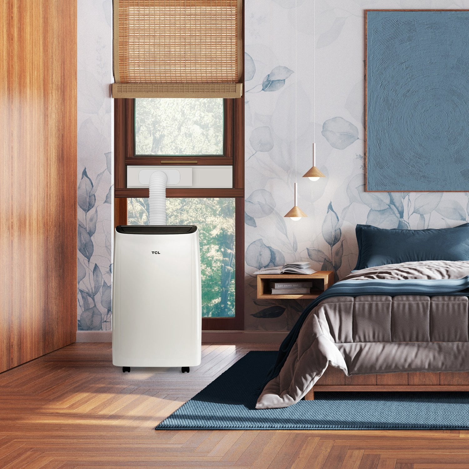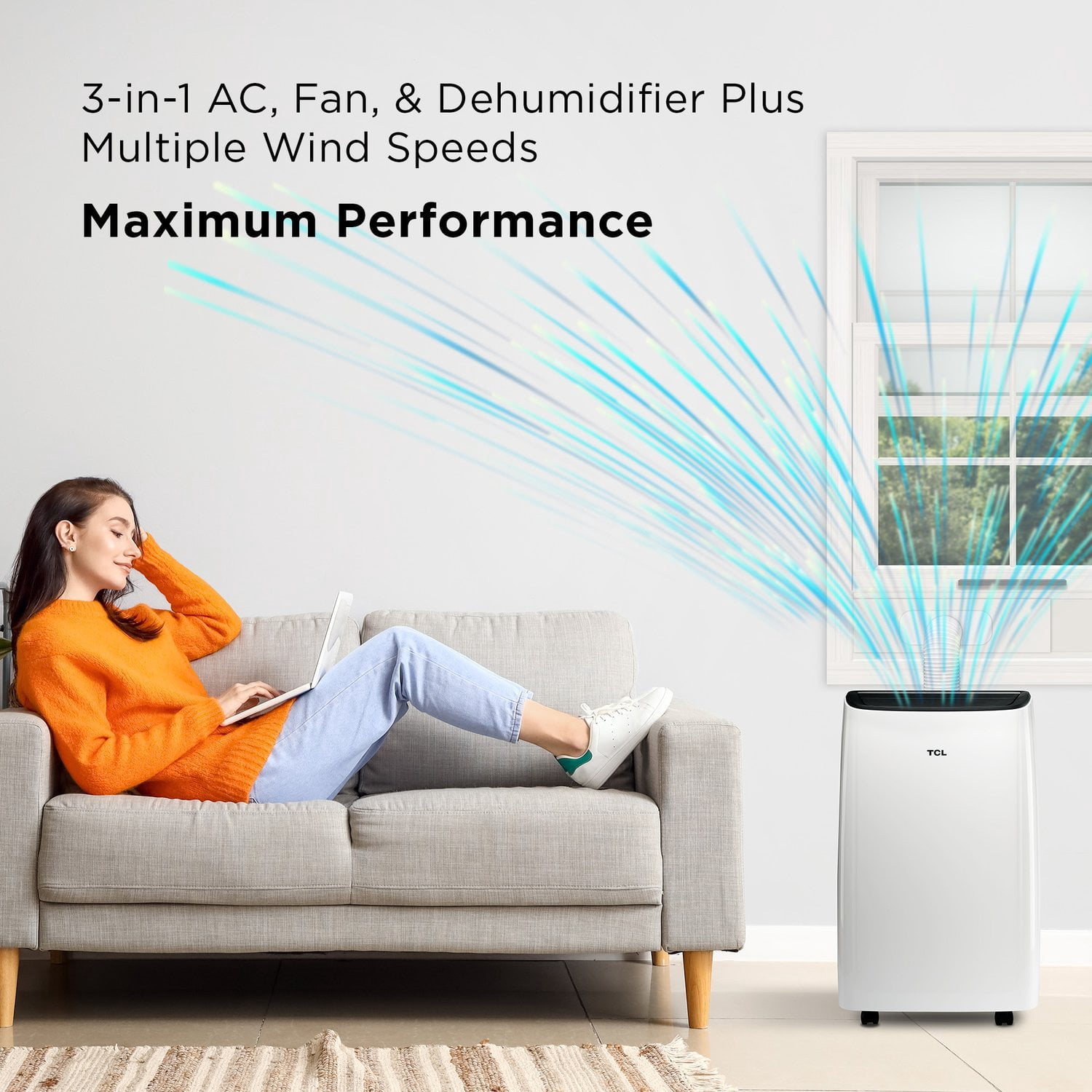 3-in-1 AC, fan, and dehumidifier Powerful 7,000 BTU SACC (11,000 BTU ASHRAE) BTU cooling capacity with multiple fan speeds Smart features allow you to control your unit with the intuitive TCL Home App or simple voice commands with Alexa and Google Assistant Cools rooms up to 300-sq. ft. Sets up in minutes with simple in-app instructions (installation kit included) Glides from room to room with the handles and wheels