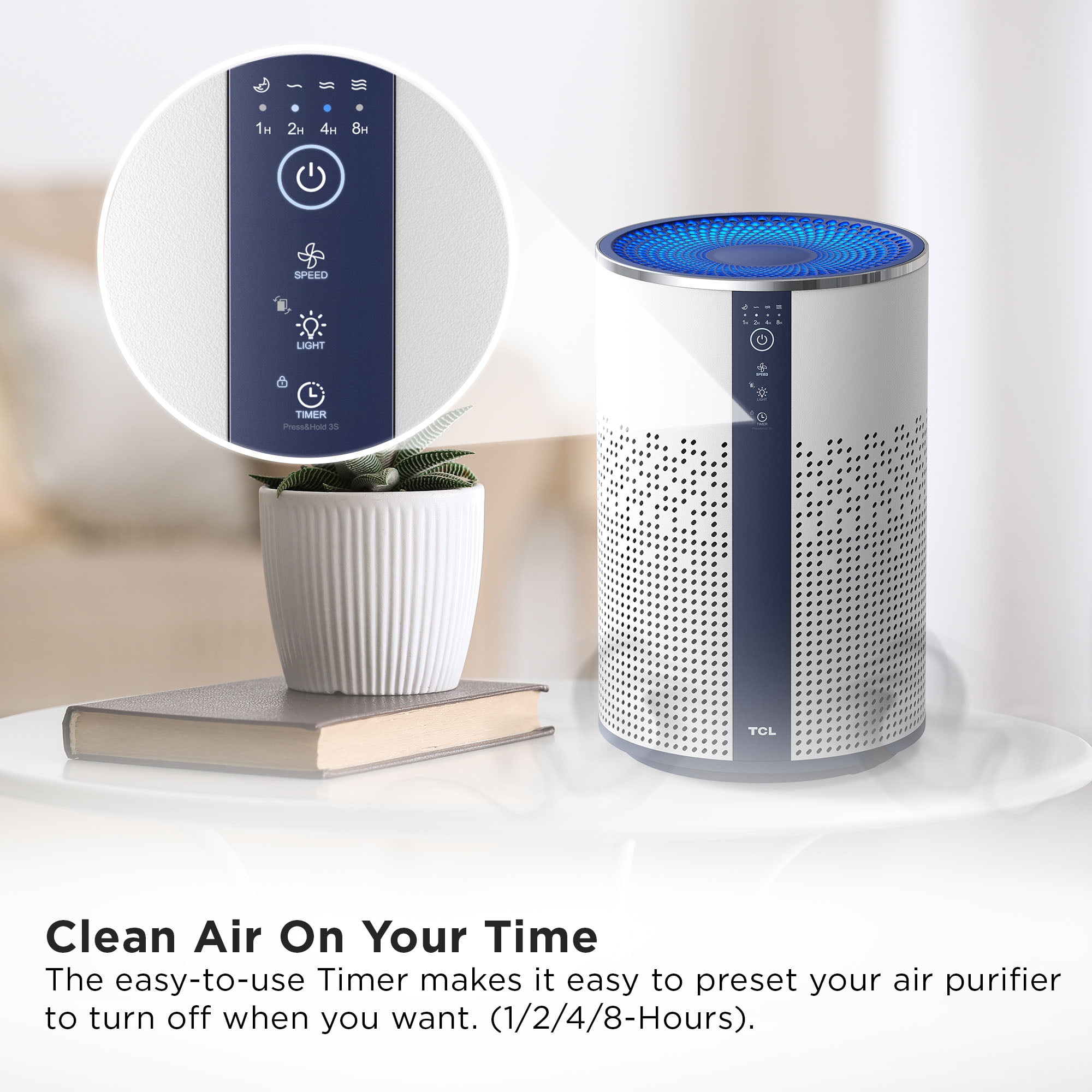 TCL Air Purifier for Home, Room, Bedroom, True H13 HEPA Air Filter Remove 99.97% Smoke, Odor, Pet, Dander, Dust, Pollen, Mold, Air Cleaner, Metal Design with Night Light, A114W
