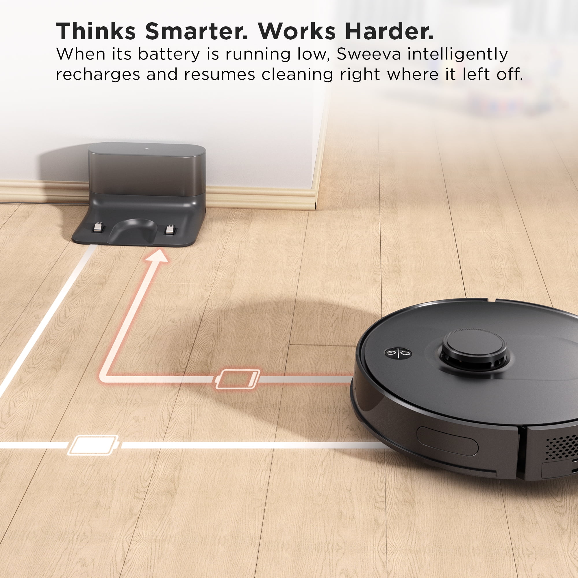 Experience a cleaner home without lifting a finger with TCL’s Sweeva. Sweeva uses sophisticated LiDAR navigation technology to map your entire home (up to 5 maps) and clean in tight, neat rows, ensuring it never misses a spot. Featuring state-of-the-art UVC LED technology, Sweeva 6000 sterilizes your floor as it sweeps, killing bacteria and viruses. It’s also perfect for homes with pets and kids featuring a max 2700Pa suction, large internal dustbin, multi-surface brush roll, and a clean time of up to 180 minutes on a single charge. † The ultra-slim profile makes cleaning tight spaces and under furniture easy while being able to tackle rugs, doorways, and other low-profile obstacles. Enjoy the convenience of a smart home by using simple voice commands with Alexa or Google Assistant to vacuum without lifting a finger. Plus, the TCL Home app lets you control your Sweeva from anywhere, set cleaning schedules, and create a customized favorite cleaning mode right from your smartphone. In the app, you can also set up virtual barriers, view cleaning logs, and pick different cleaning area options like whole-home, room, area, and pin-n-go. Sweeva features additional smart technologies like recharge and resume, Auto-Boost technology that automatically increases suction power on carpets for a deeper clean, and more. Sweeva makes your life easier, enjoy! Rv6014B, New