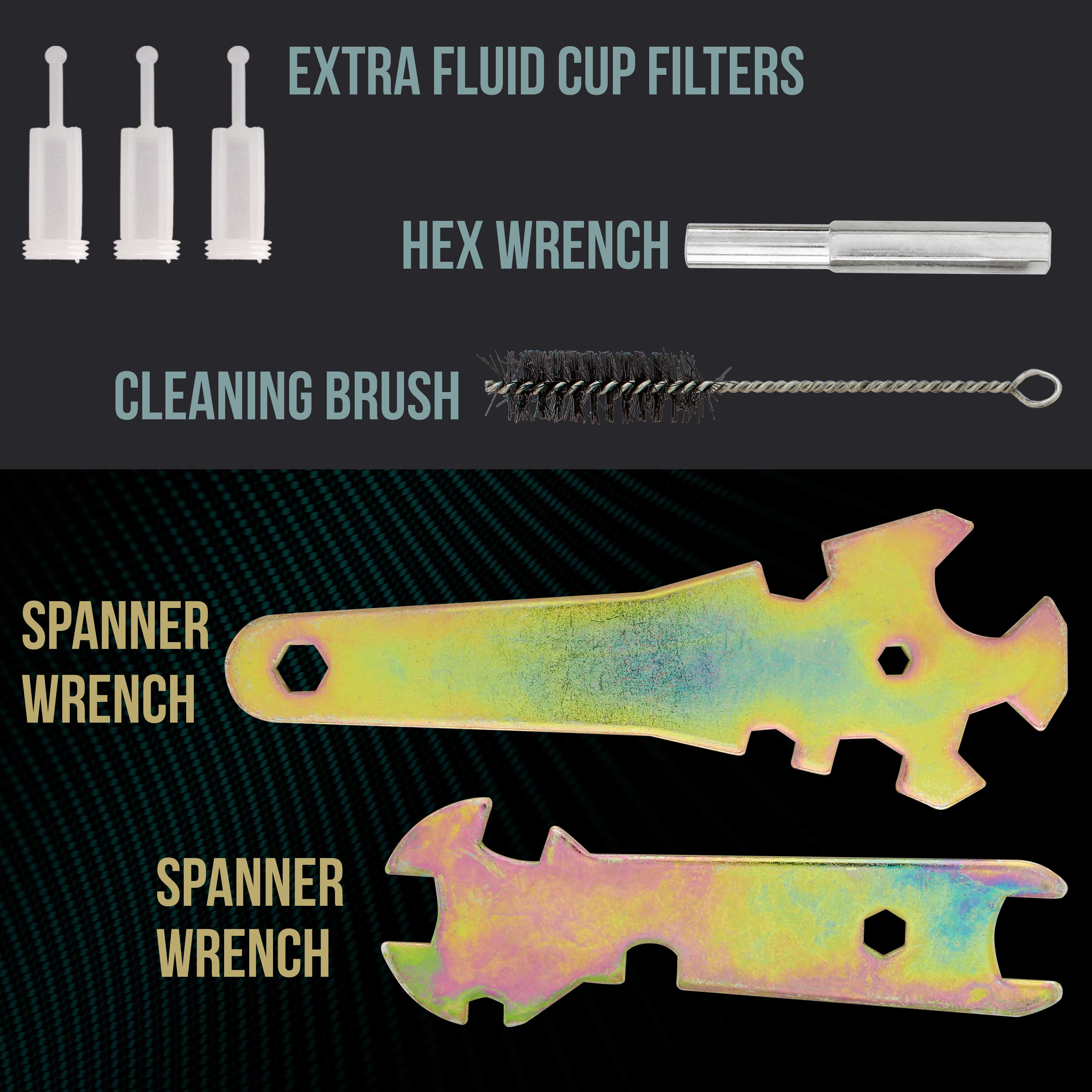 Spray the Full Spectrum of Coatings Using this Quality 3 Gun Set of High Performance HVLP Spray Guns. You Get All the Premium Features and Benefits, without the Premium Price! Spray Base-coats, Clear-coats, Single Stages, Primers and More. Guns Provide Fully Atomized Spray Patterns, So You Can Achieve Professional Finish Results. The 1.4 mm Fluid Tip Gun is Ideal for Base-coats, Clear-coats and other Light to Medium Viscosity Materials. The 1.8mm Fluid Tip Gun is excellent for Primers, Oil Base, Latex, and other Medium to Heavy Viscosity Coatings. Use the 1.0 mm Tip Detail Gun for Tight Areas and Touchup. Full One Year Warranty