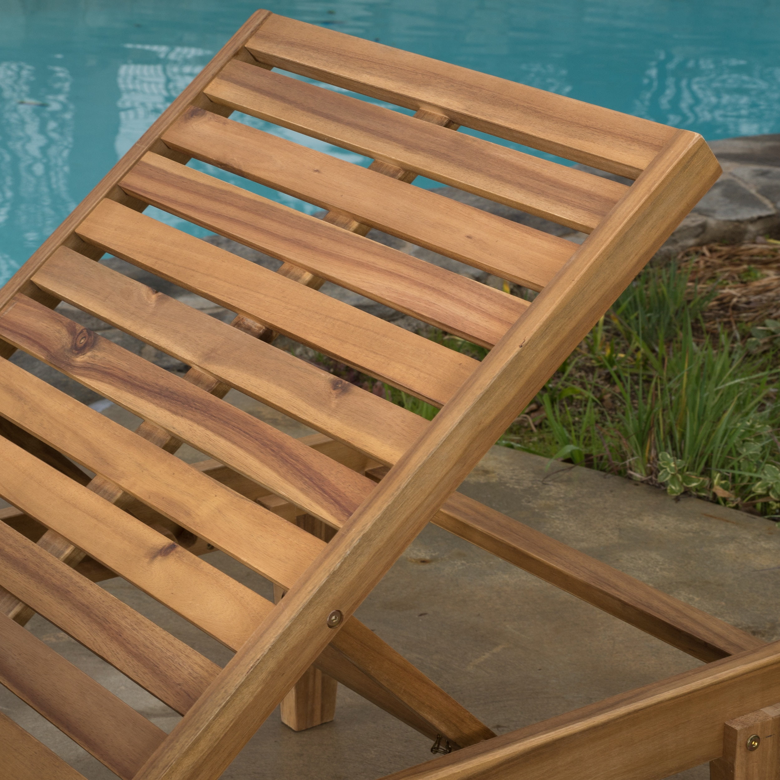 The Ariana Wood Chaise Lounge with Cushion makes the perfect lawn or poolside addition. Relax in style with these wooden chaises made from Acacia wood and full length cushion to maximize comfort. The bright and fun chaises will have you entertaining and enjoying all that the outdoors have to offer. Features: Includes: Two (2) Lounger with Cushion Material: Acacia Non FSC Color: Teak finish Assembly Required Specifications: Chaise Lounge Dimensions: 78.74″ L x 24.00″ W x 32.68″ H