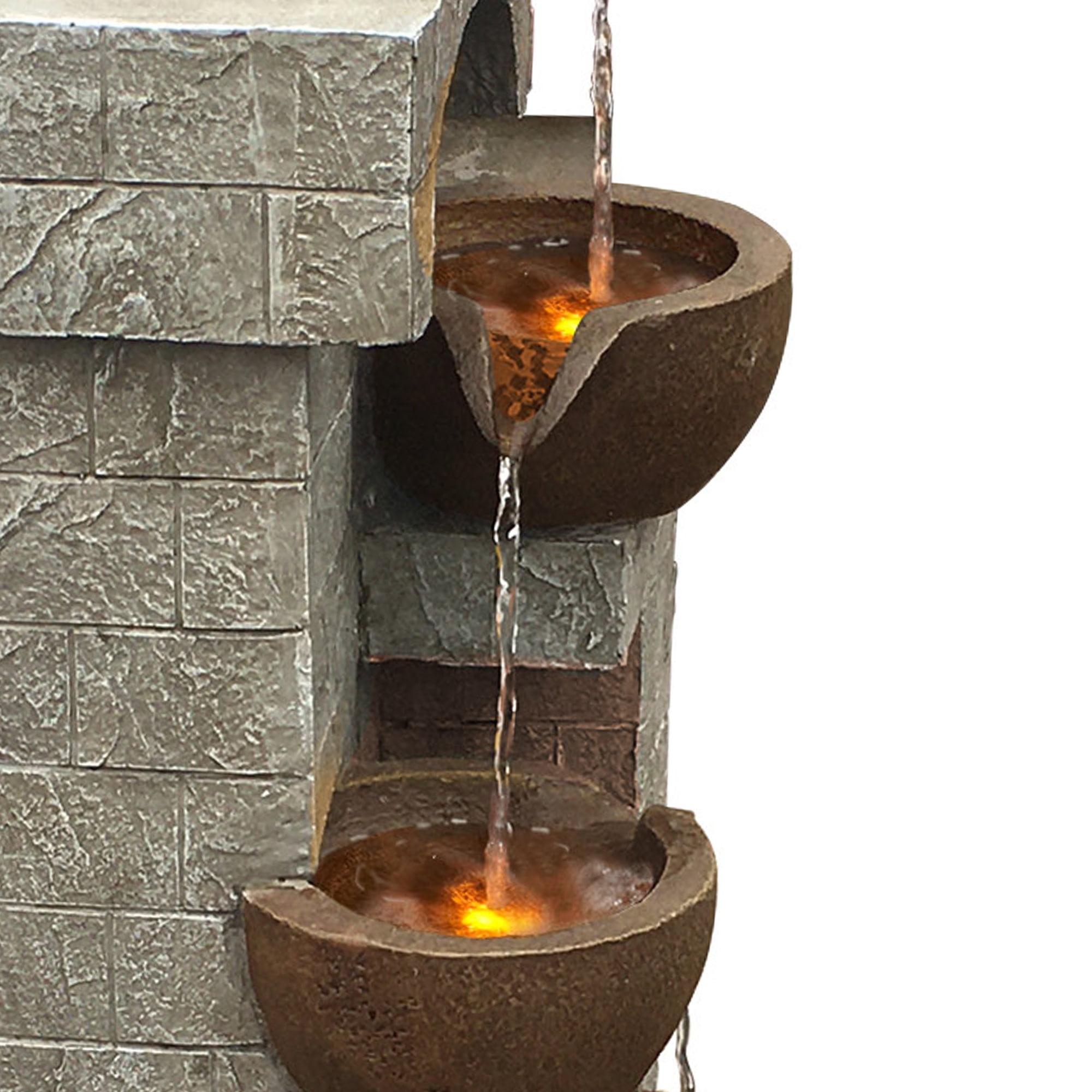 Teamson Home 4-Tier Outdoor Water Fountain with Cascading Bowls, Stacked Stone & Solar LED Lights