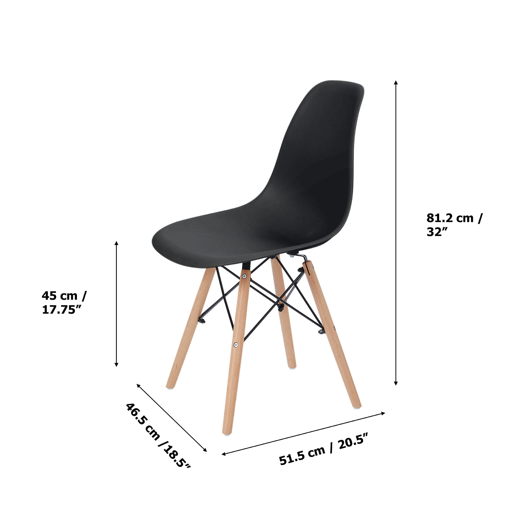 CONTEMPORARY: The chairs’ sleek shape is perfect for any room including where you might be tight on space. It’s contemporary design is sure to fit in with any style décor. INCLUDED: Two armless chairs with plastic seats and solid wood legs, perfect for your kitchen or dinning room table. COMFORTABLE: The curved seat provides back support and comfort for you or your guests. DURABLE: These chairs includes polypropylene, solid wood and metal to provide long lasting use and easy to clean surfaces. DIMENSIONS: The Teamson Home Plastic Dining Chair measures 18″ long, 20″ deep, and 32″ tall.
